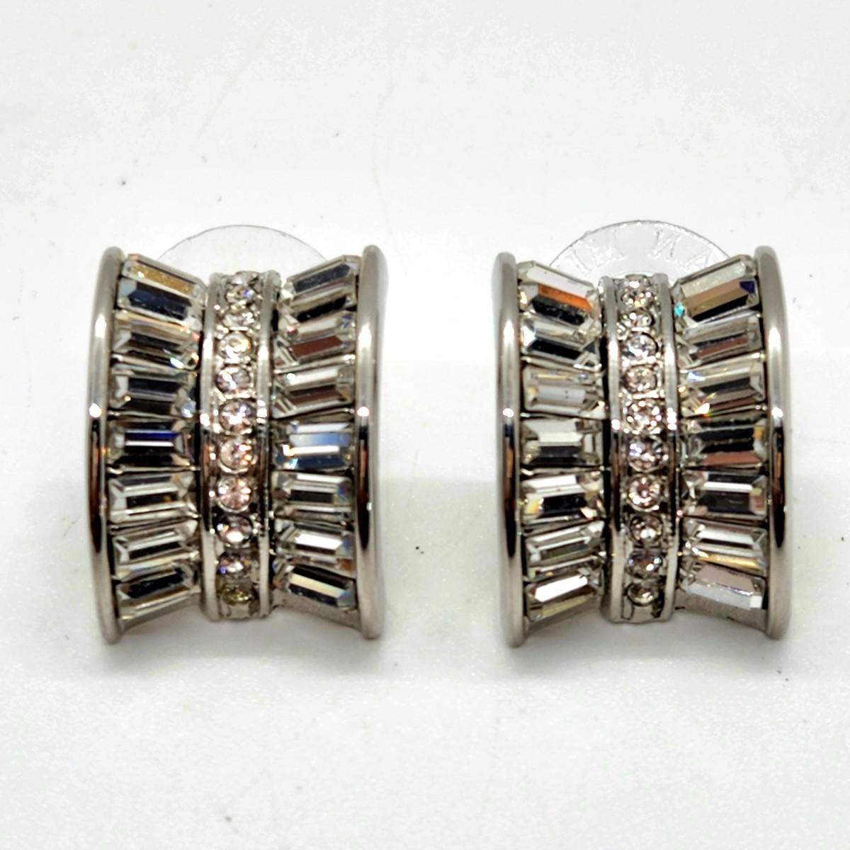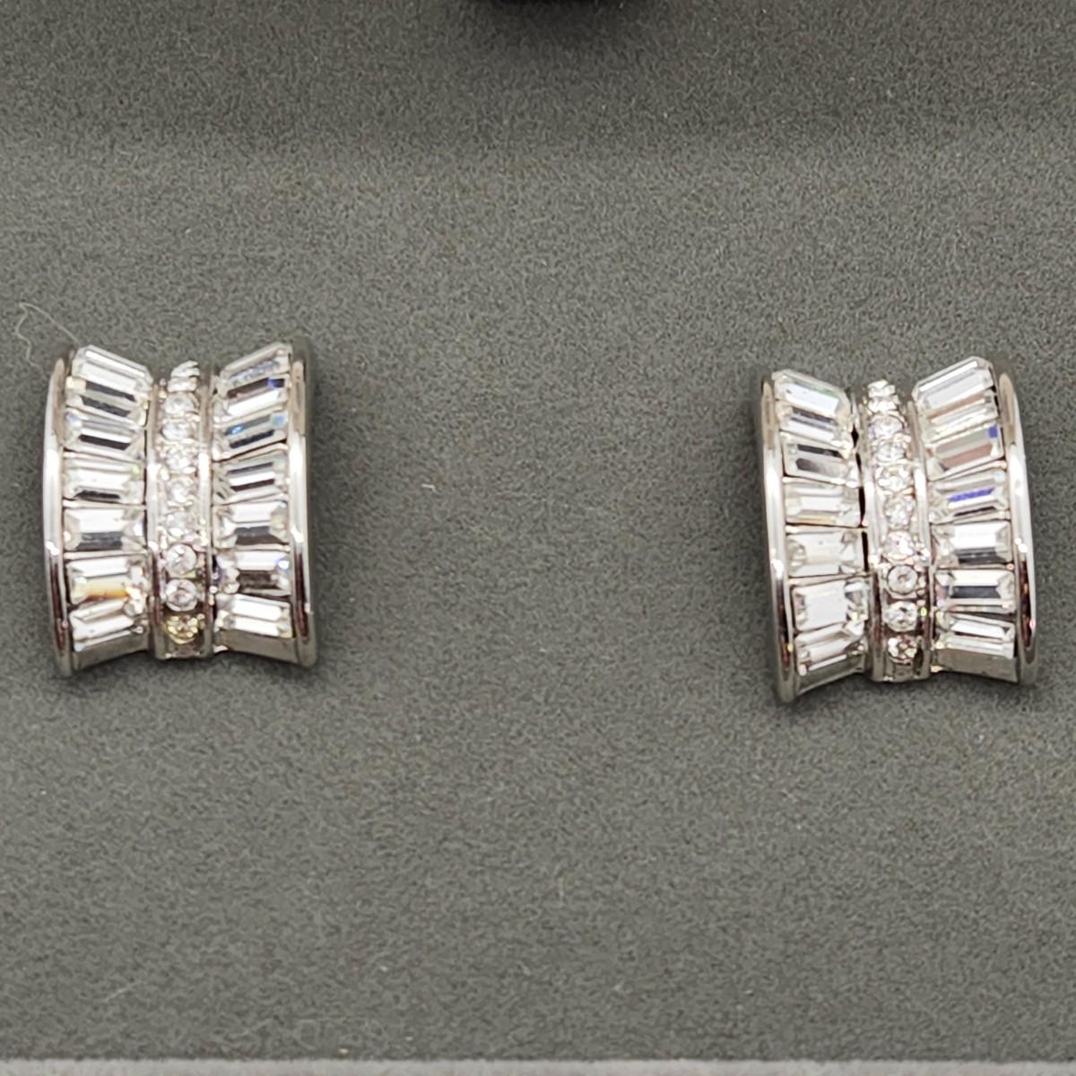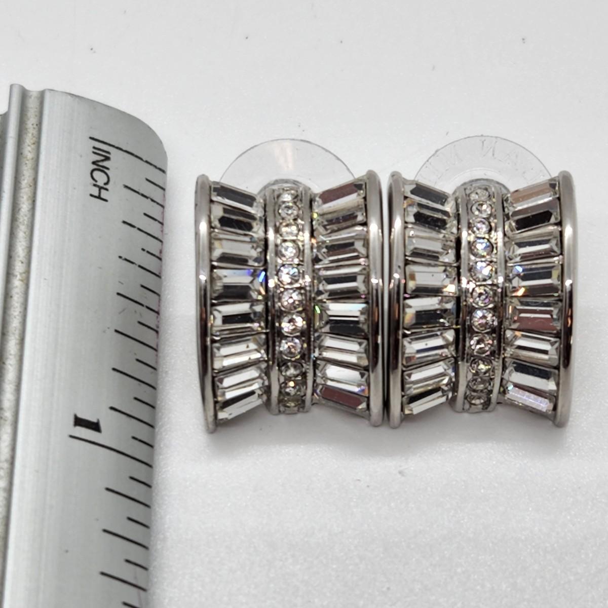 LOT 35RP: Vintage Nolan Miller Baguette Rhinestone Silvertone Hoop Earrings