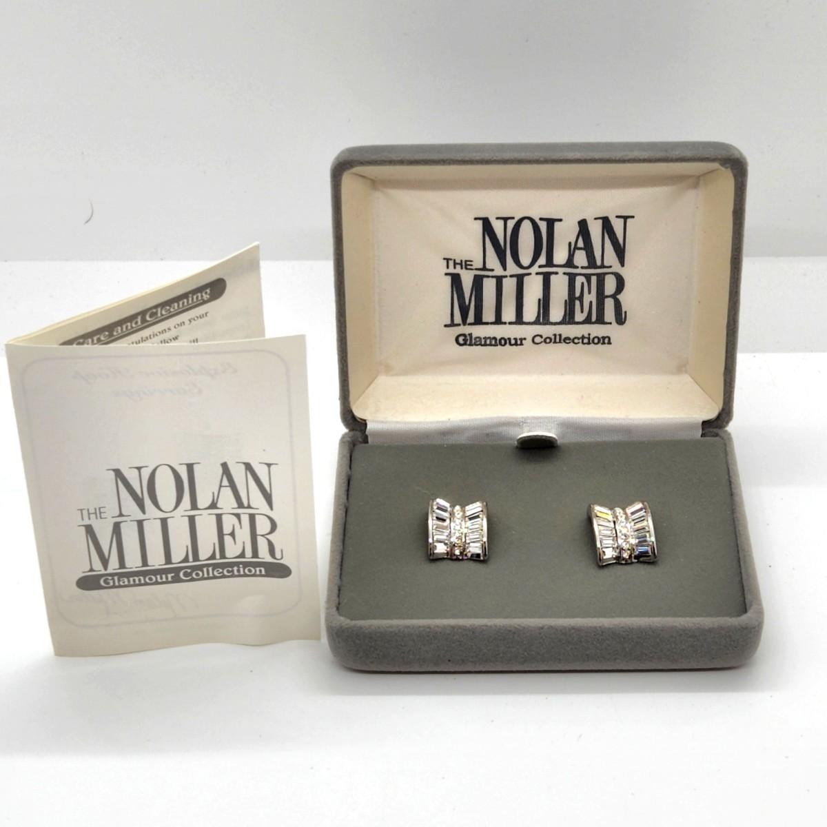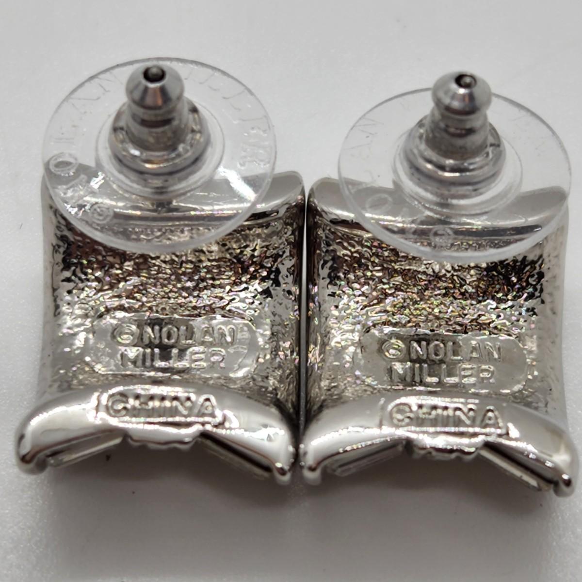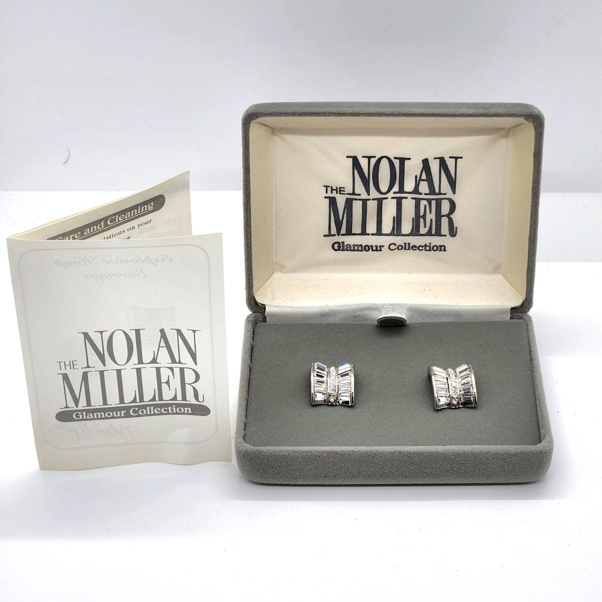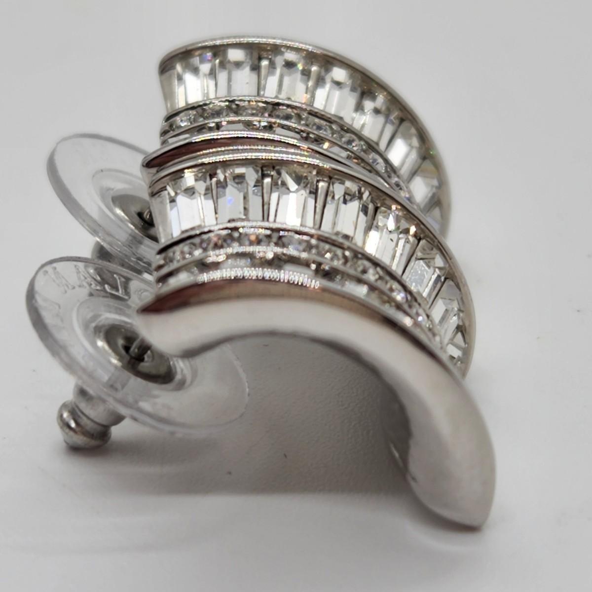 LOT 35RP: Vintage Nolan Miller Baguette Rhinestone Silvertone Hoop Earrings