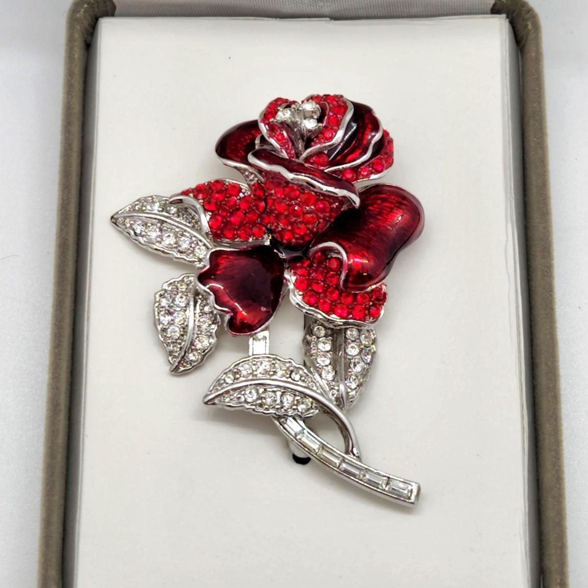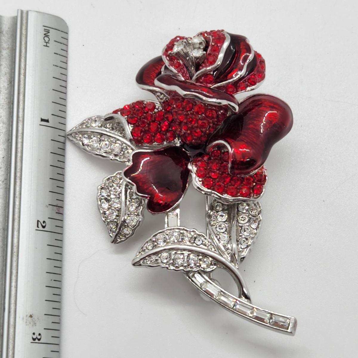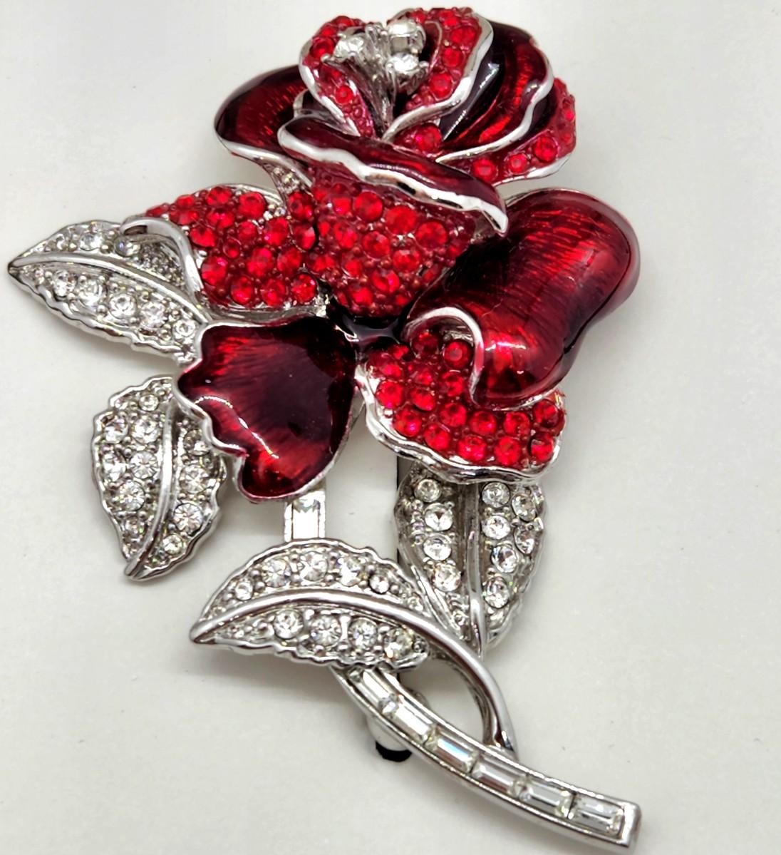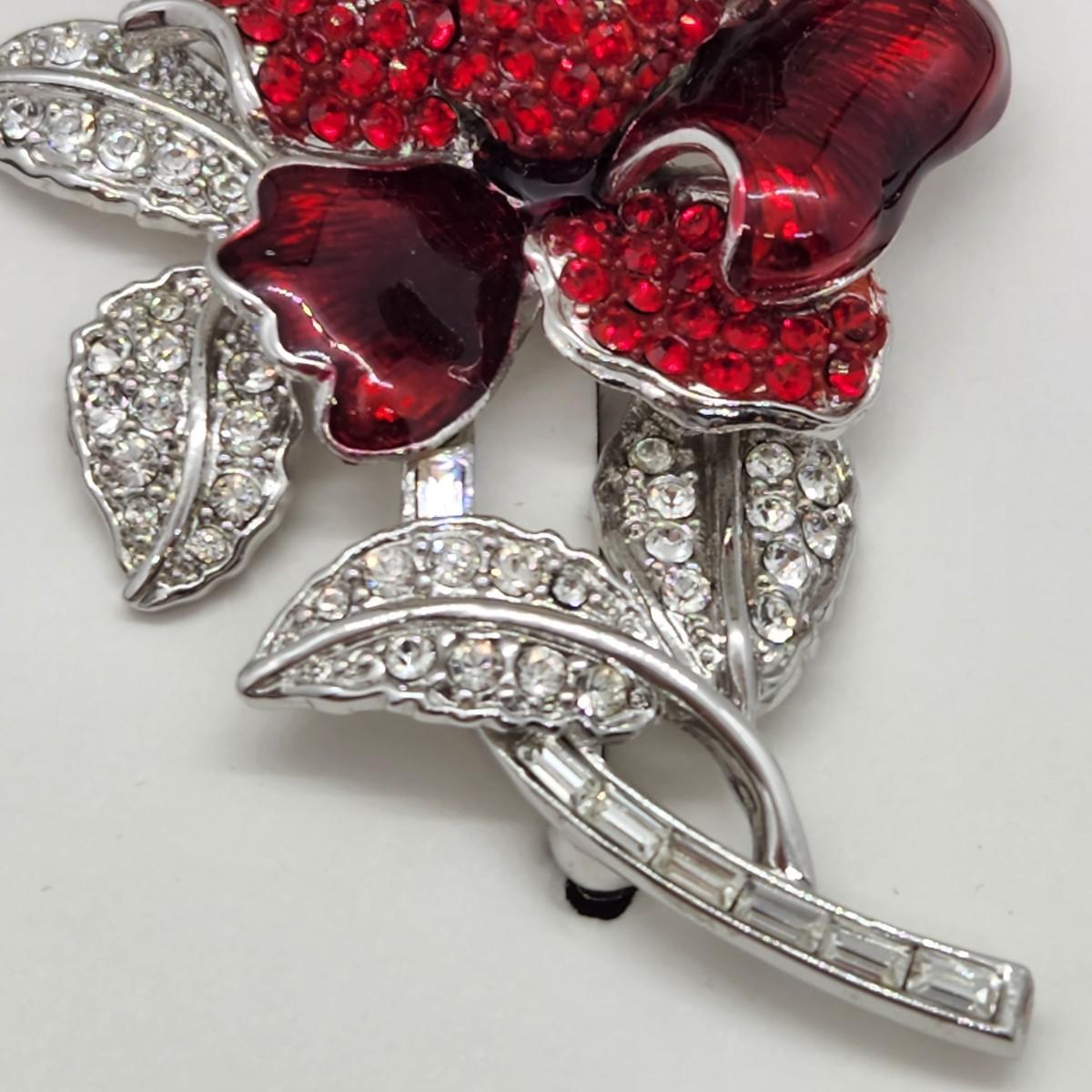 LOT 36RP: Vintage Nolan Miller's "First Lady" Red Enamel & Pavé Silvertone Brooch/Pin
