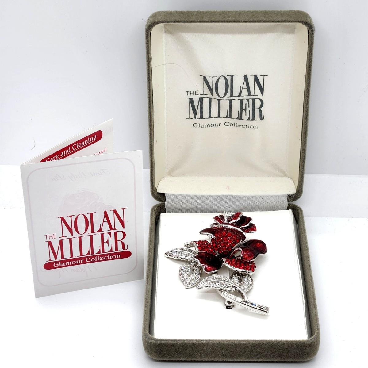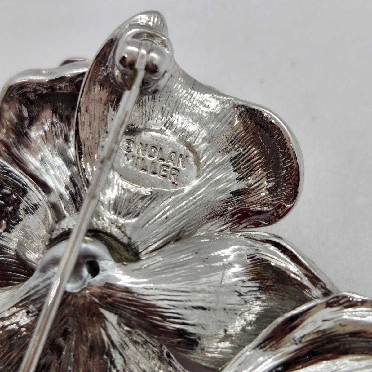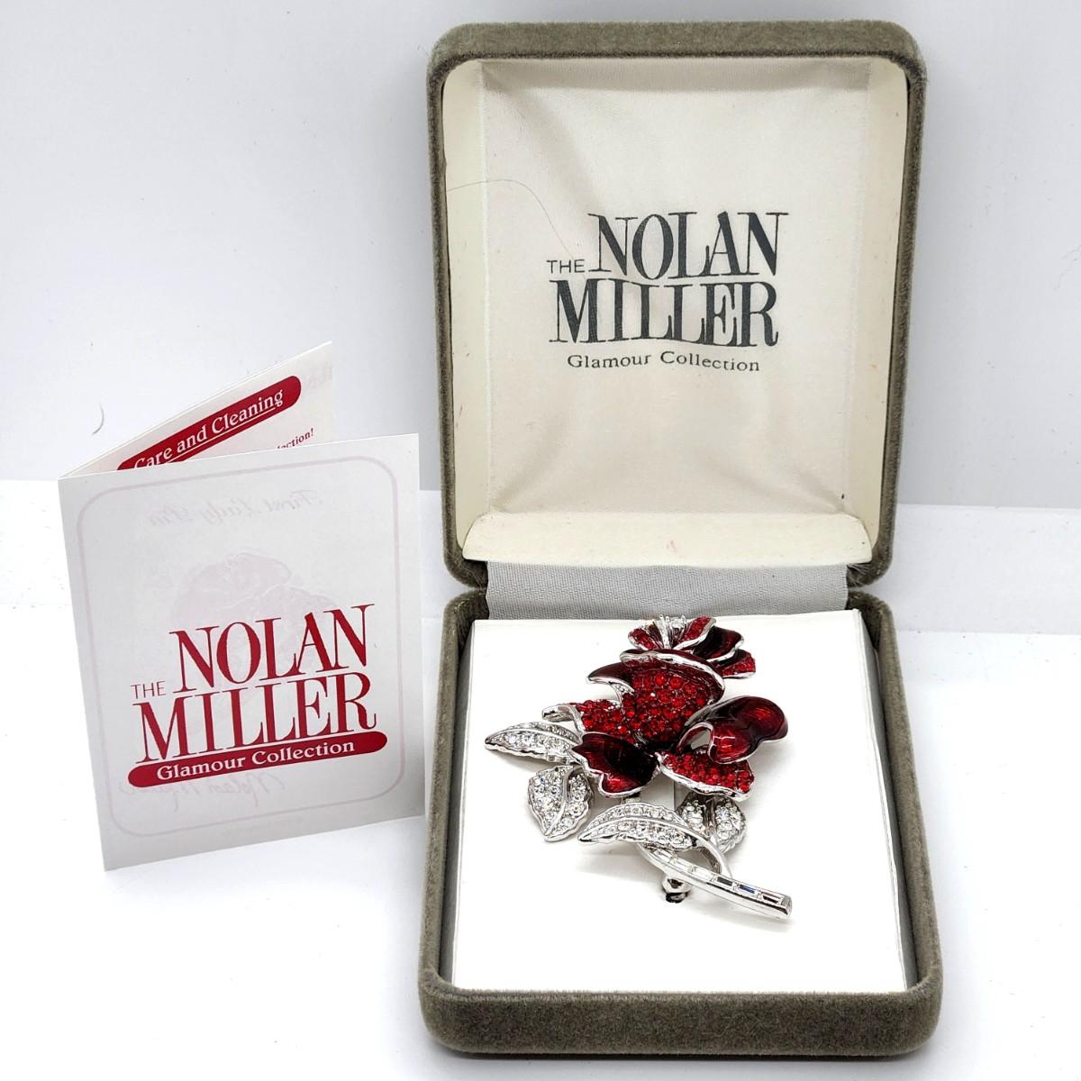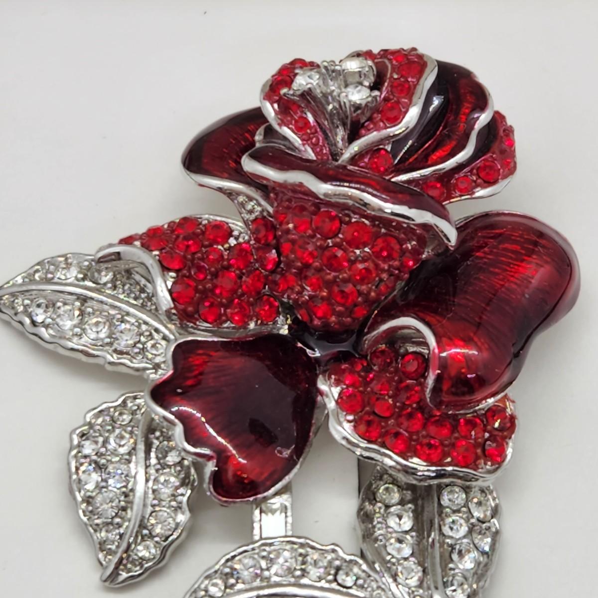 LOT 36RP: Vintage Nolan Miller's "First Lady" Red Enamel & Pavé Silvertone Brooch/Pin