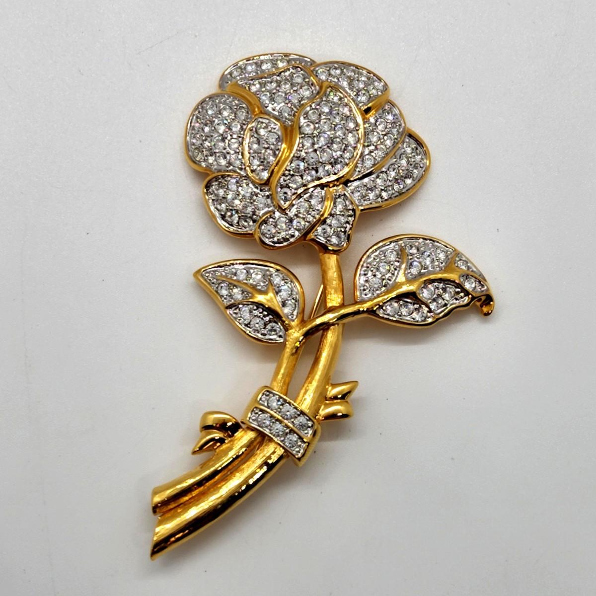 LOT 37RP: Vintage Nolan Miller Goldtone Pavé Rose Brooch/Pin