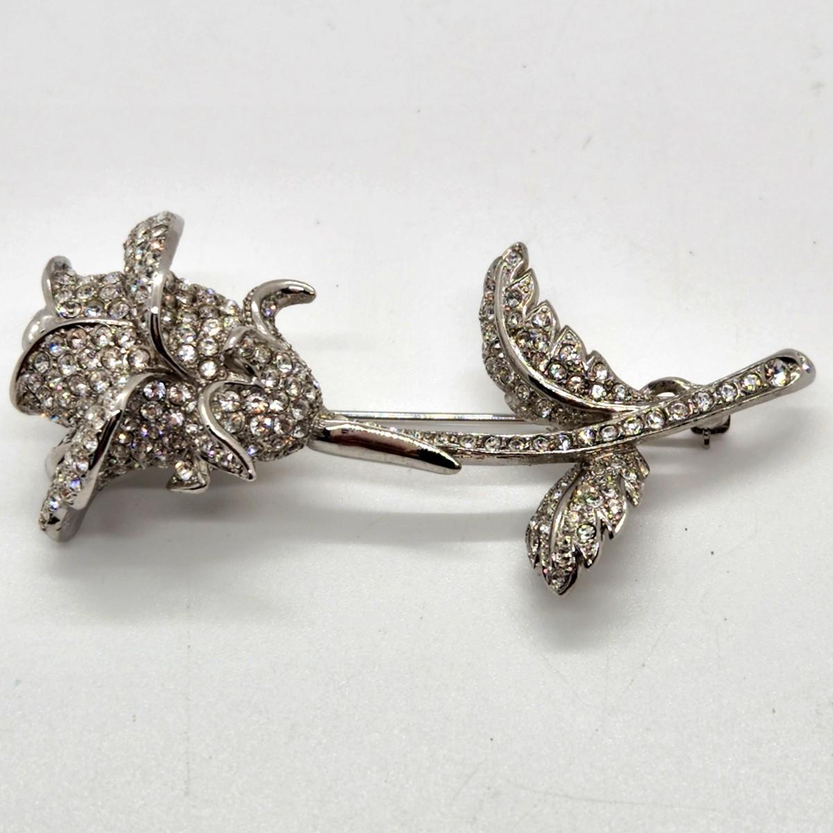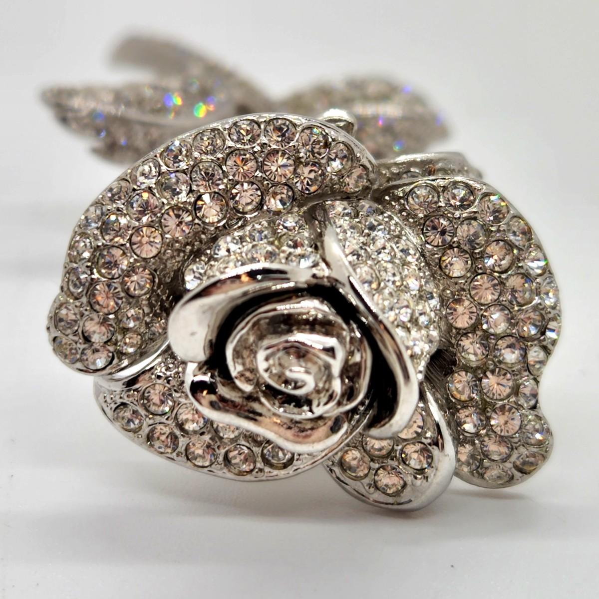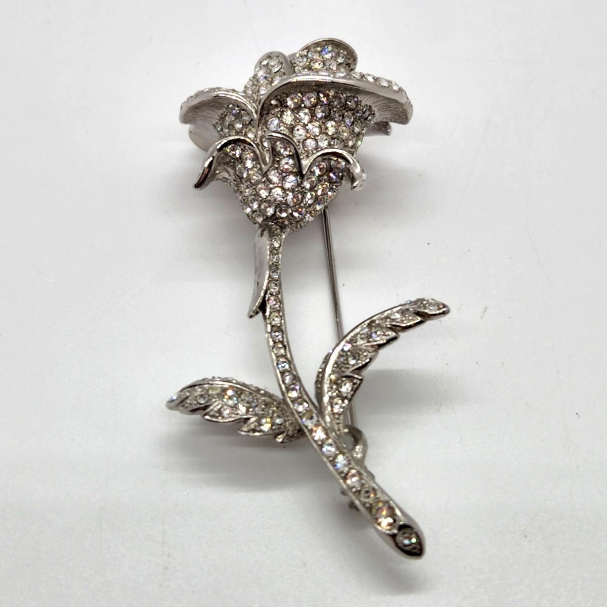 LOT 40RP: Vintage Nolan Miller "Anniversary" Silvertone Pavé Rose Brooch/Pin