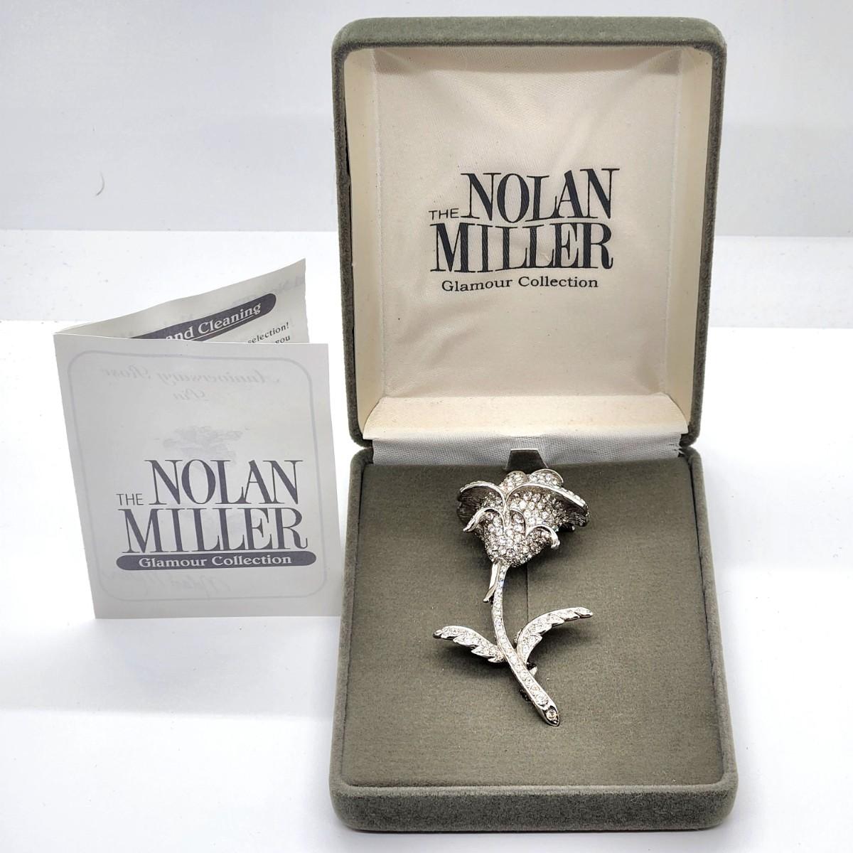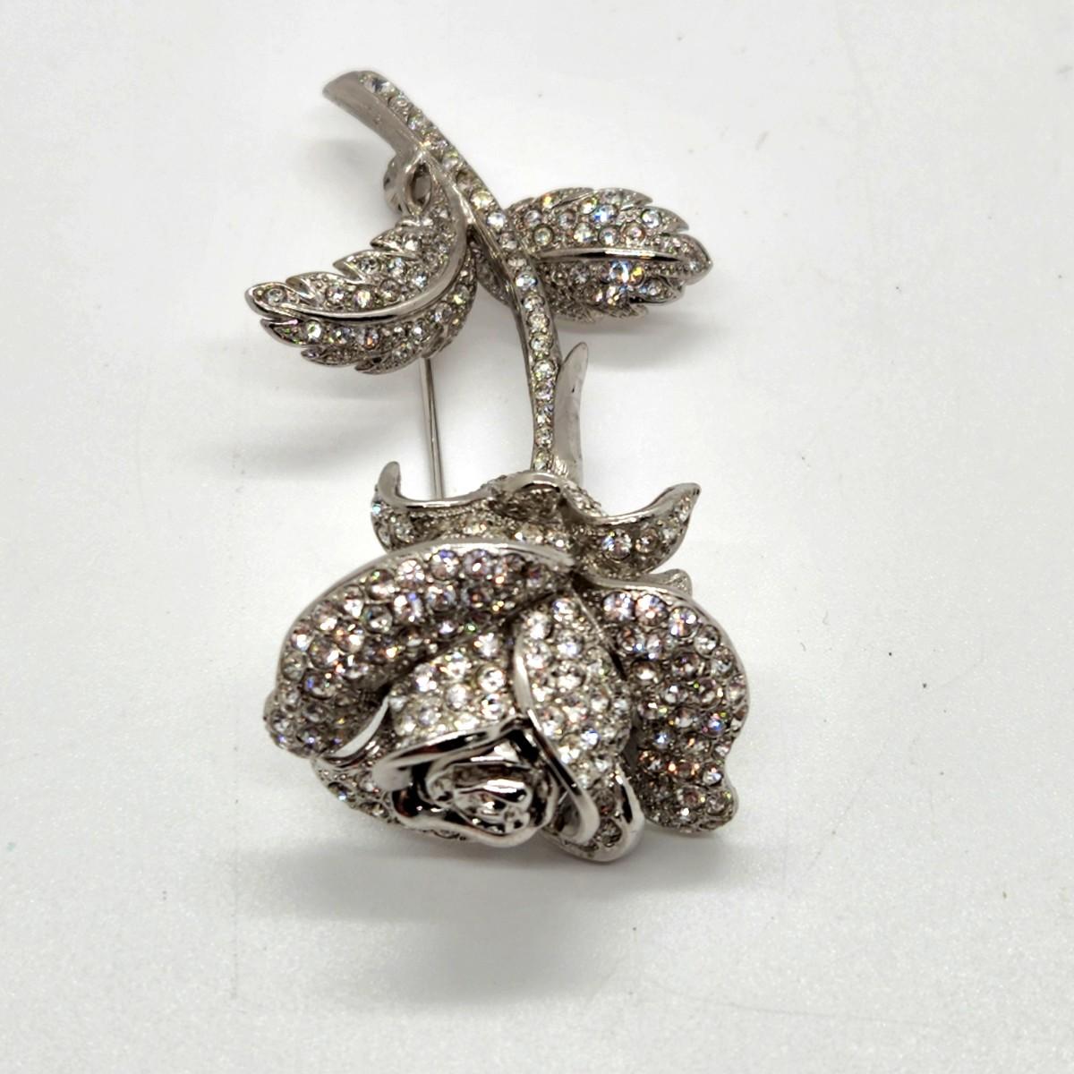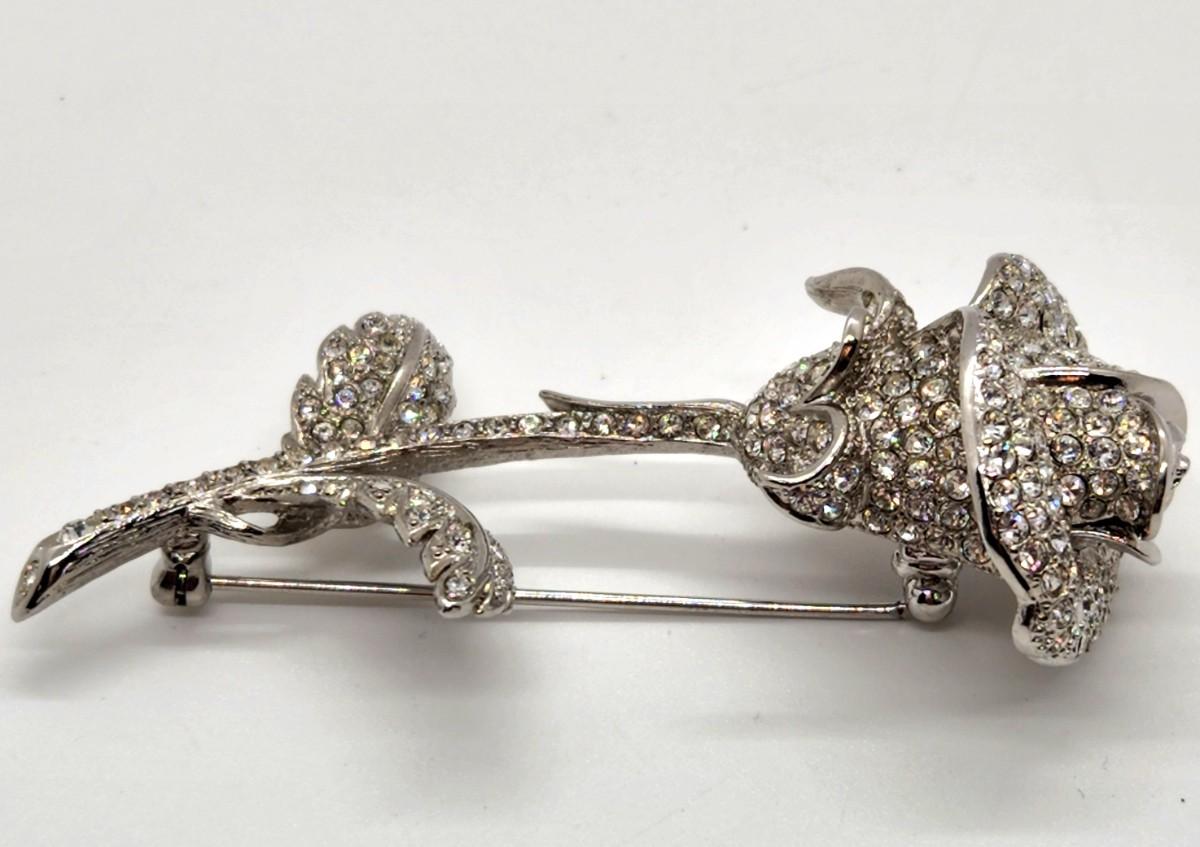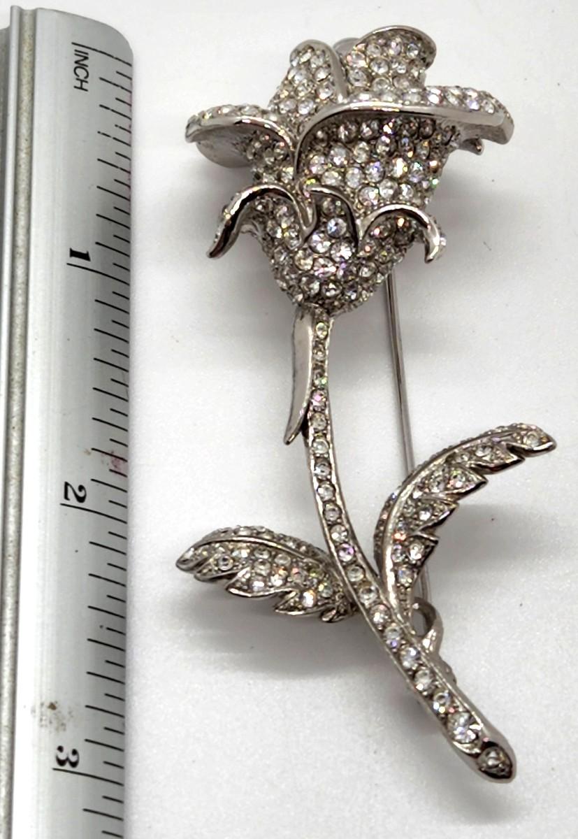 LOT 40RP: Vintage Nolan Miller "Anniversary" Silvertone Pavé Rose Brooch/Pin