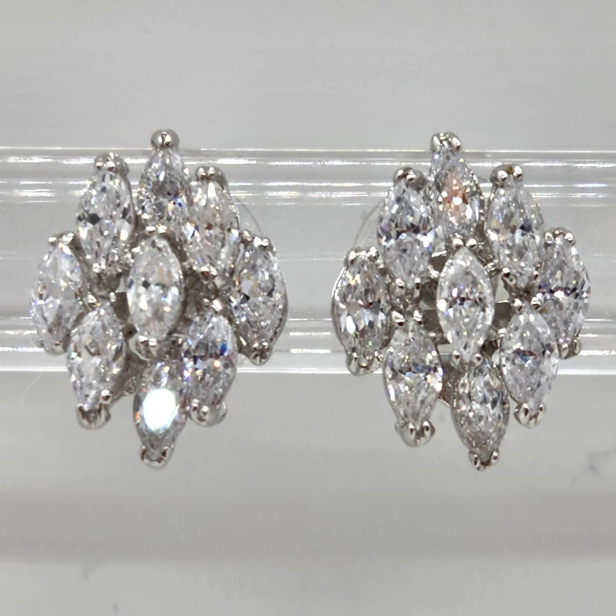 LOT 41RP: Vintage Nolan Millers "Dancing Marquise" Silvertone & Rhinestone Pierced Earrings