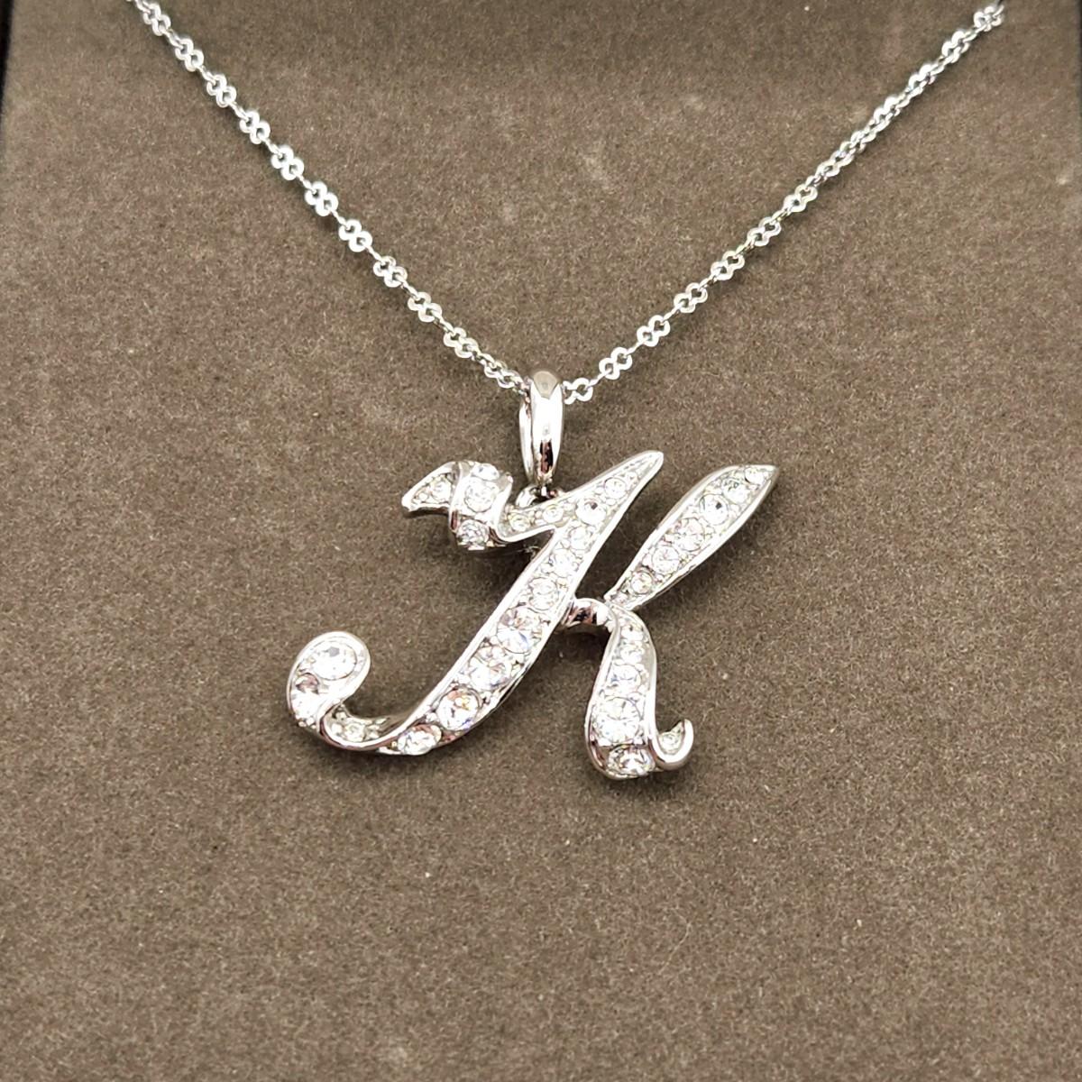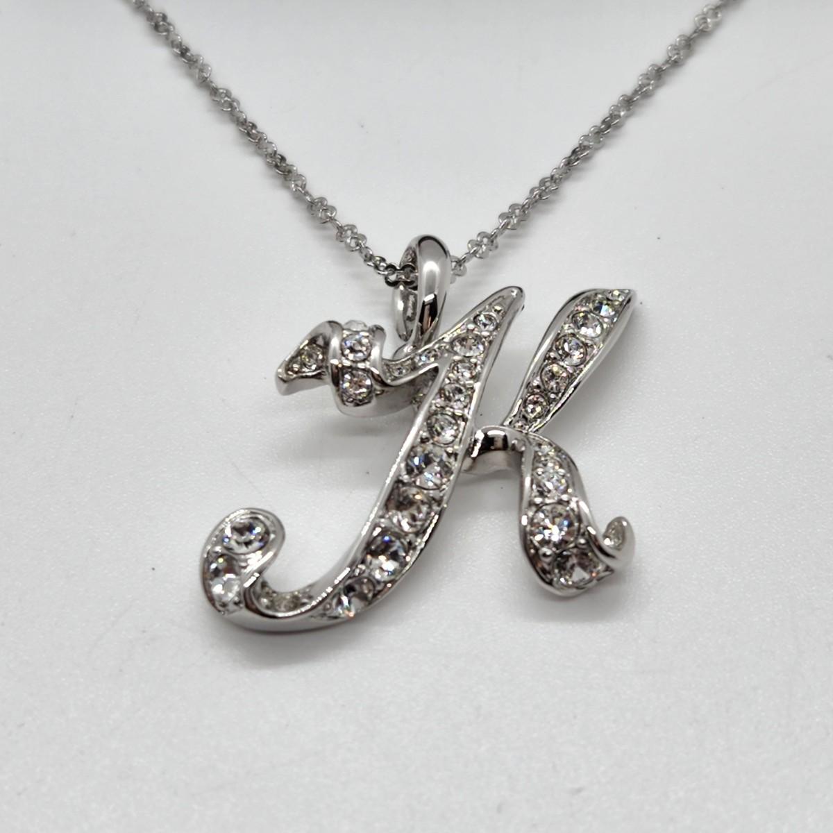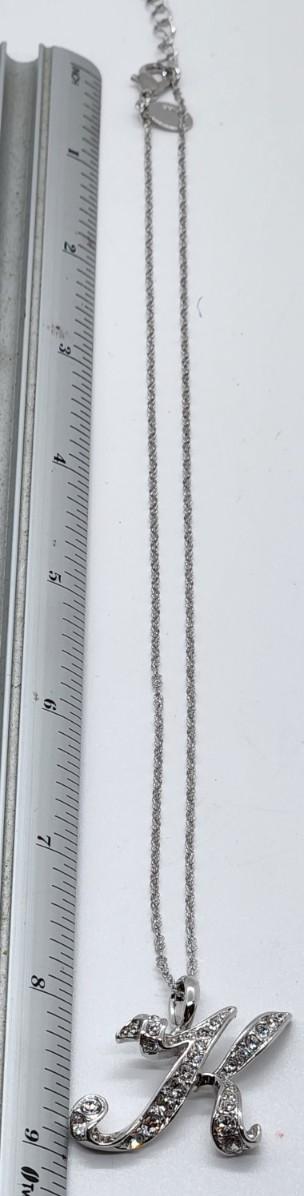 LOT 43RP: Vintage Nolan Miller Pavé Silvertone Rhinestone Initial "K" Pendant w/ Adjustable Chain