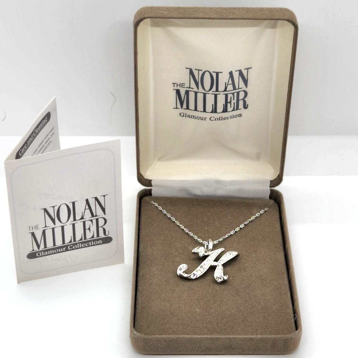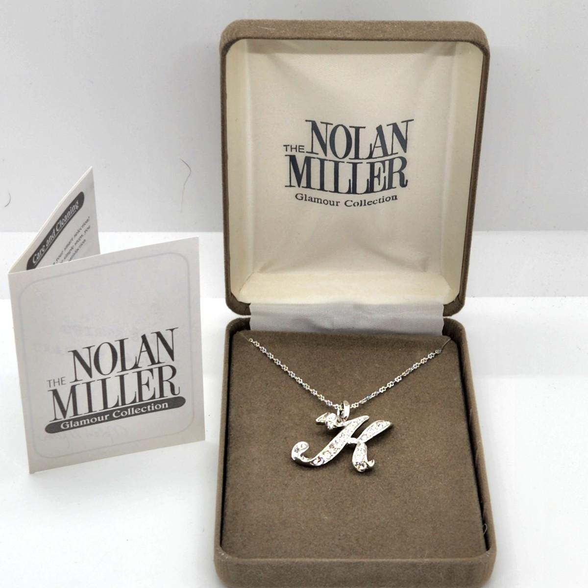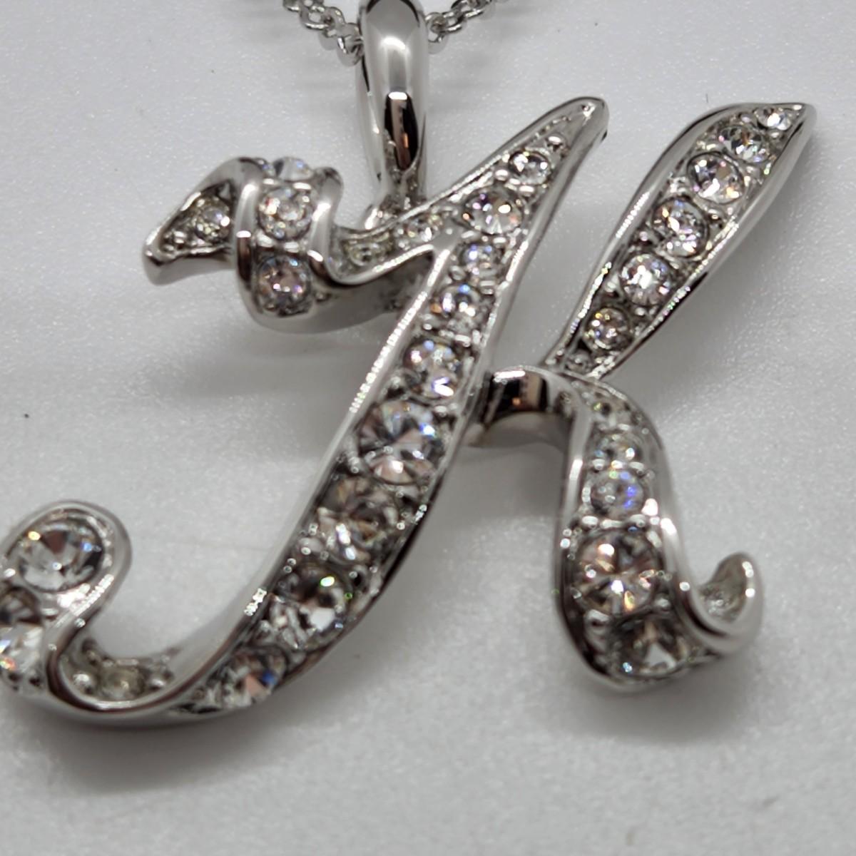 LOT 43RP: Vintage Nolan Miller Pavé Silvertone Rhinestone Initial "K" Pendant w/ Adjustable Chain