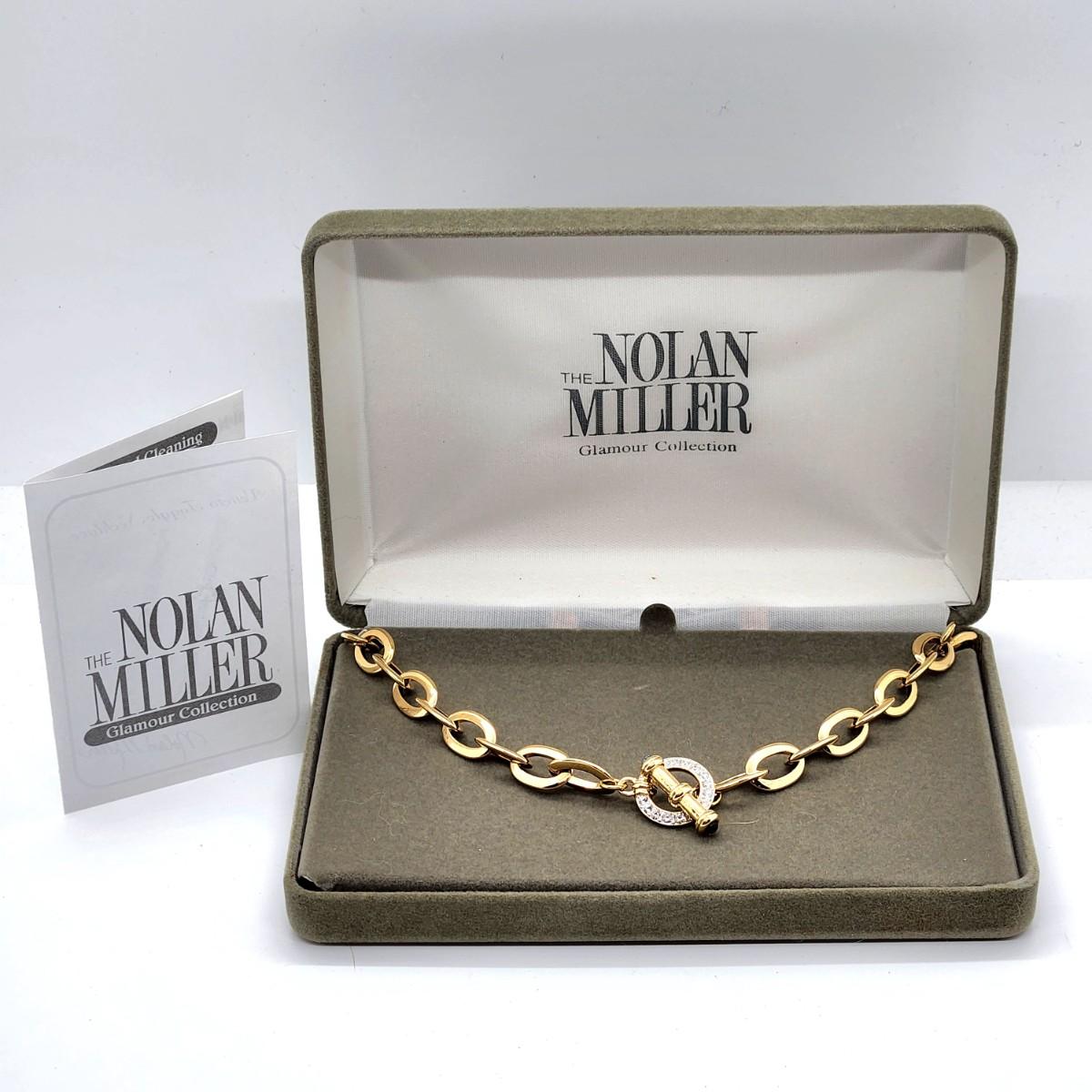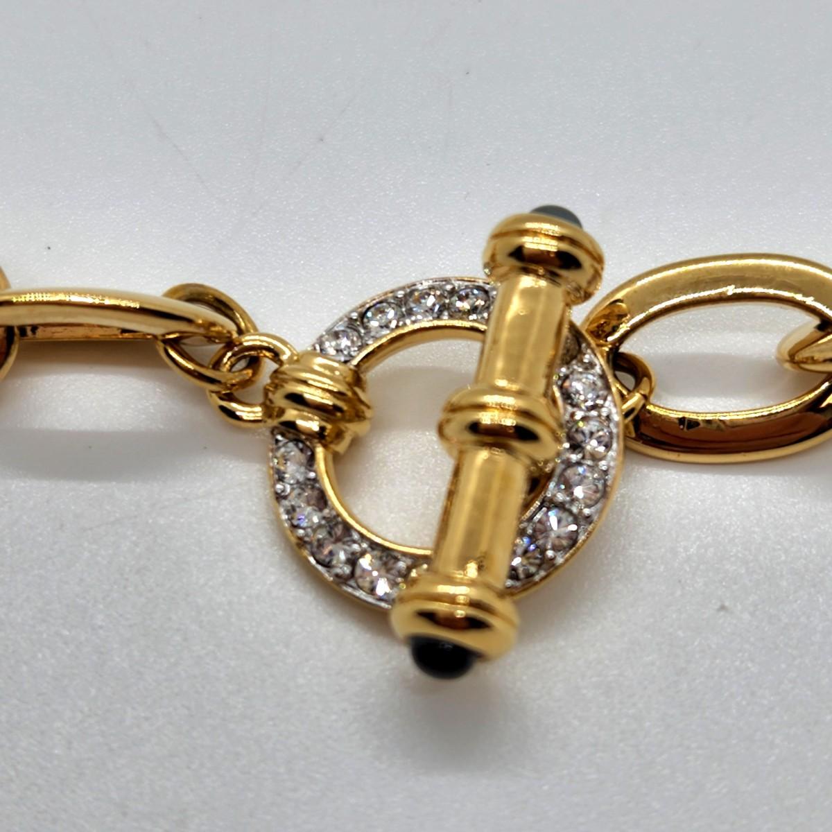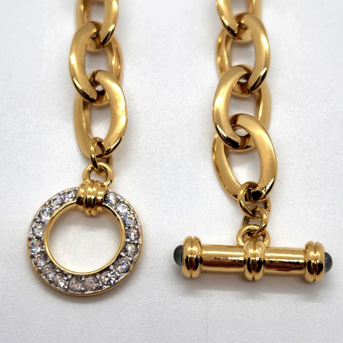 LOT 49RP: Vintage Nolan Miller Goldtone Chain & Rhinestone Toggle 18 1/4"   "Veneto" Necklace