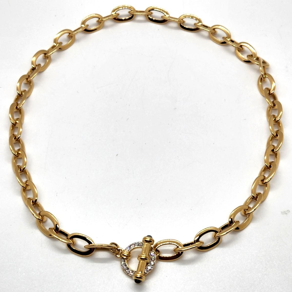 LOT 49RP: Vintage Nolan Miller Goldtone Chain & Rhinestone Toggle 18 1/4" "Veneto" Necklace