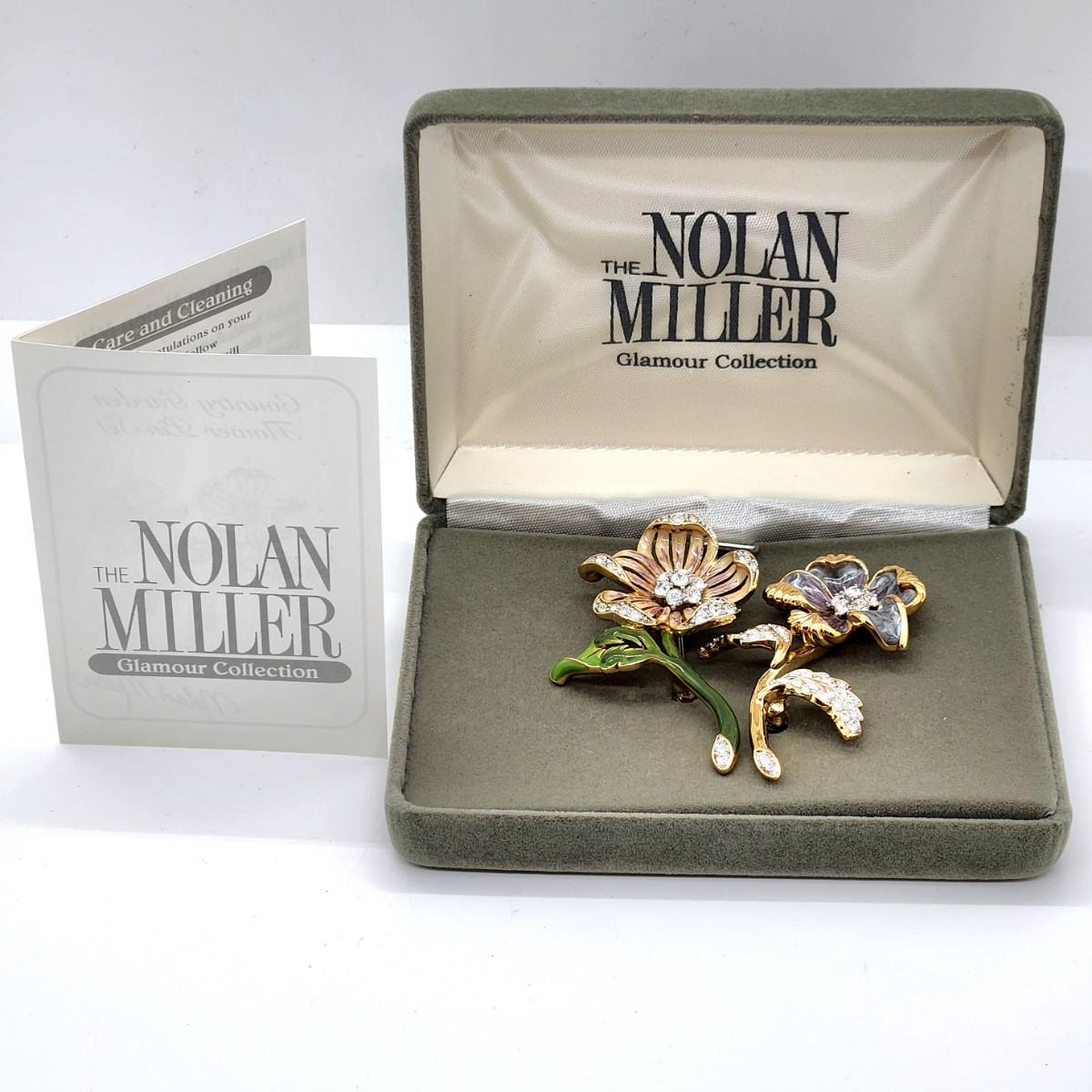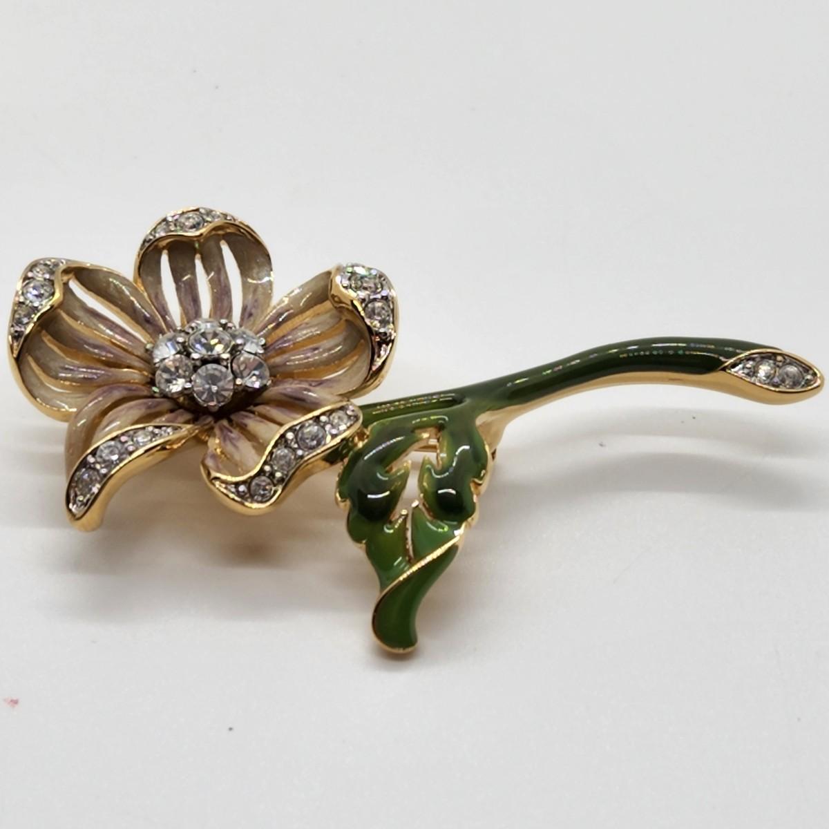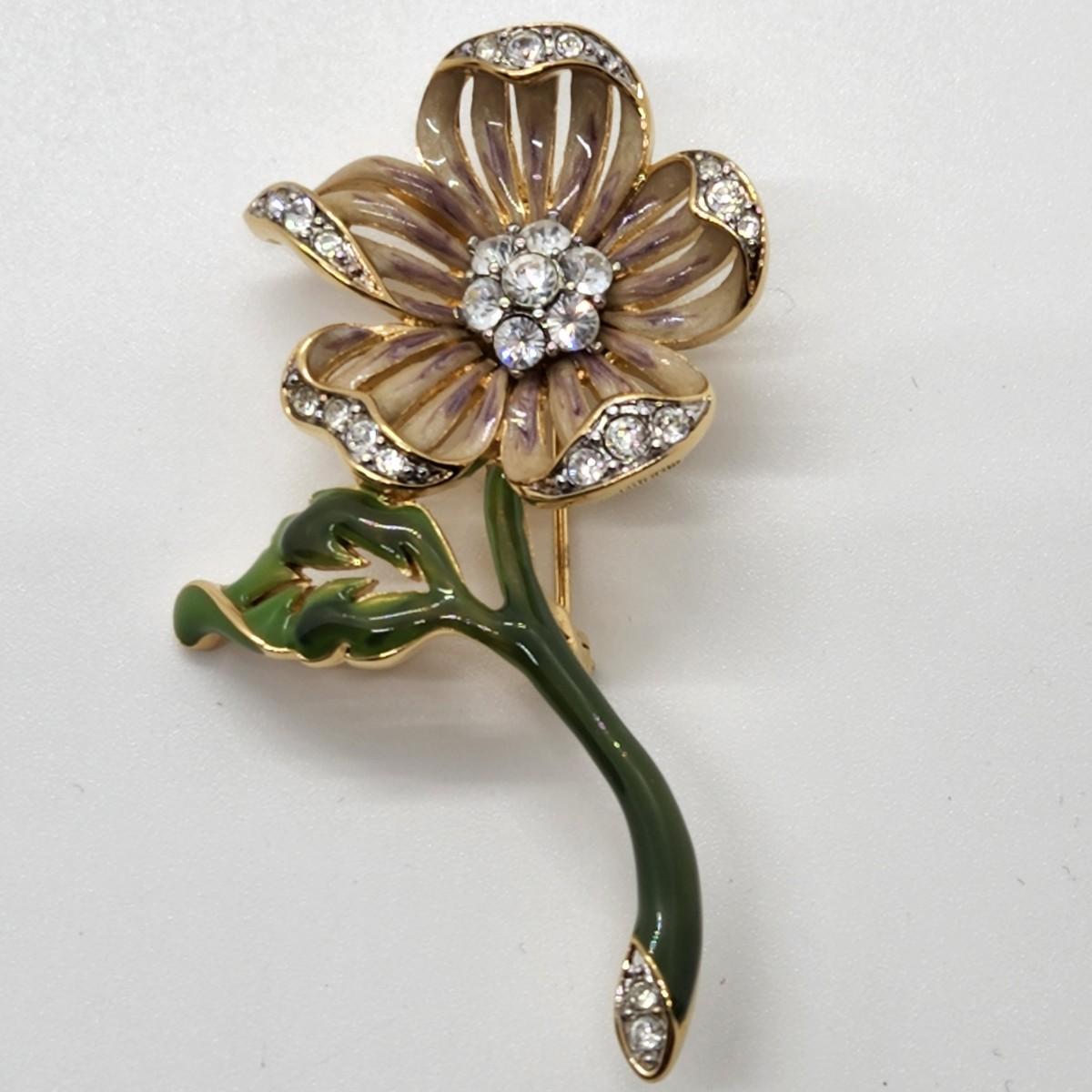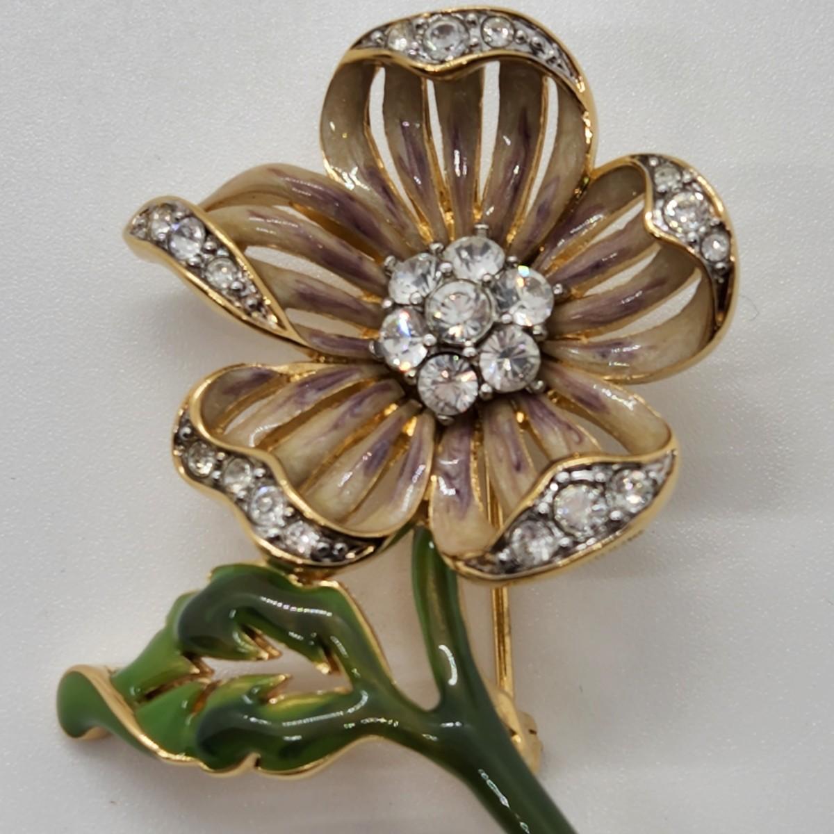 LOT 50RP Set of Two Vintage Nolan Miller Enamel & Pavé Rhinestone Flower Pins/Brooches