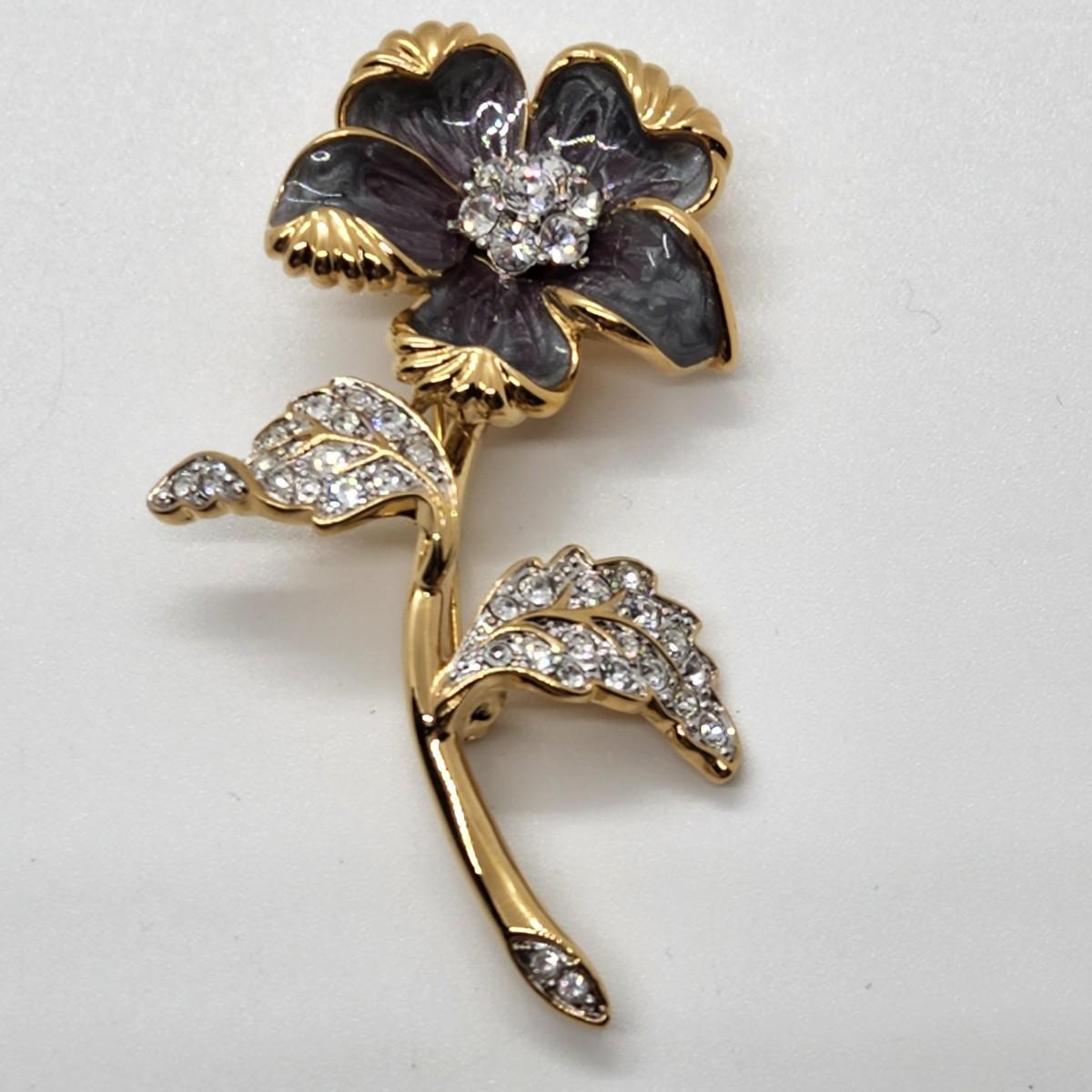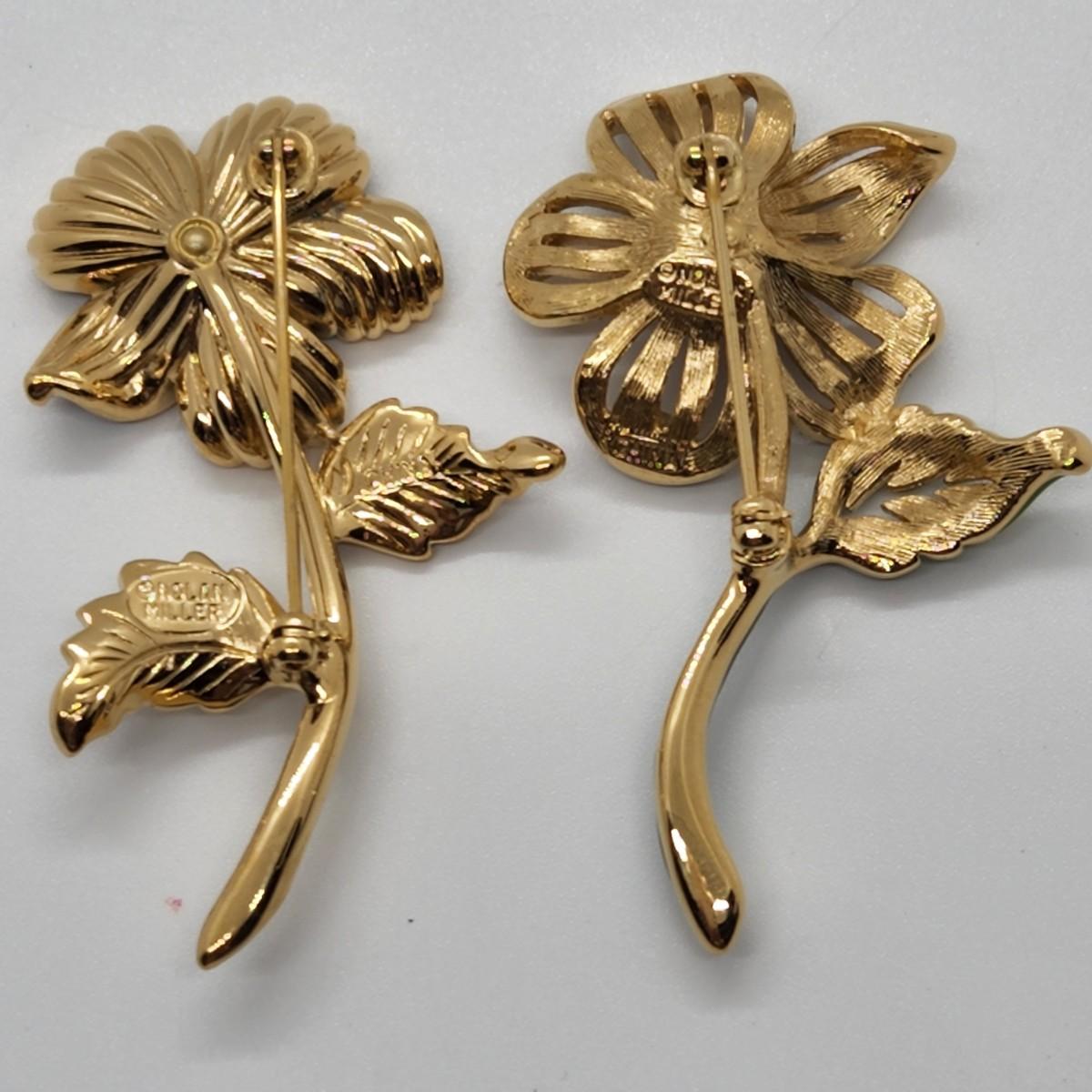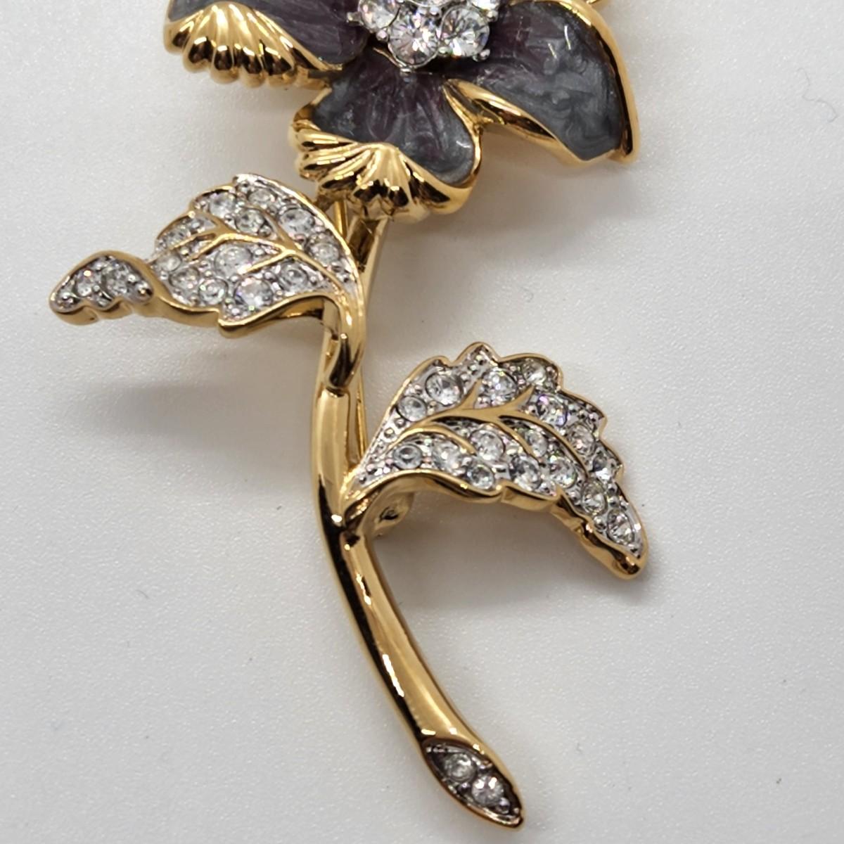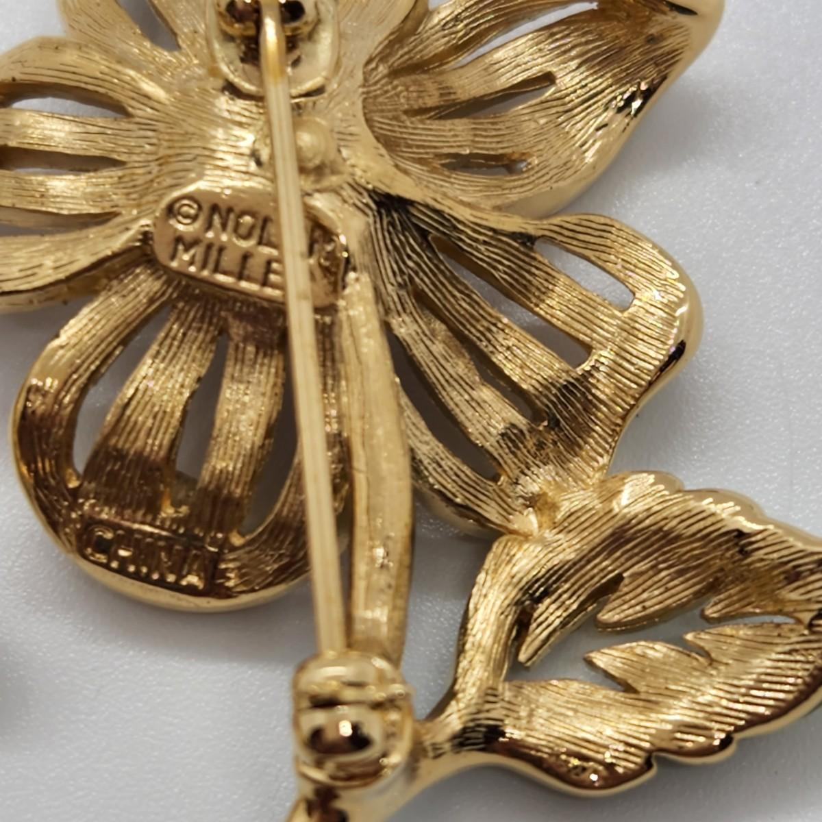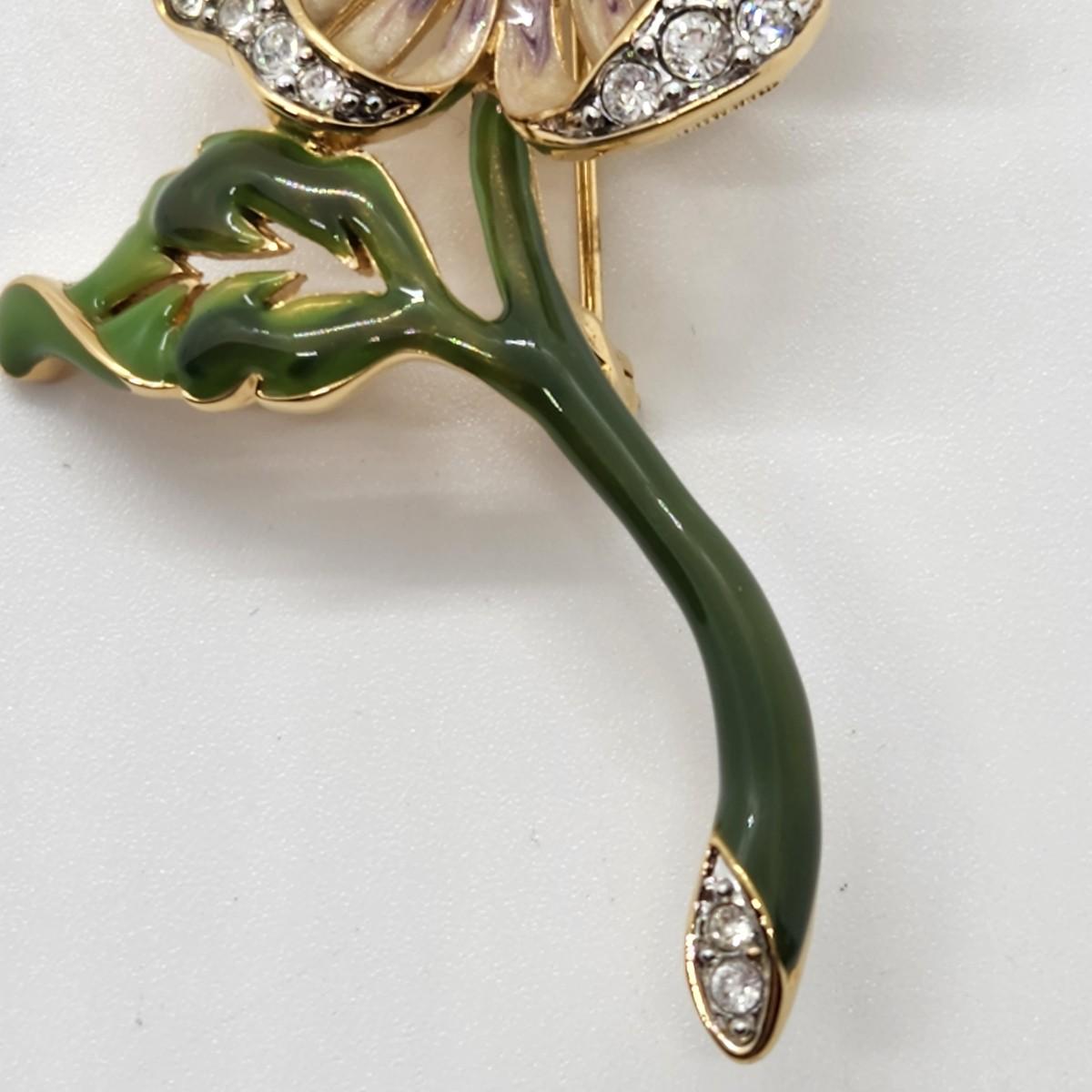 LOT 50RP Set of Two Vintage Nolan Miller Enamel & Pavé Rhinestone Flower Pins/Brooches