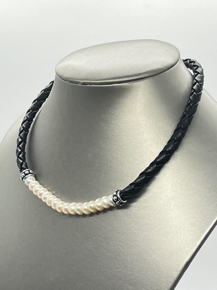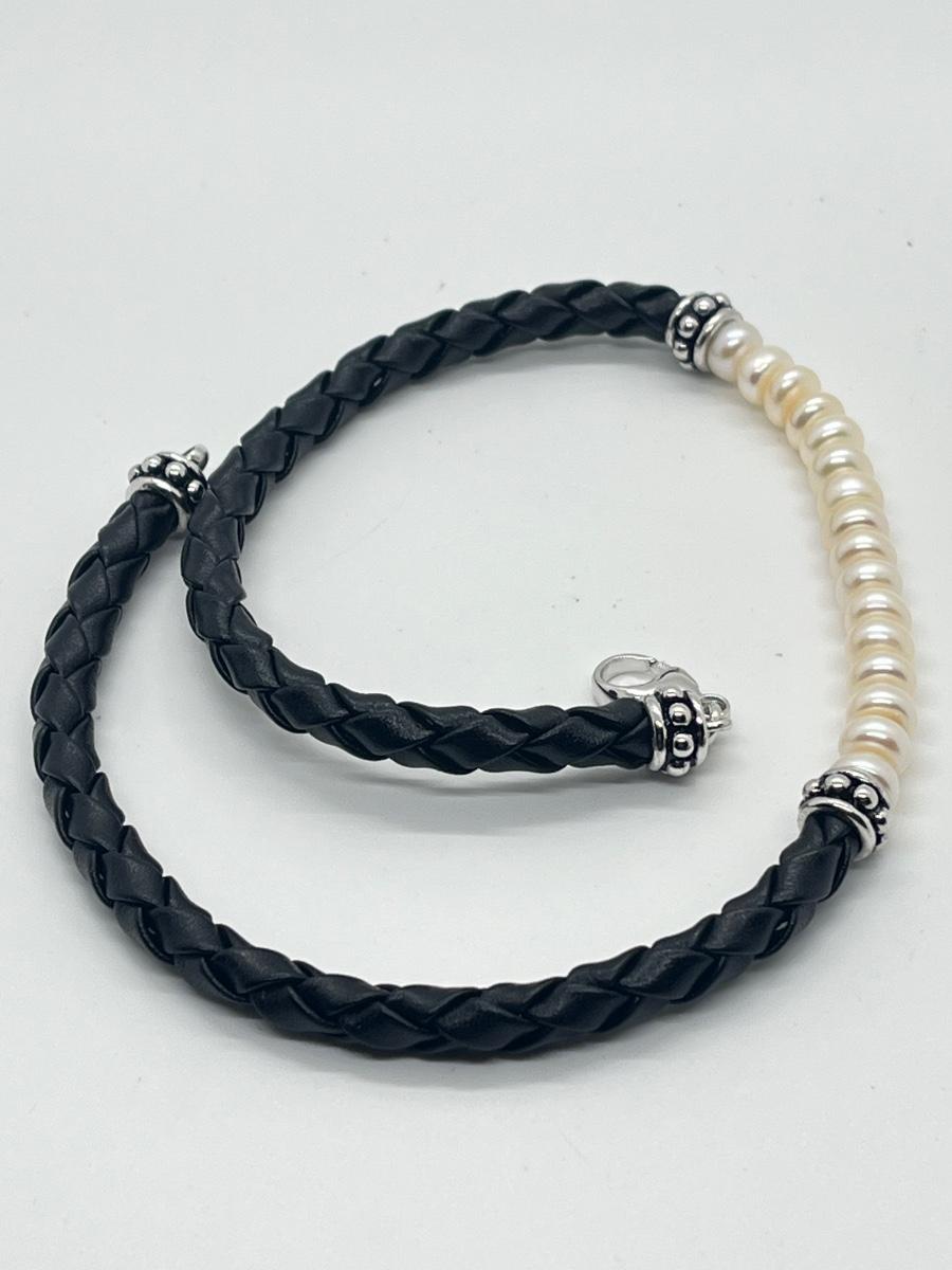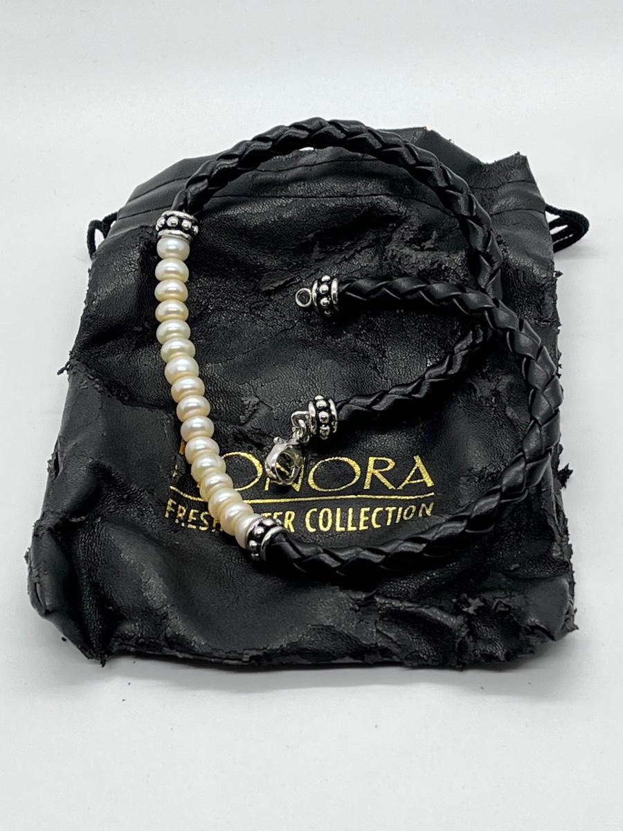 LOT 52: Honora Cultured Freshwater Pearls and Sterling Silver on 16" Leather Necklace