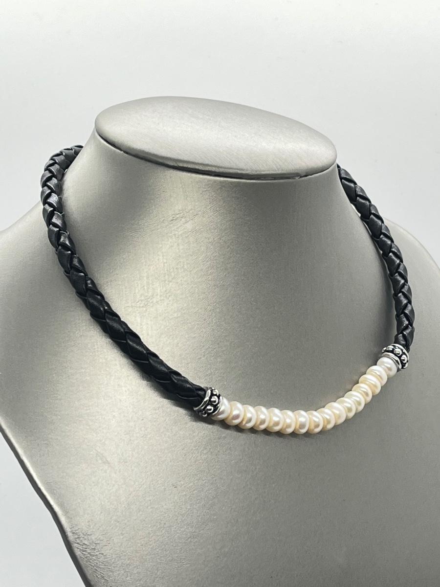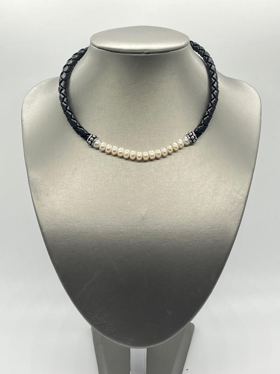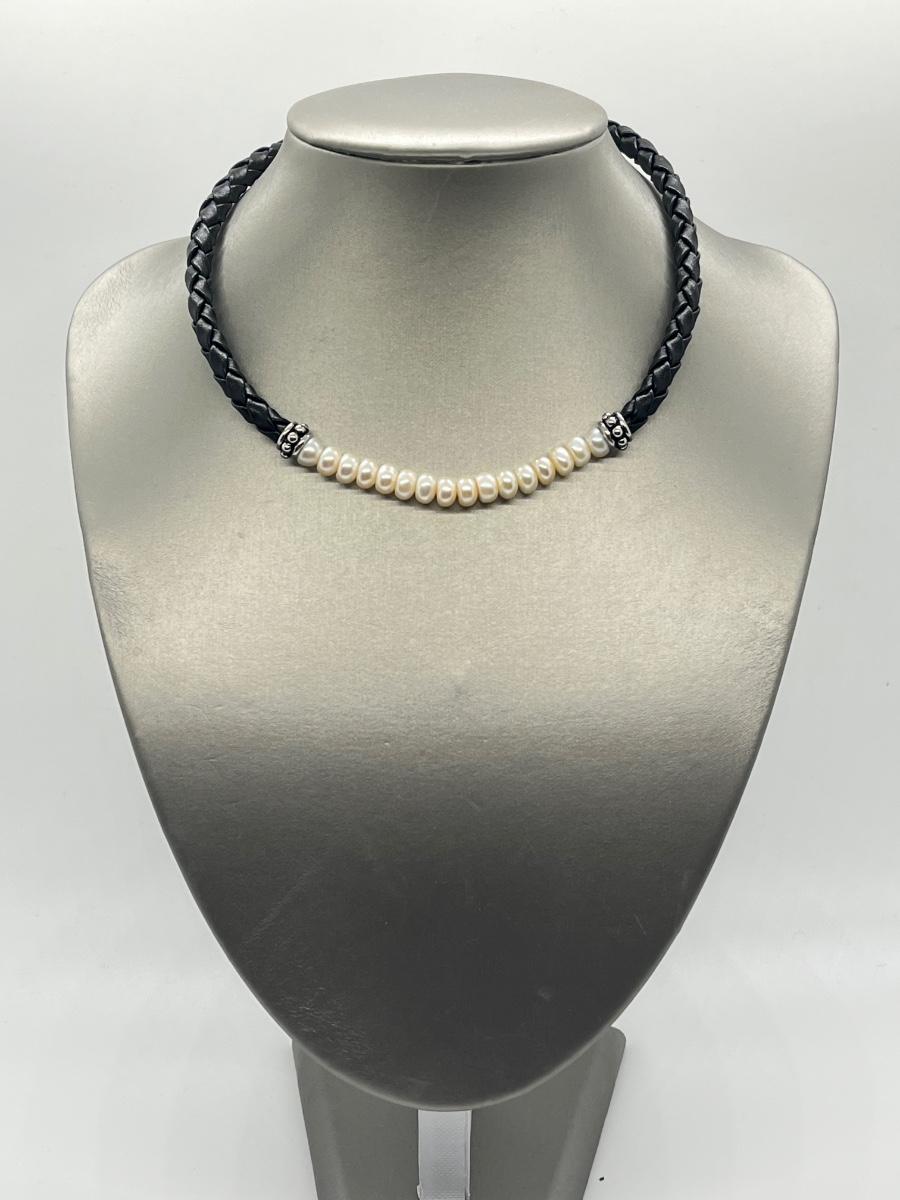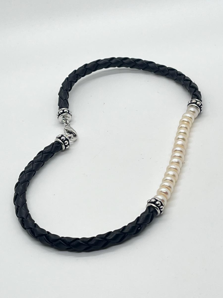 LOT 52: Honora Cultured Freshwater Pearls and Sterling Silver on 16" Leather Necklace
