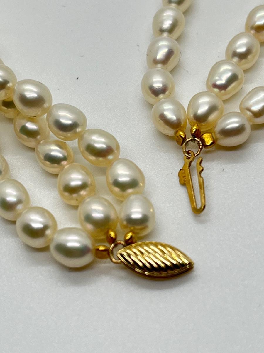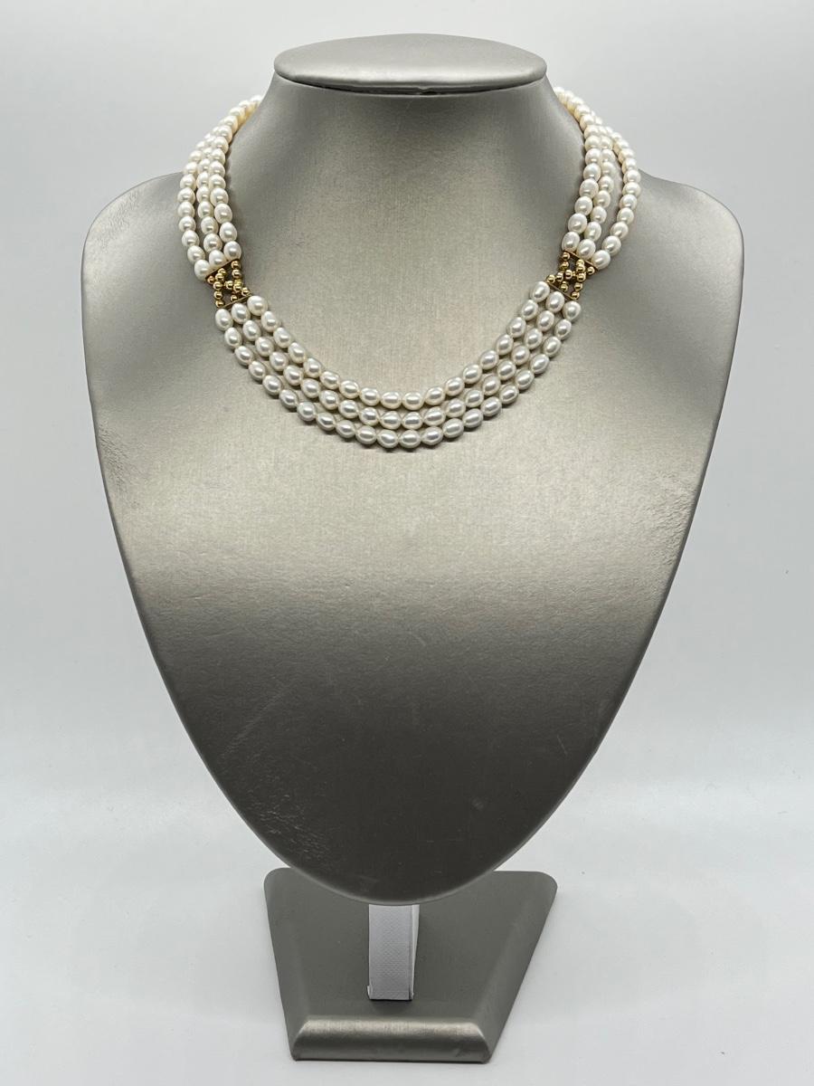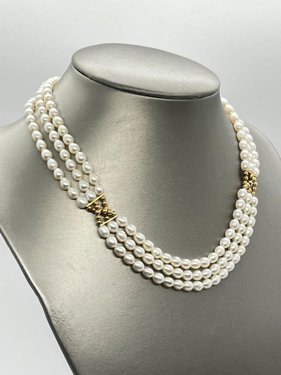 LOT 56: Honora Triple-Strand Cultured Freshwater Pearl & Gold Bead 16" Necklace - 14K on clasp
