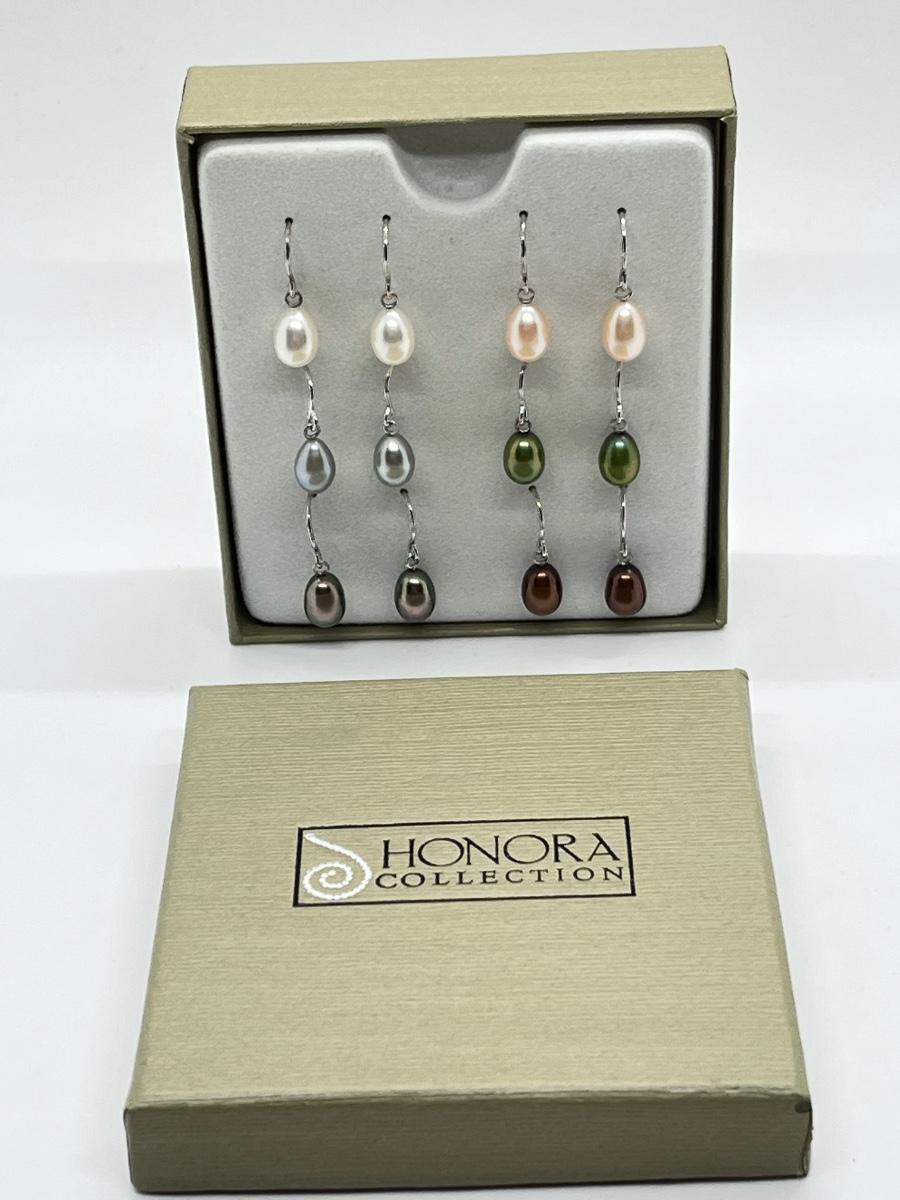 LOT63J: Honora Cultured Freshwater Pearl 6 Pairs Drop Earrings