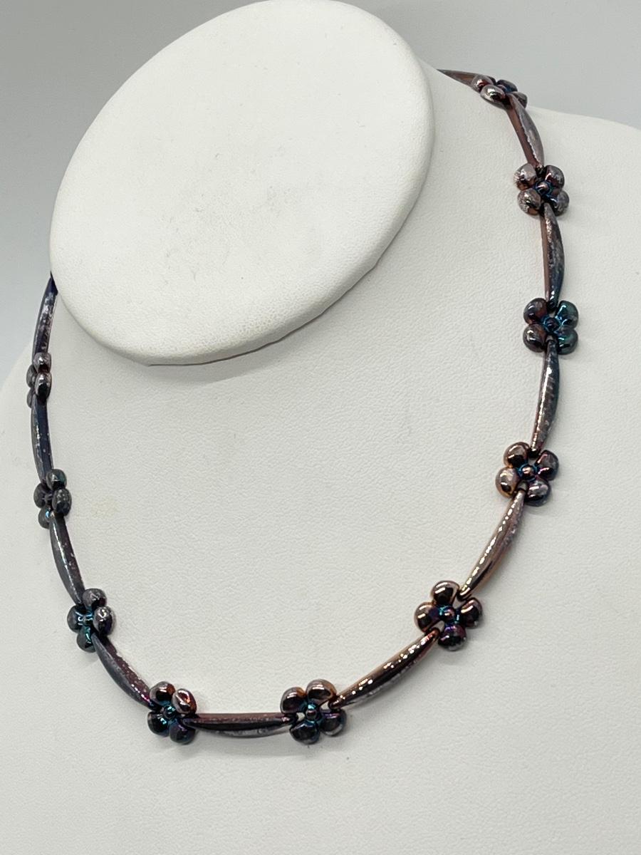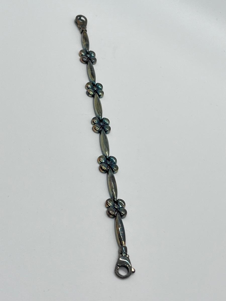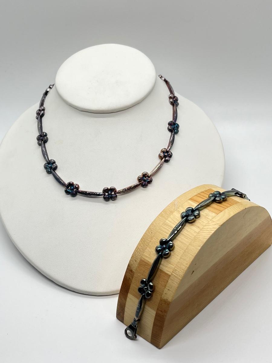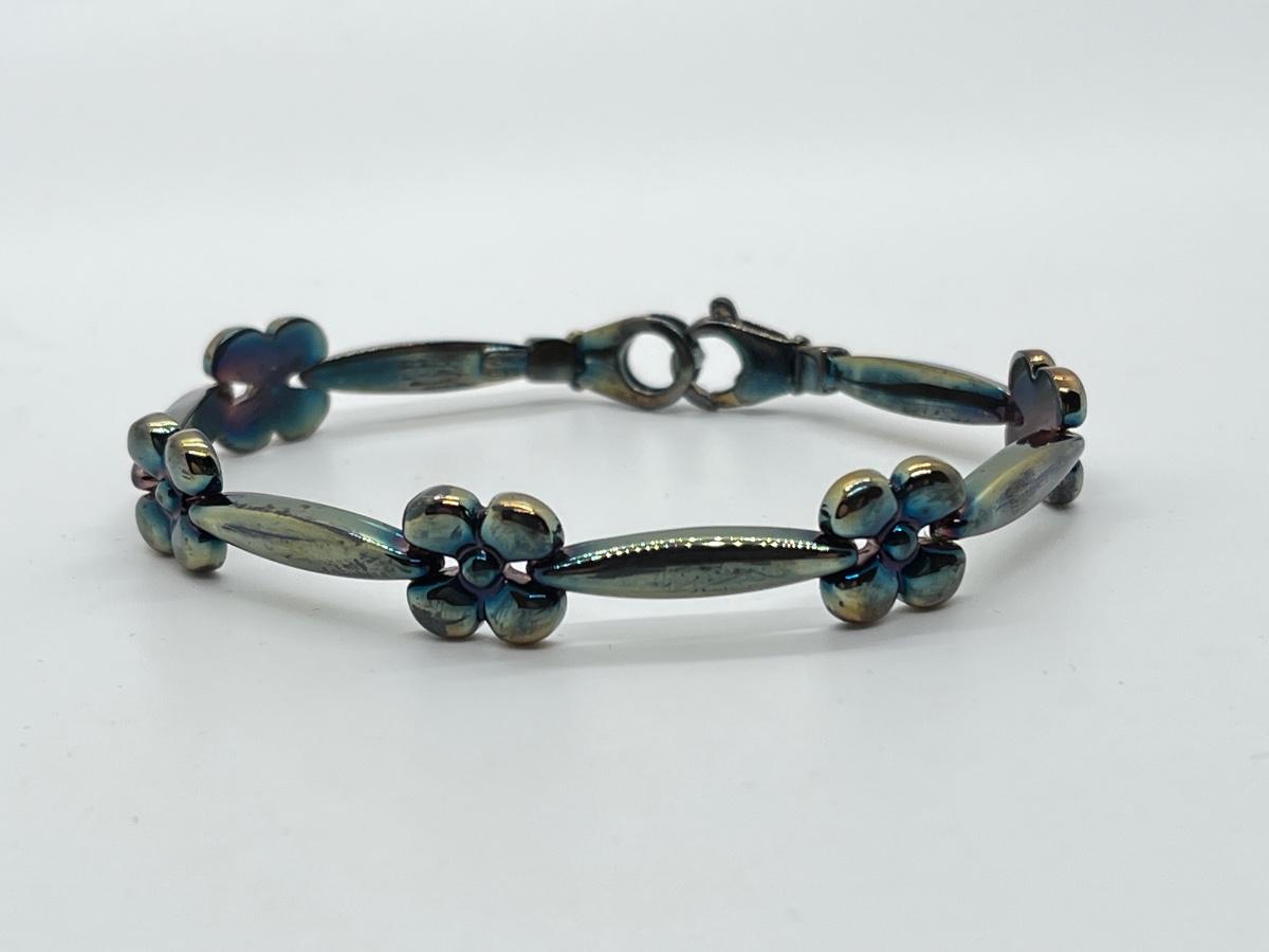 LOT64J: Sterling 17" Flower Design "Stampato" Necklace & 7.1/4" Flower Bracelet Milor Italy