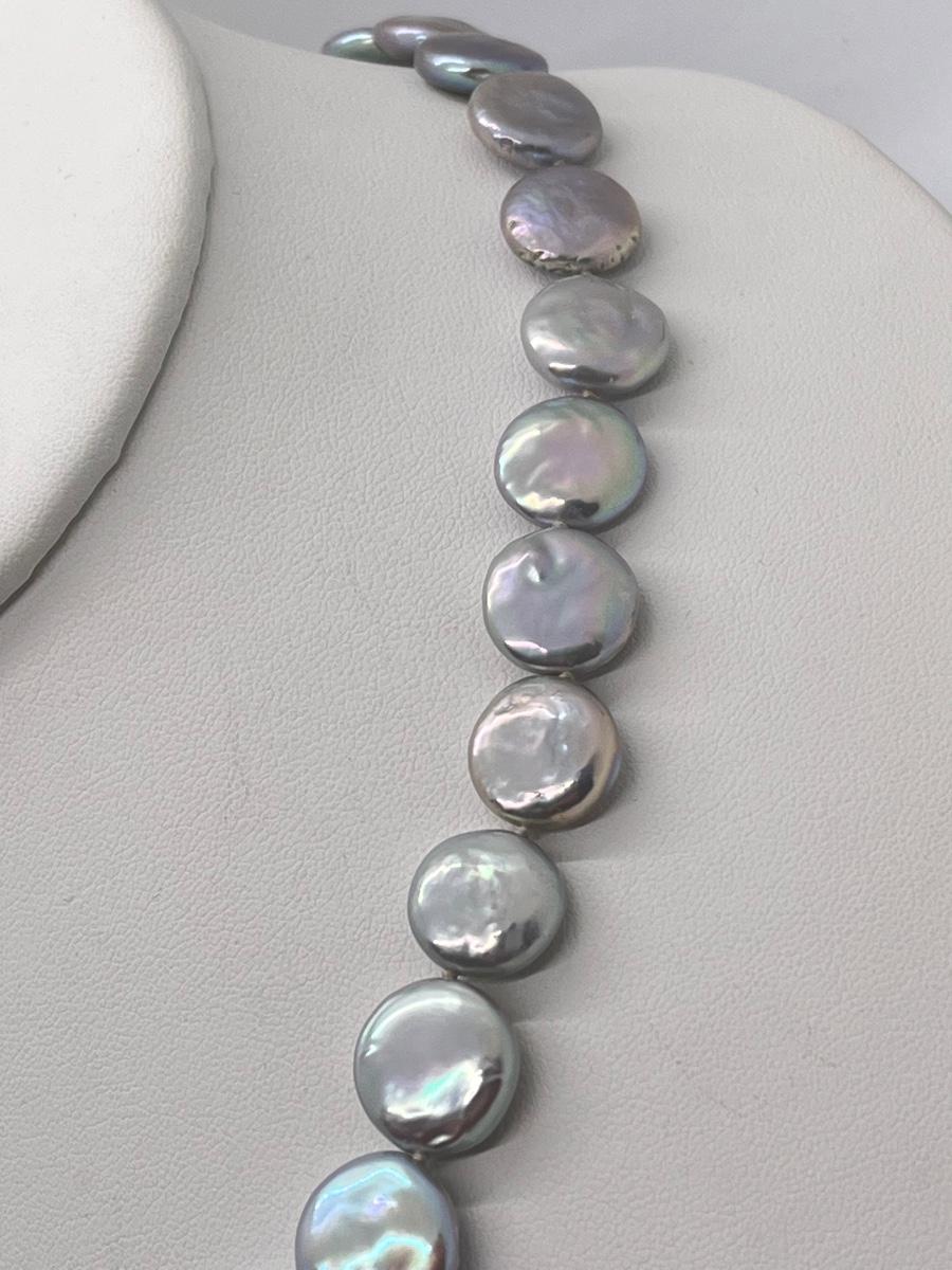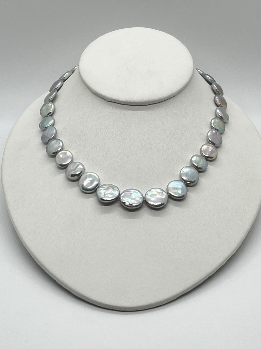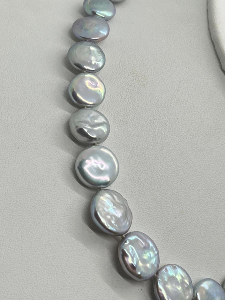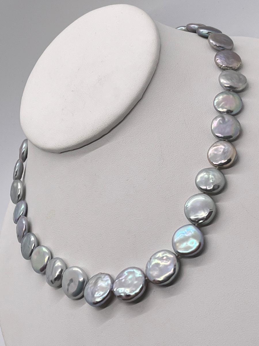 LOT65lJ: Honora Graduated Coin Cultured Freshwater Pearls 18" Silvery Strand Sterling silver clasp