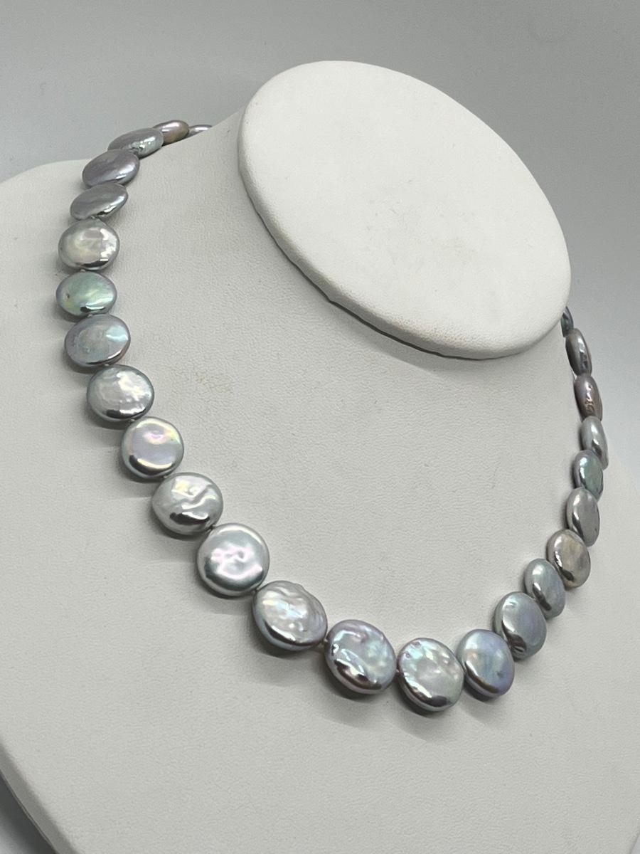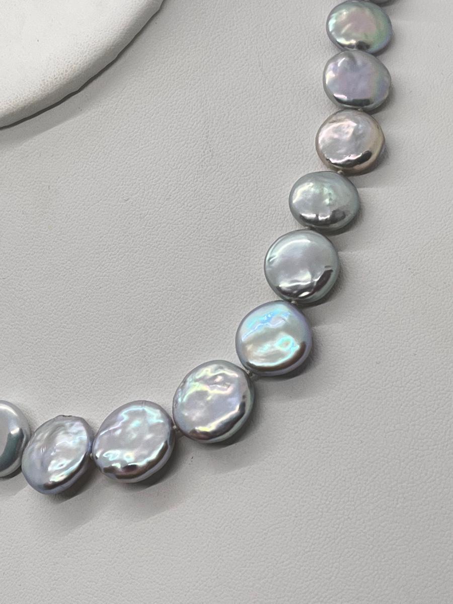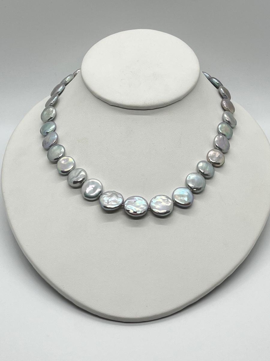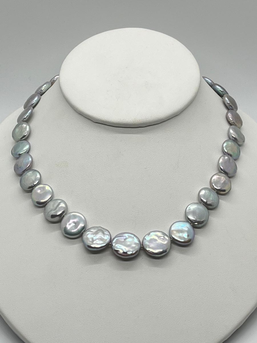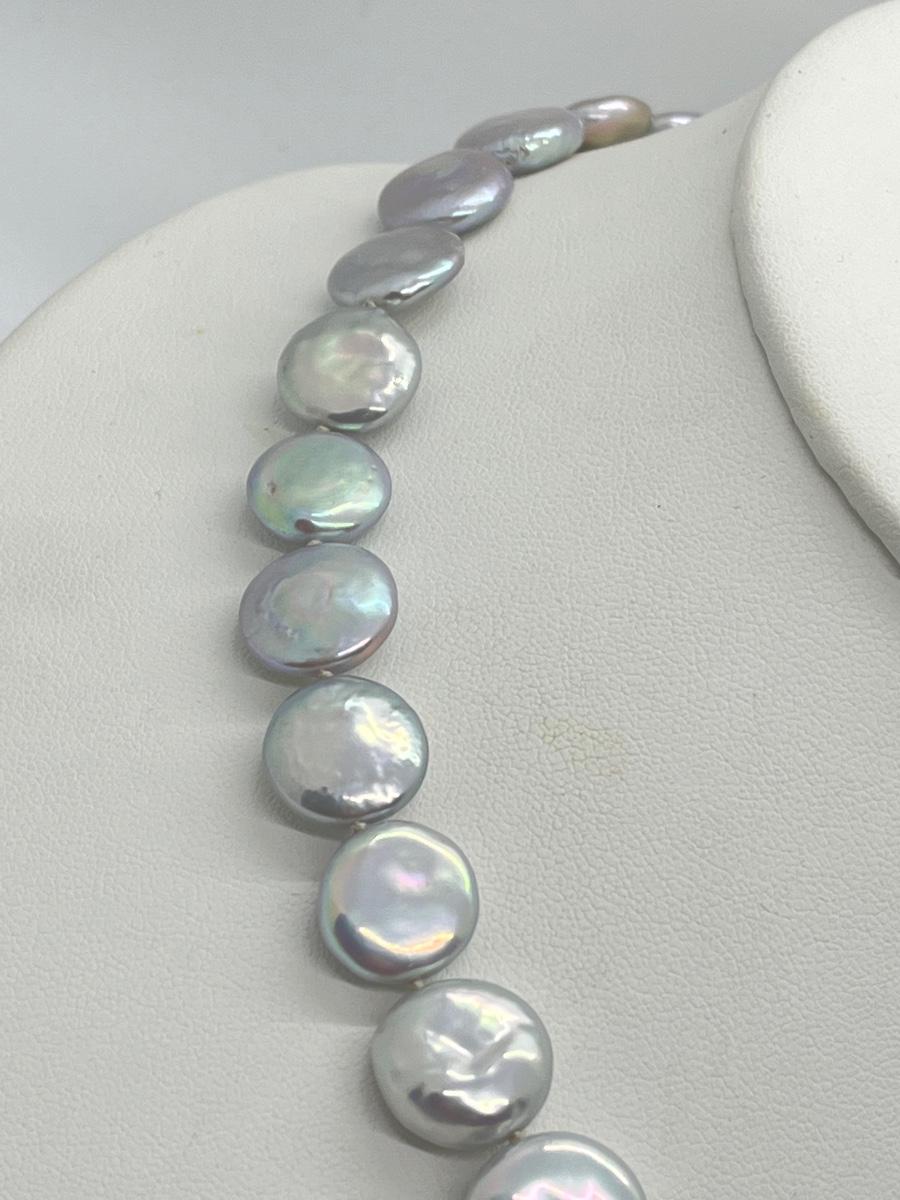LOT65lJ: Honora Graduated Coin Cultured Freshwater Pearls 18" Silvery Strand Sterling silver clasp