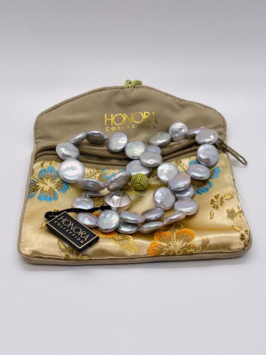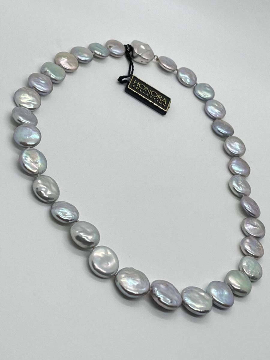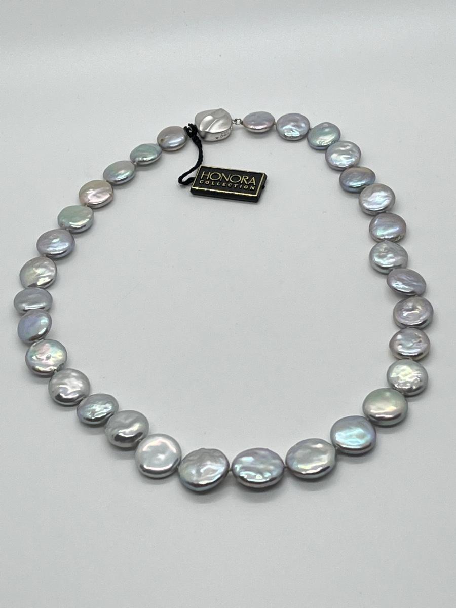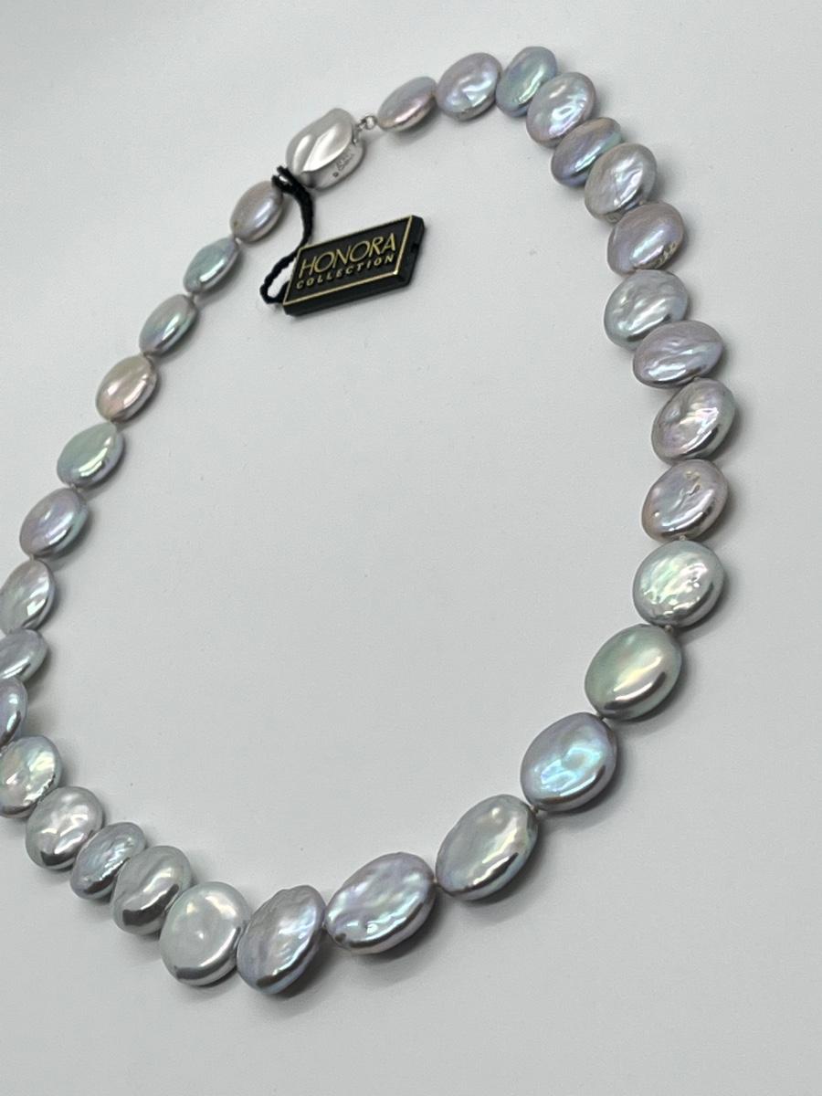 LOT65lJ: Honora  Graduated Coin Cultured Freshwater Pearls 18" Silvery Strand Sterling silver clasp