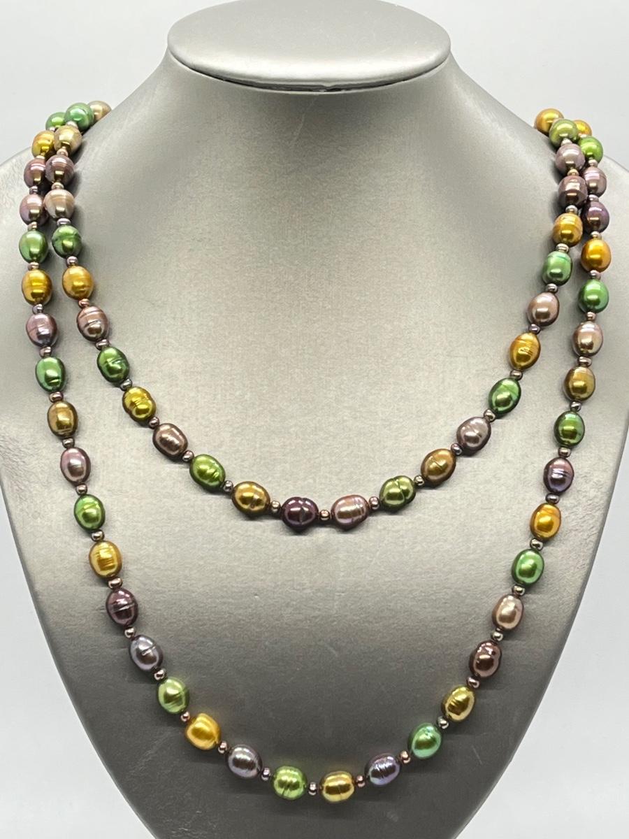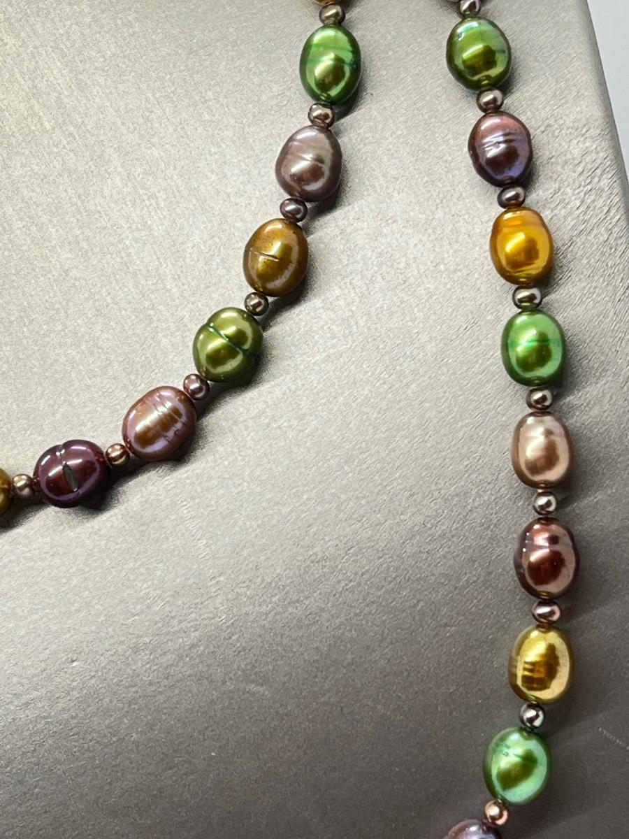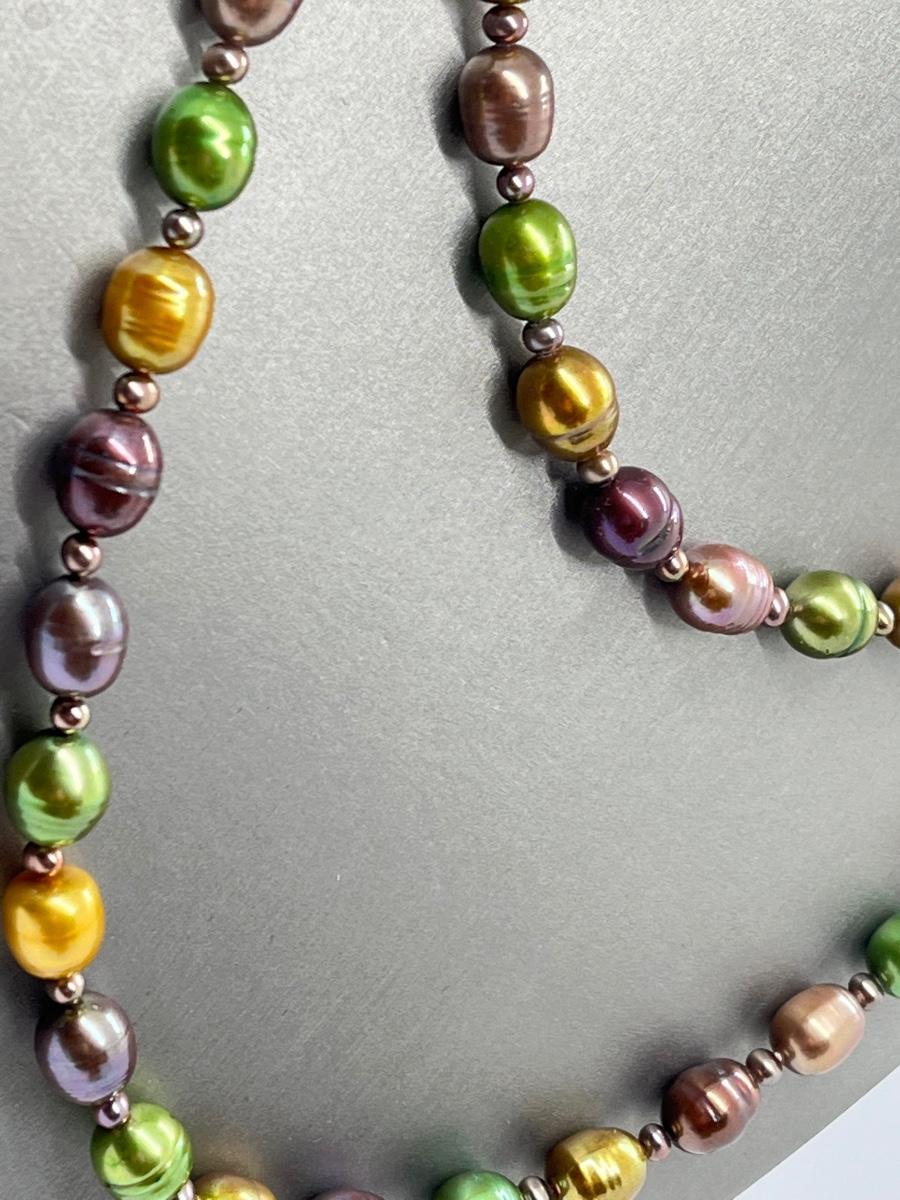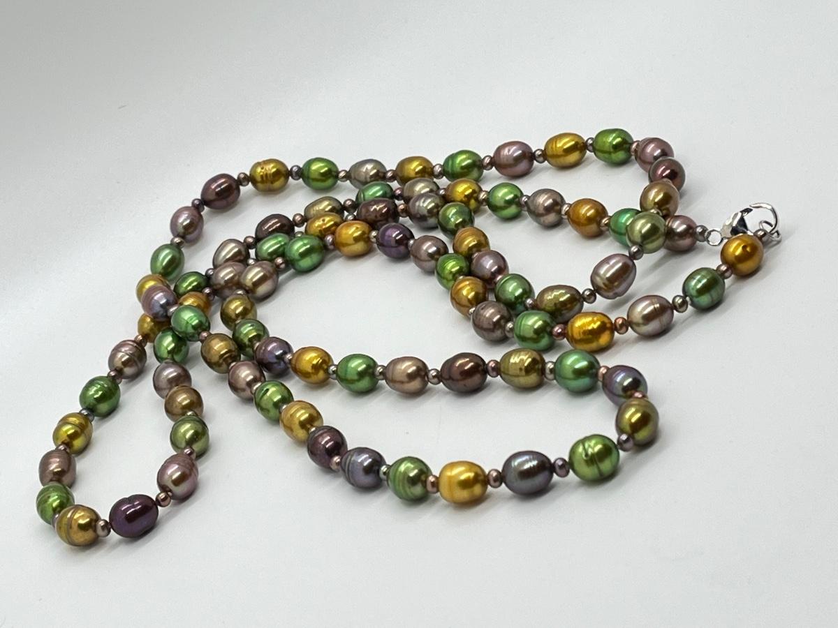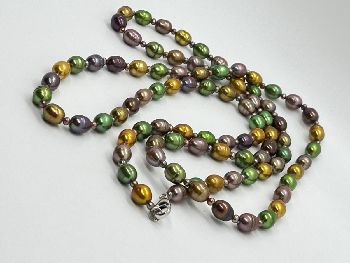 LOT80J: Honora Cultured Freshwater Pearl Multi Color 48" Necklace Sterling Clasp