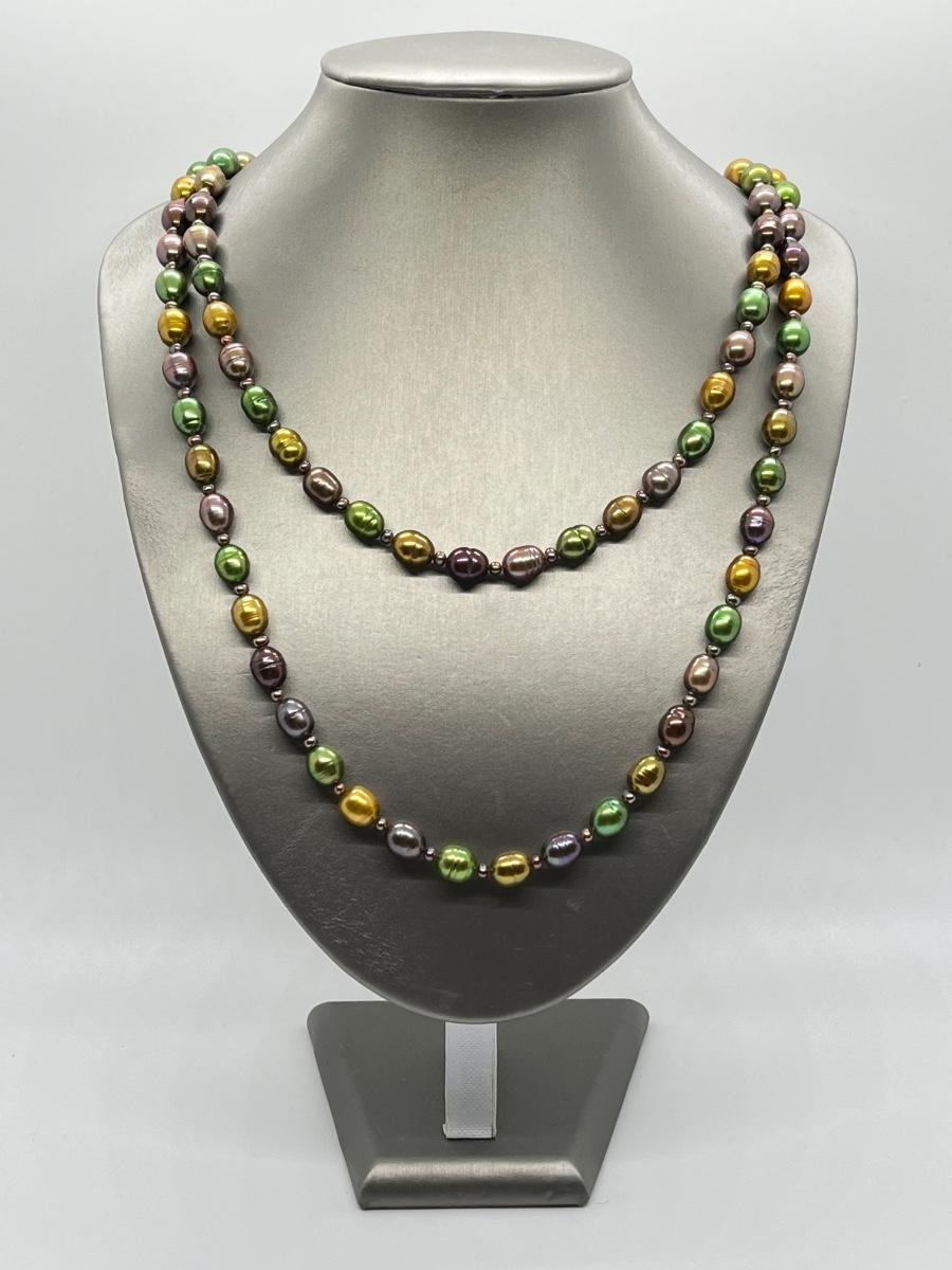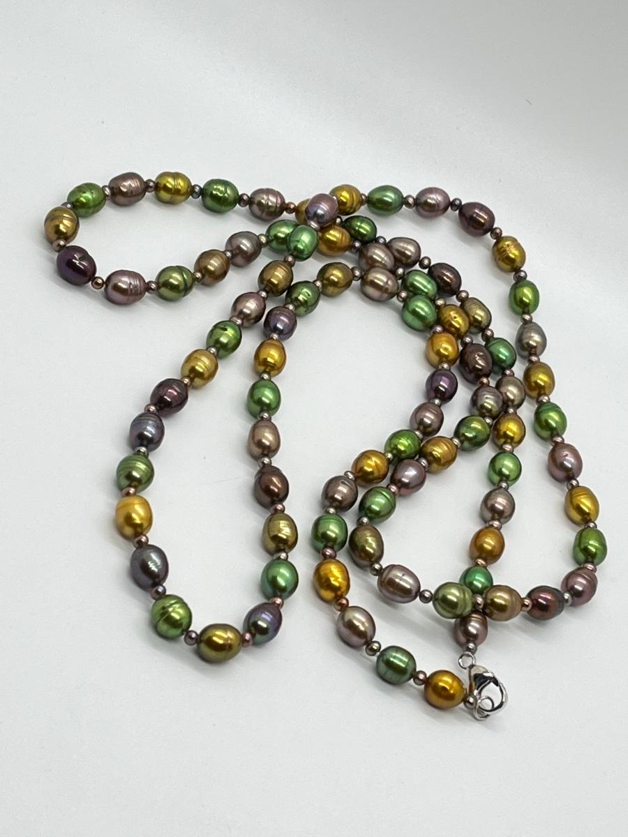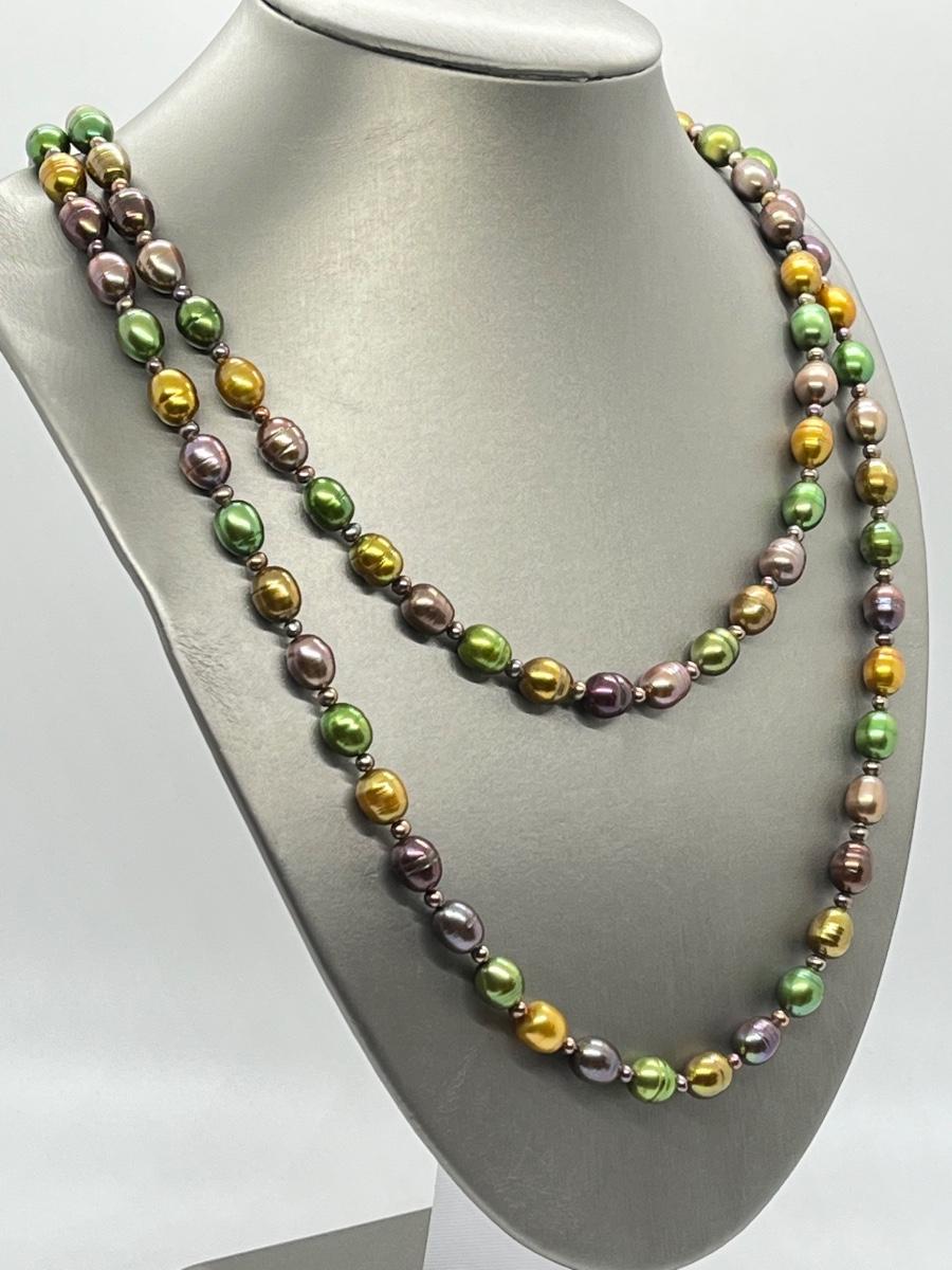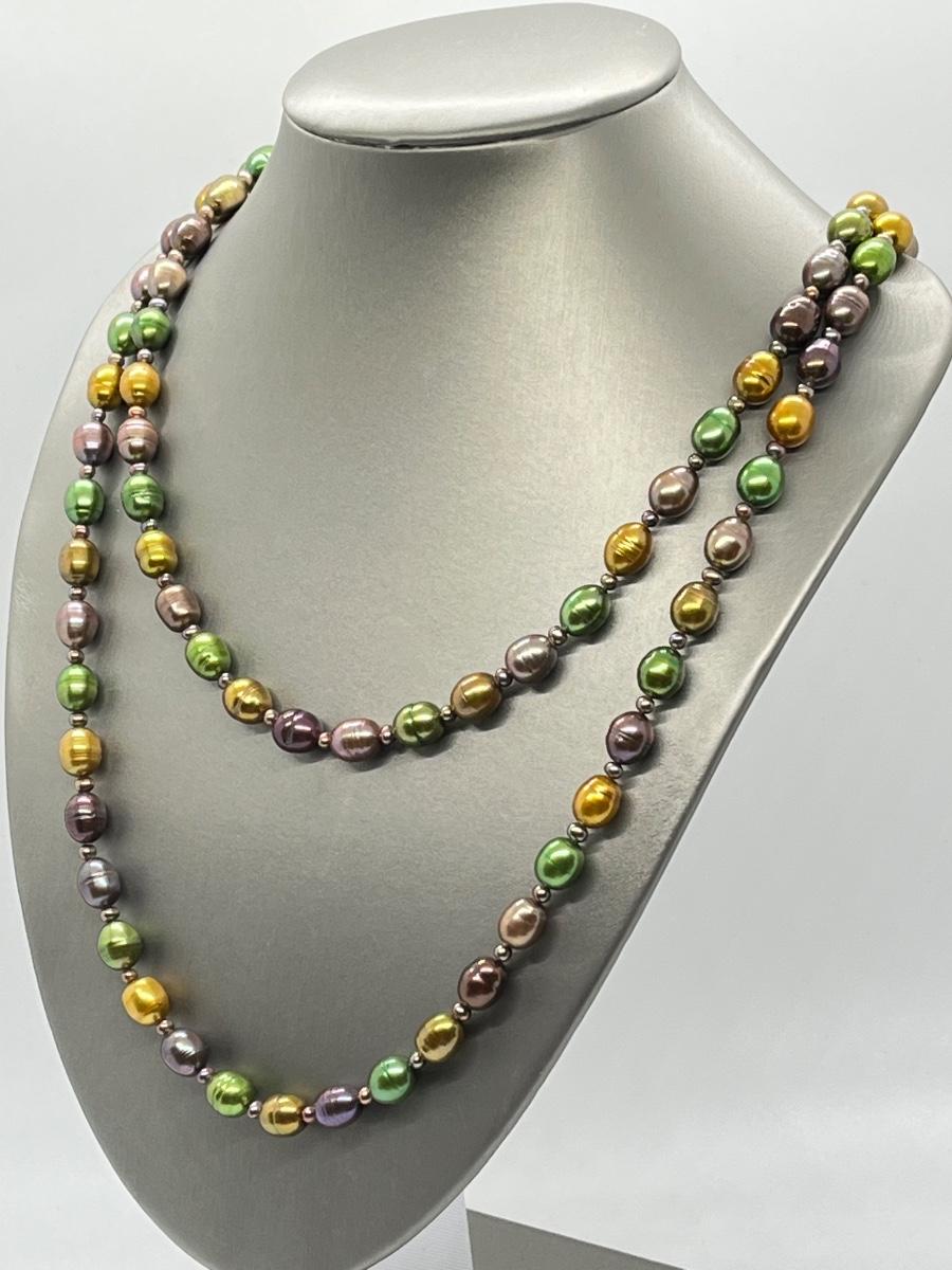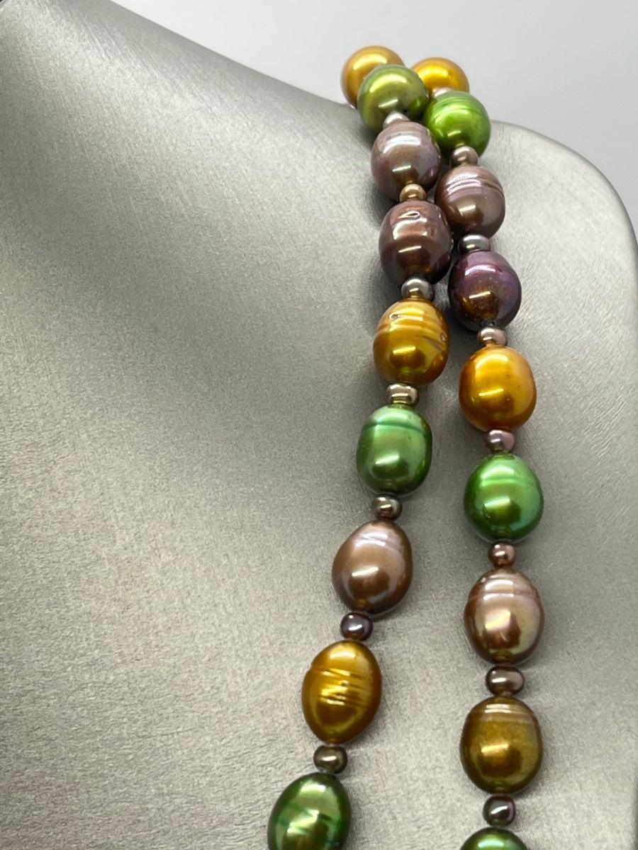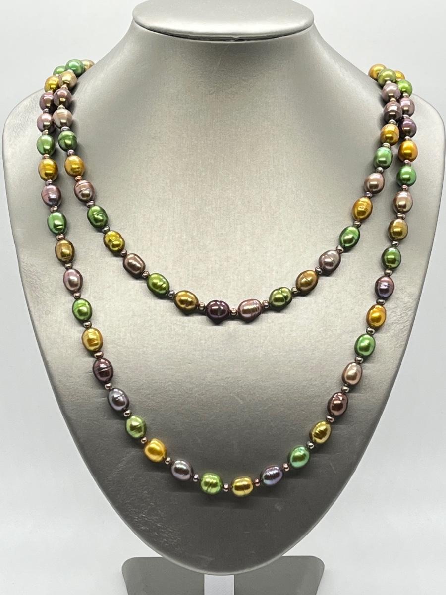 LOT80J: Honora Cultured Freshwater Pearl Multi Color 48" Necklace Sterling Clasp