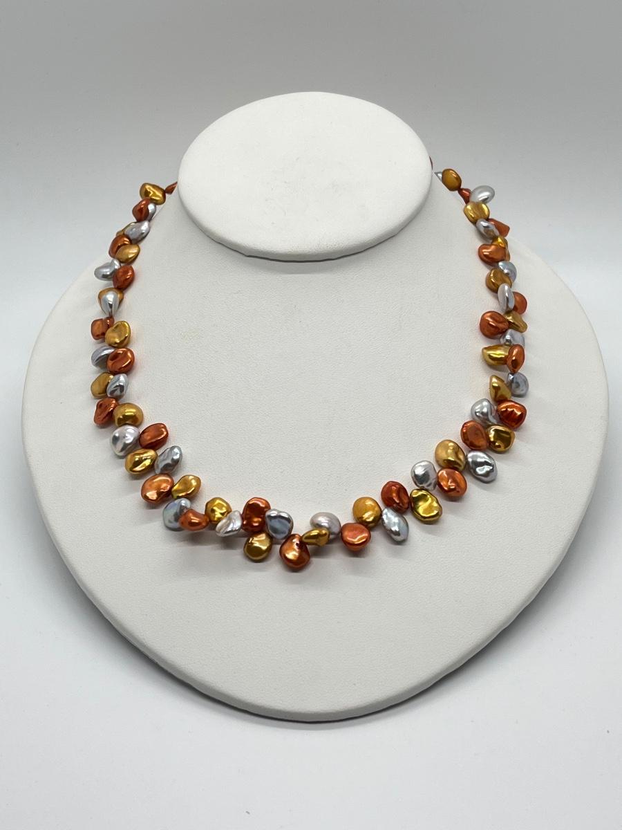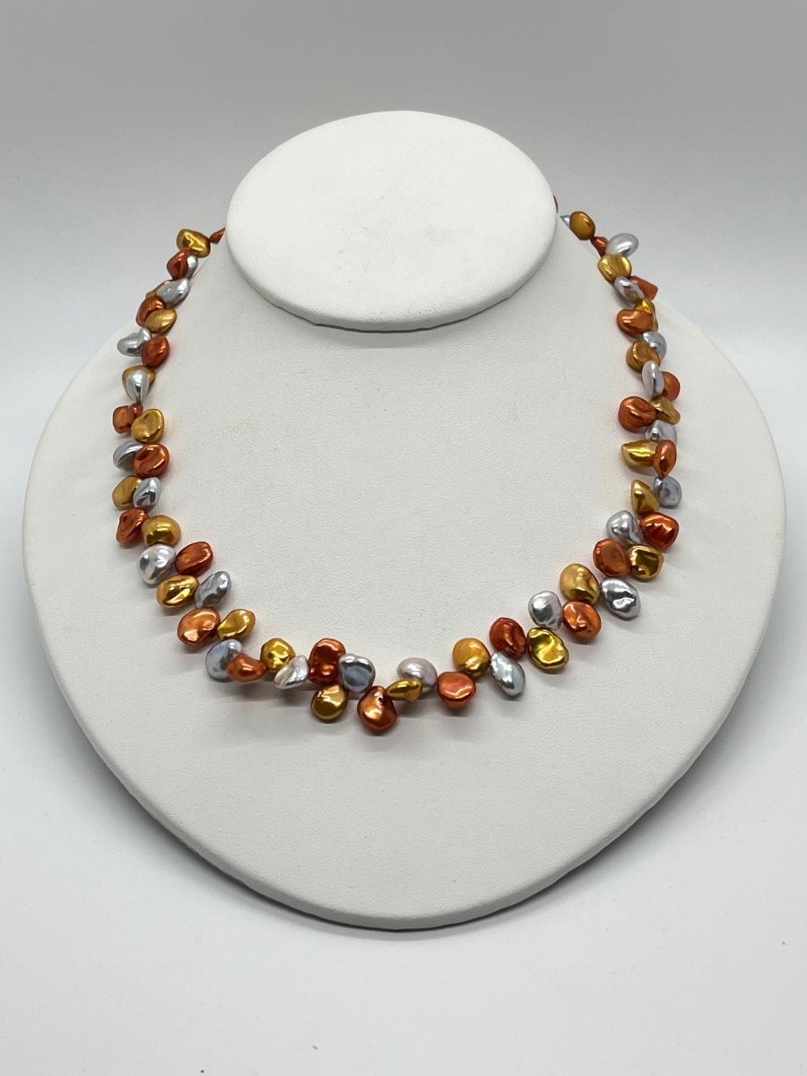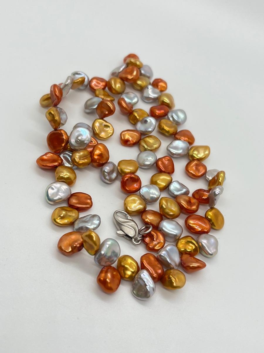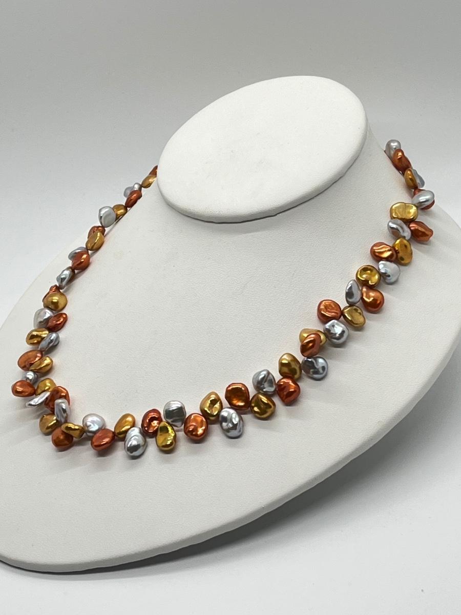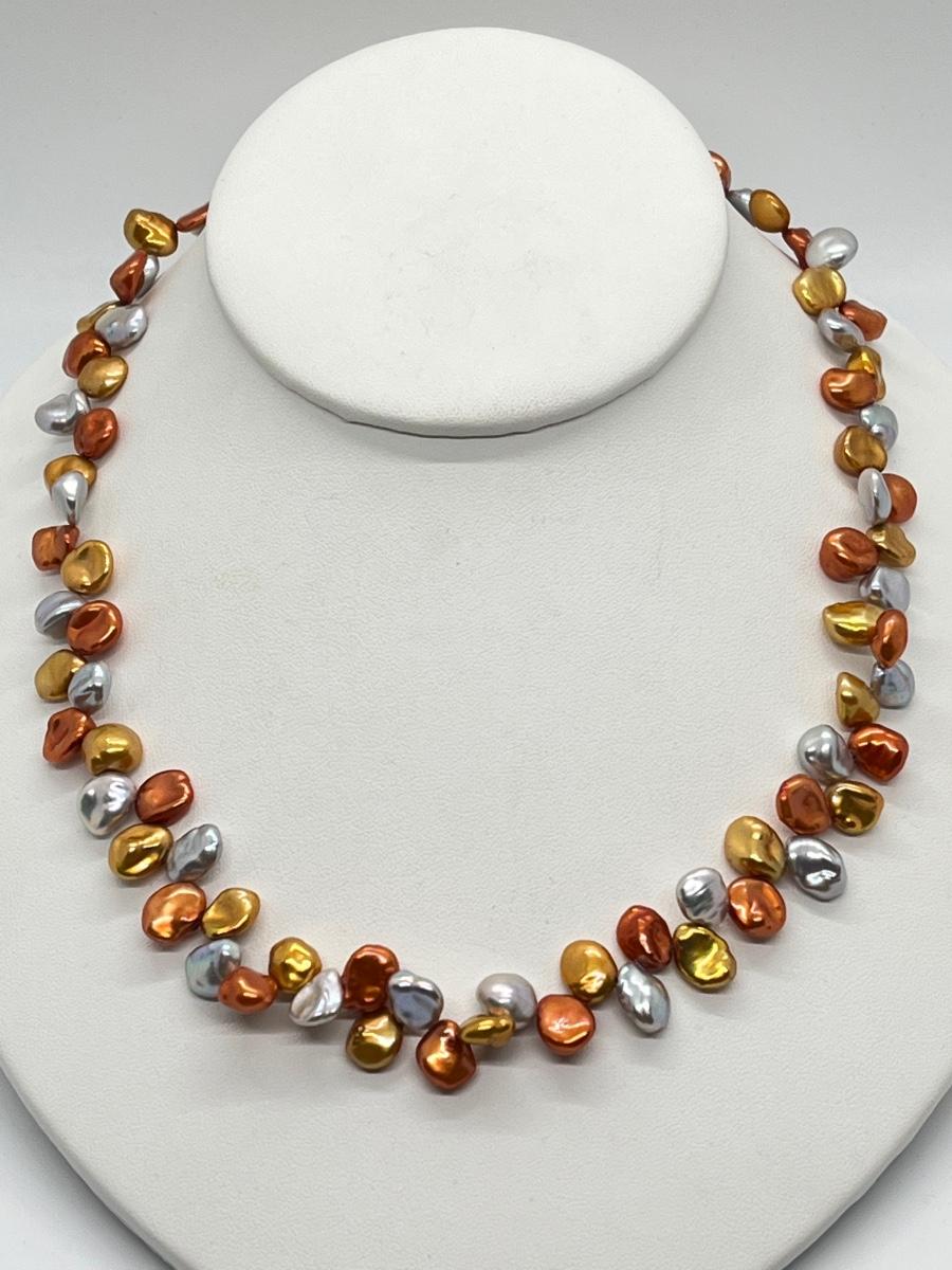 LOT82J: Honora 8mm Cultured Pearl Metallica Keshi 20" Strand Sterling Clasp