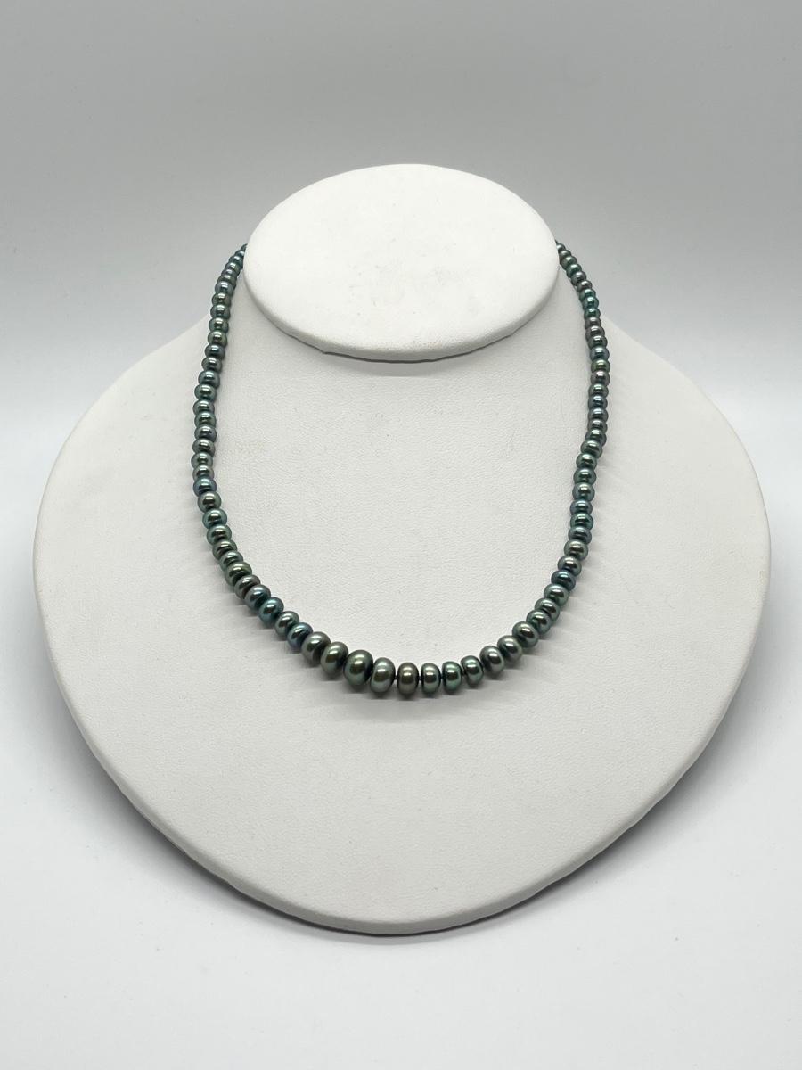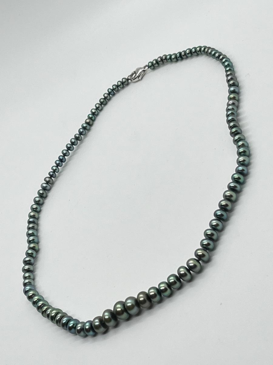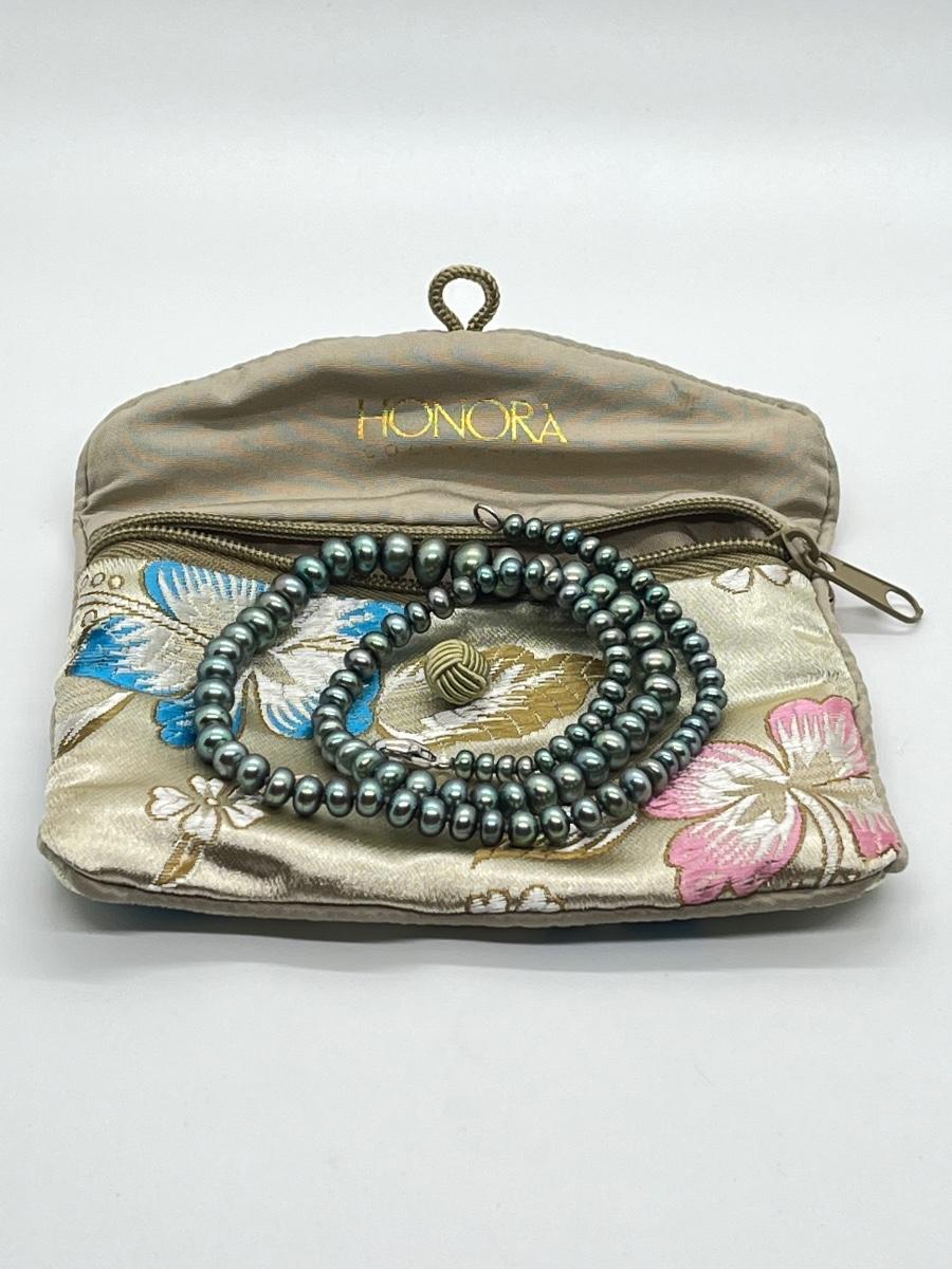 LOTJ84: 18" strand of Honora "Pistachio" Cultured Pearls 925 clasp