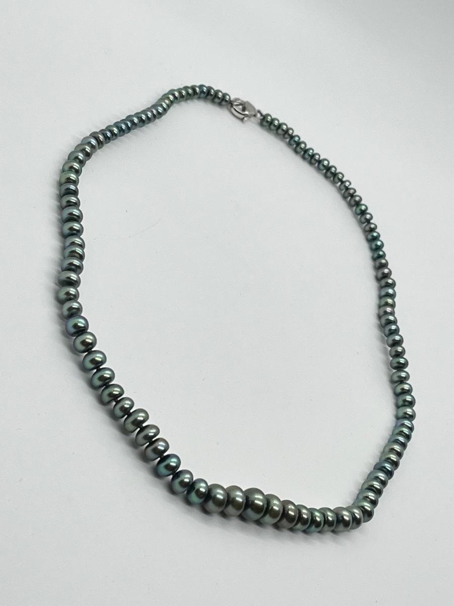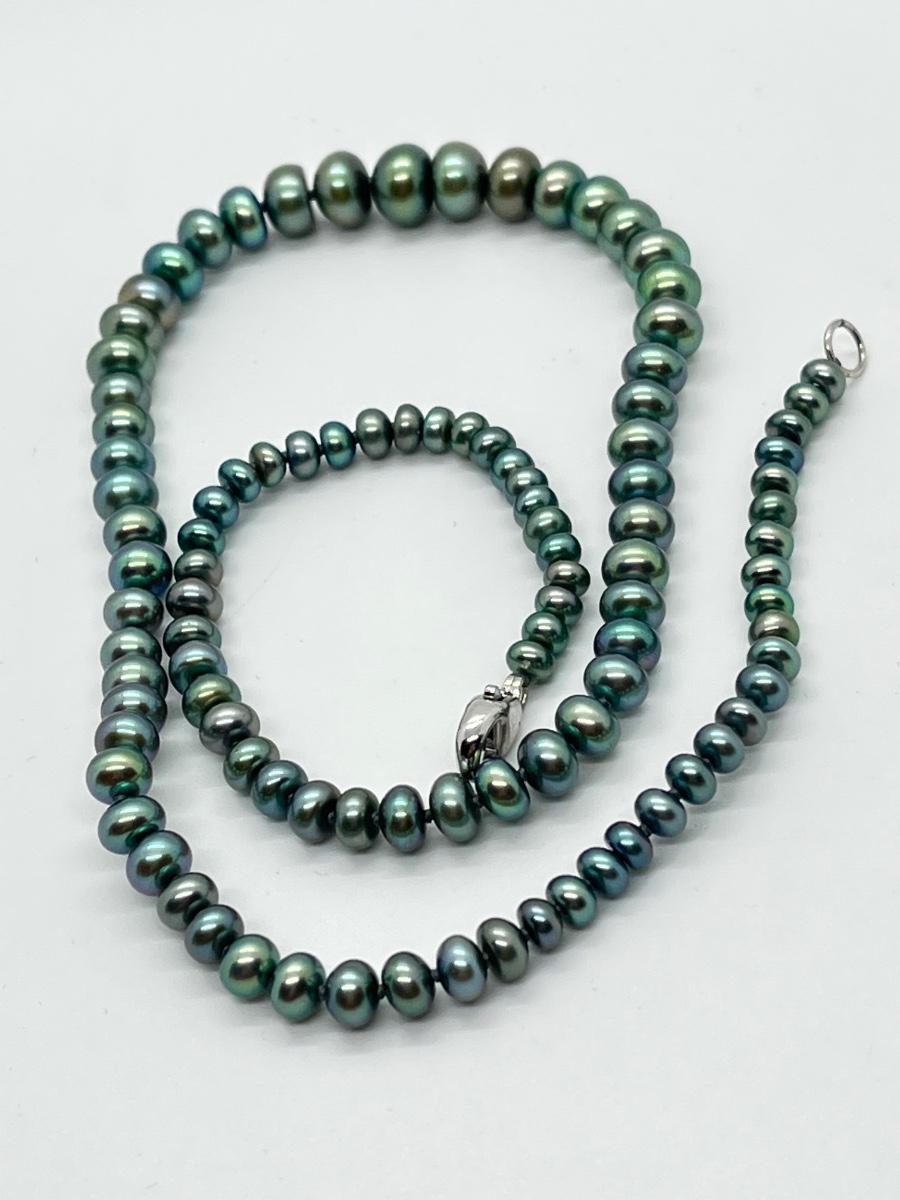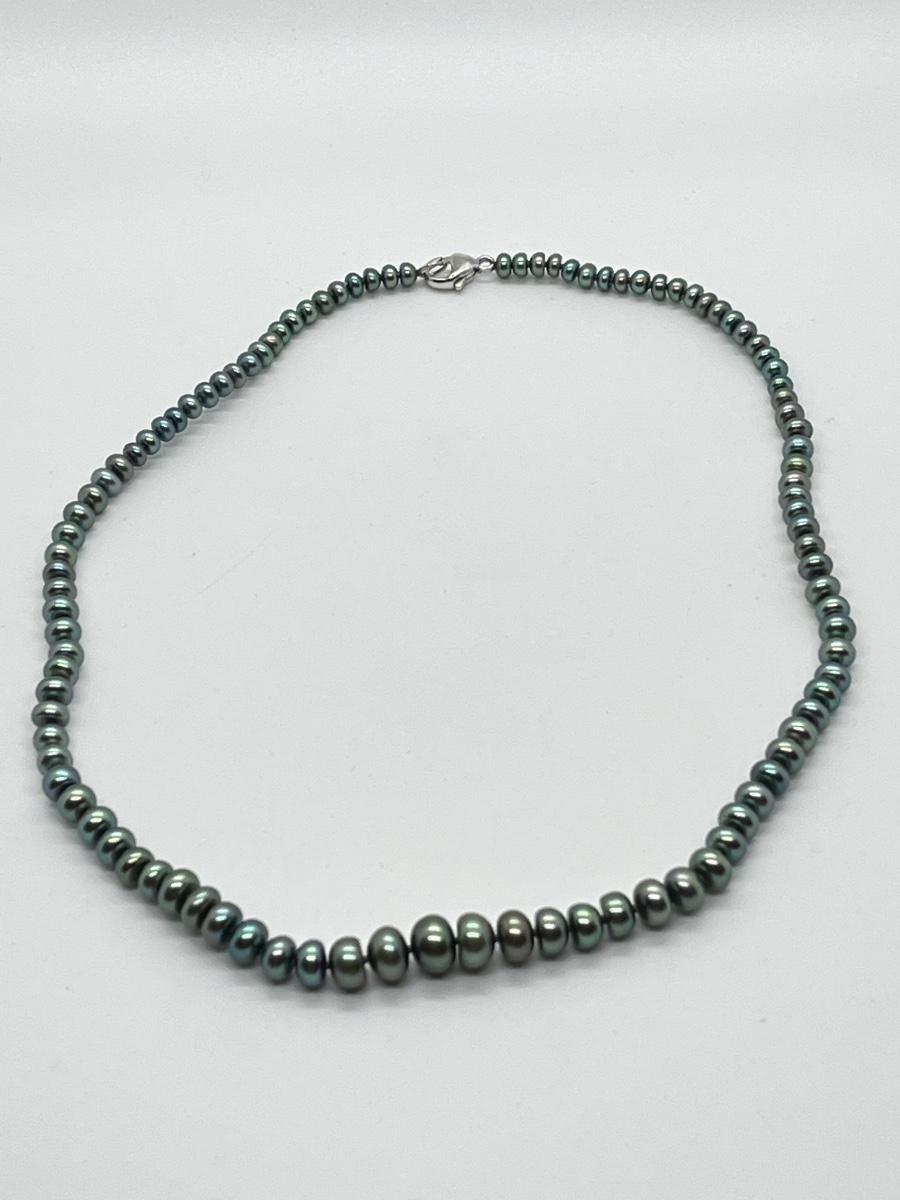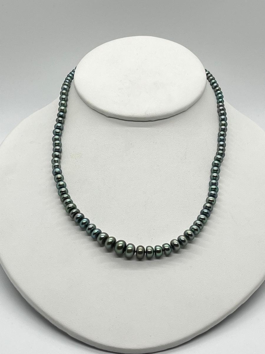 LOTJ84: 18" strand of Honora "Pistachio" Cultured Pearls 925 clasp
