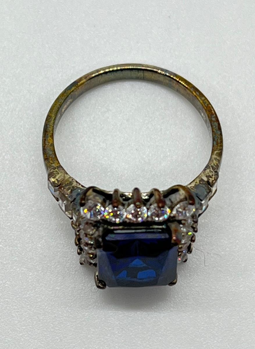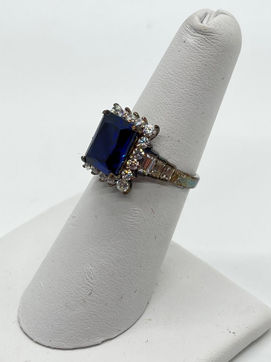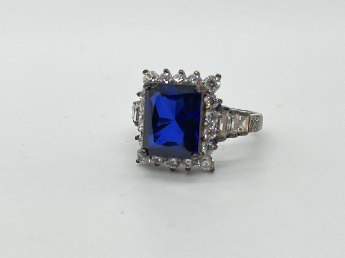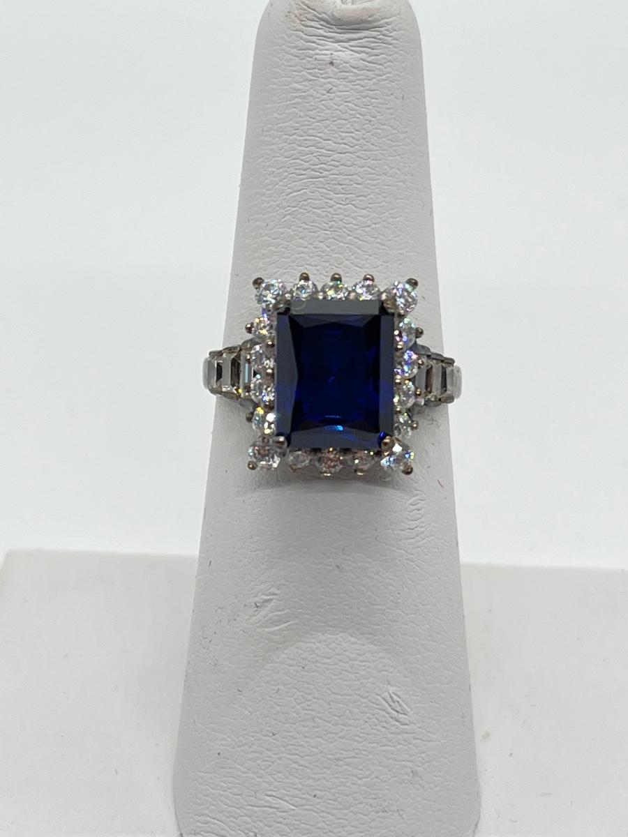 LOT86J: Sterling Diamonique Simulated Sapphire Ring Size 6