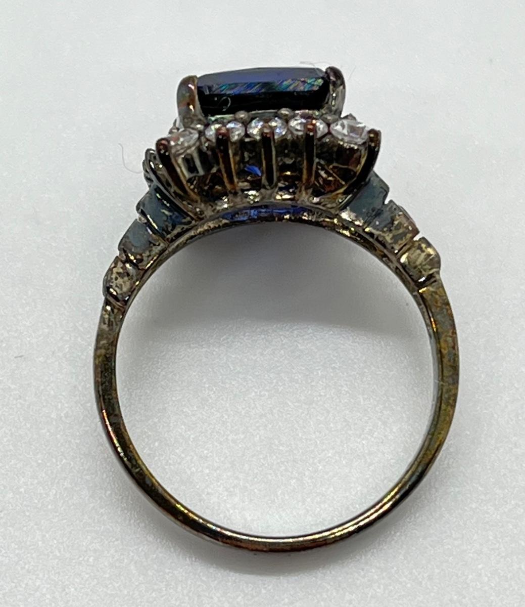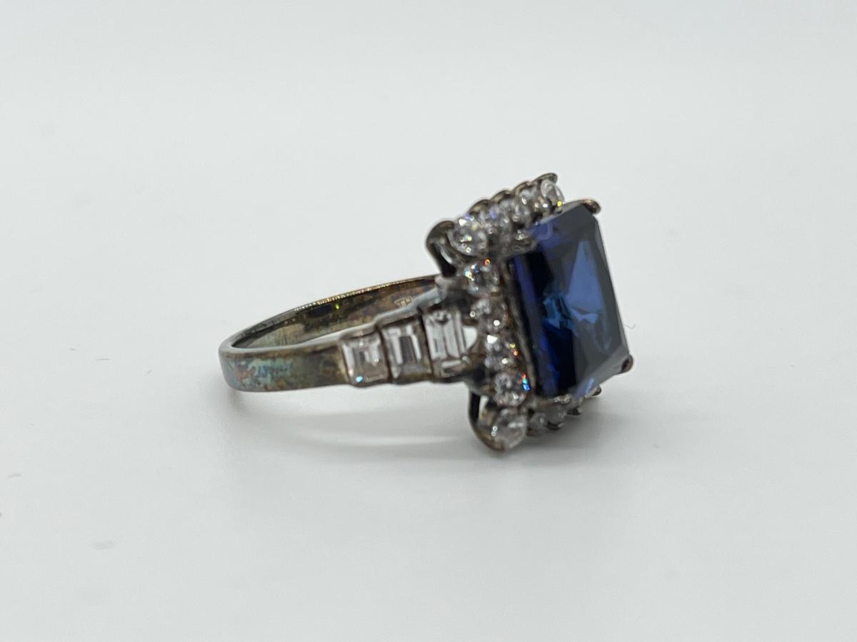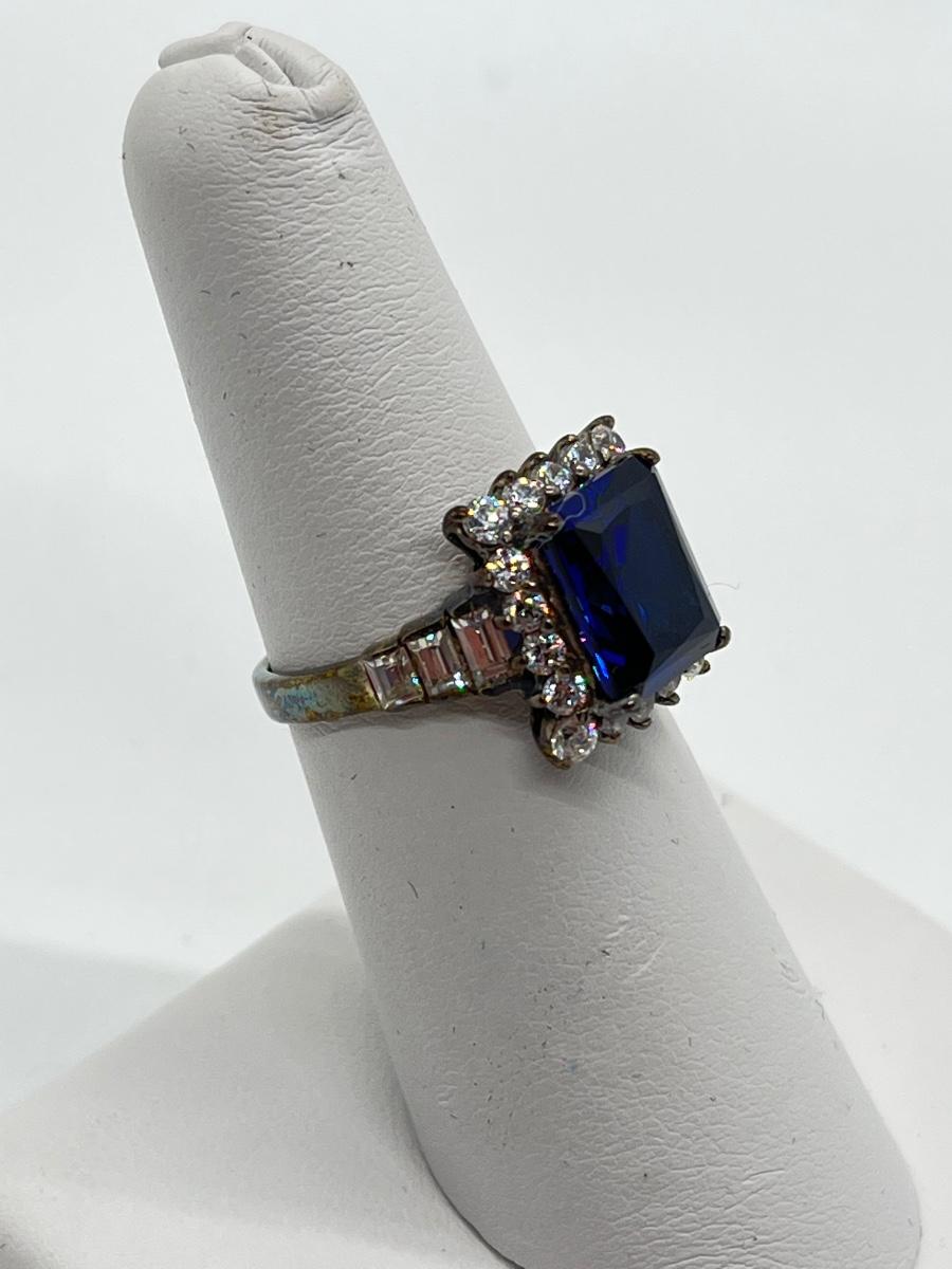 LOT86J: Sterling Diamonique Simulated Sapphire Ring Size 6