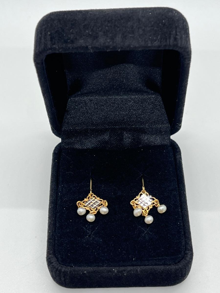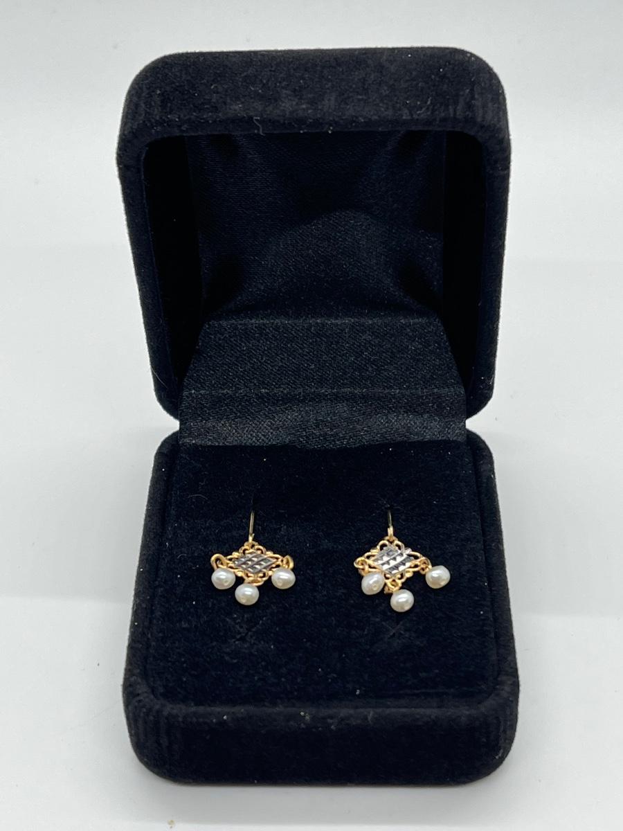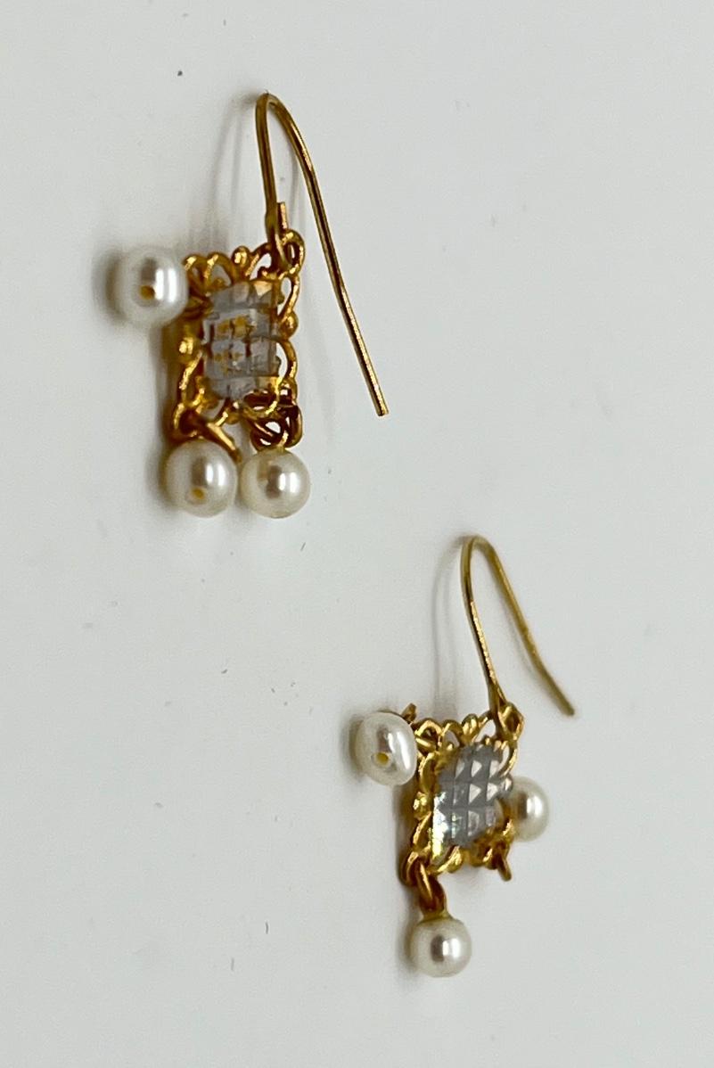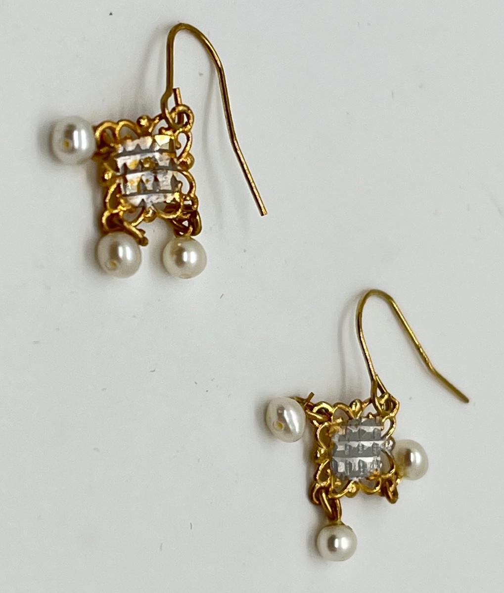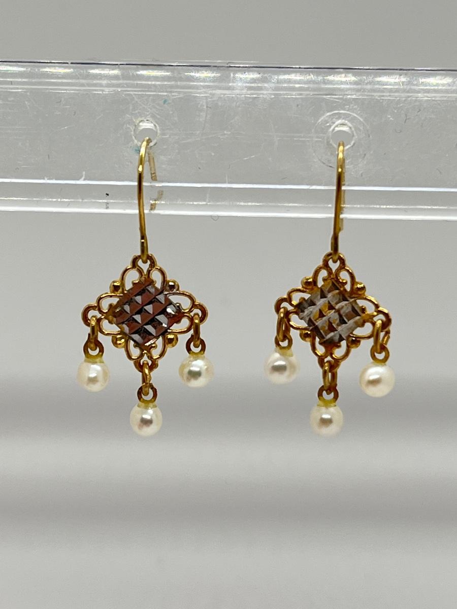 LOT88J: TwoTone Freshwater Cultured Pearl Dangle Earrings