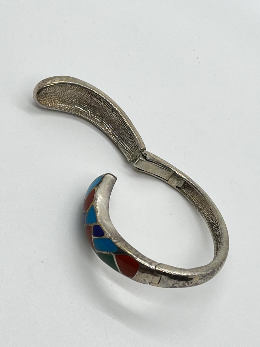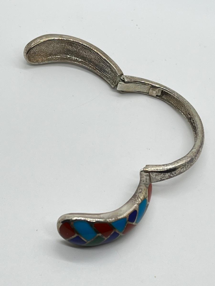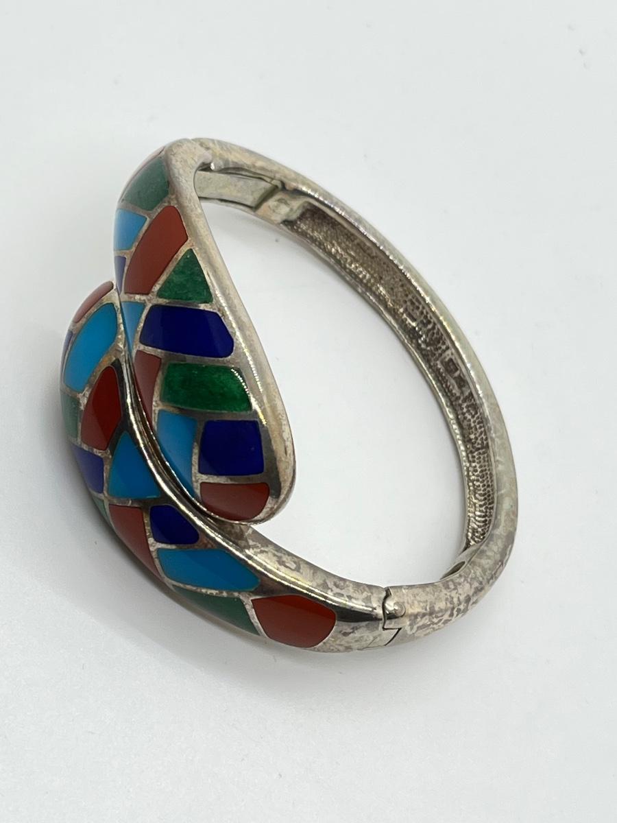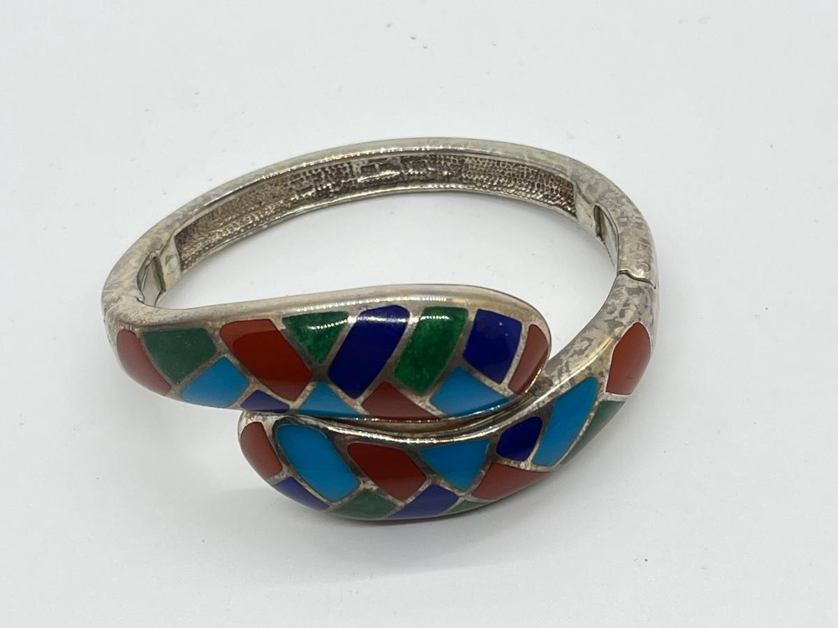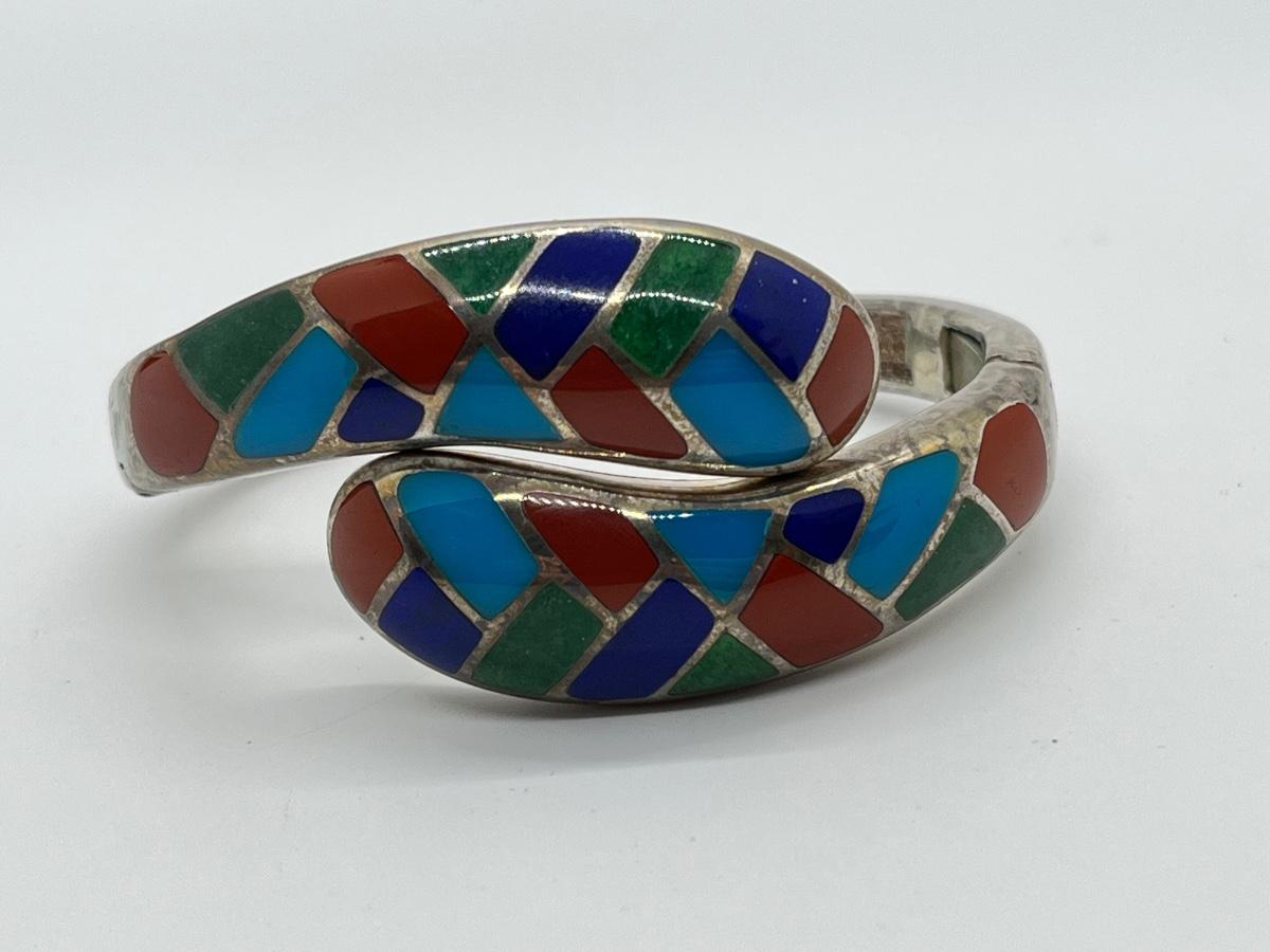 LOT95J: Sterling Multi Color Gemstone Inlay Bangle