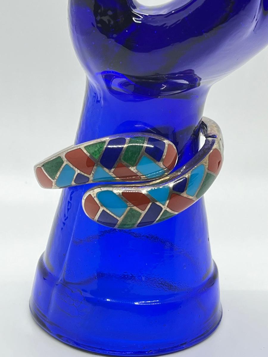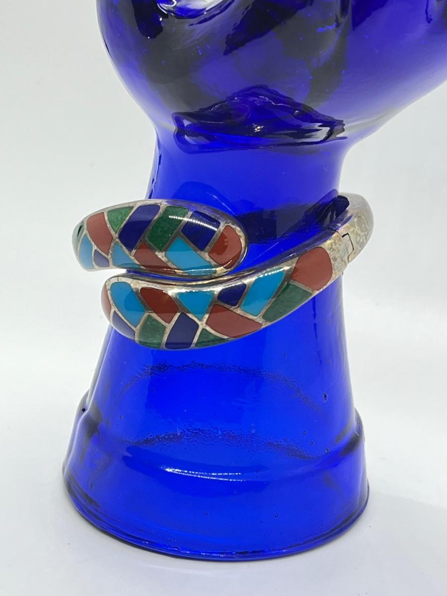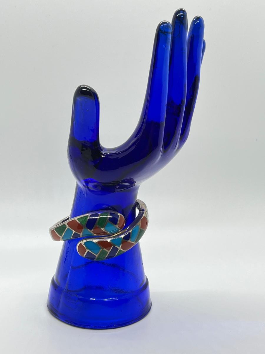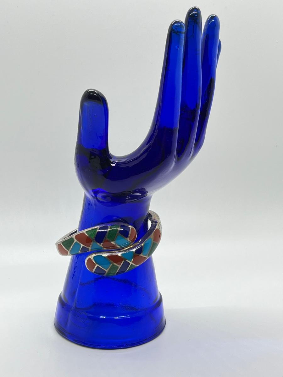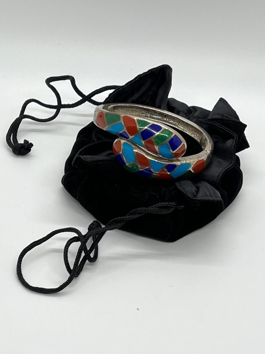 LOT95J: Sterling Multi Color Gemstone Inlay Bangle