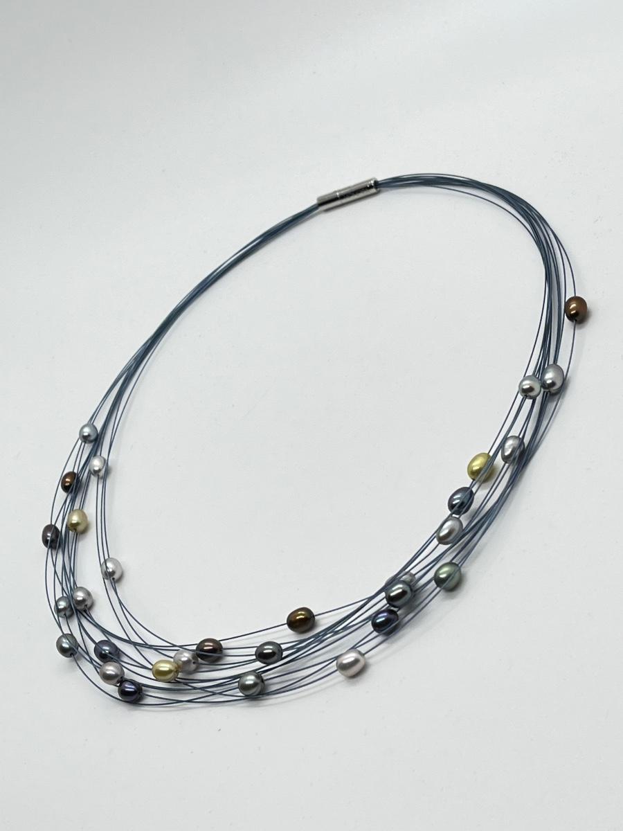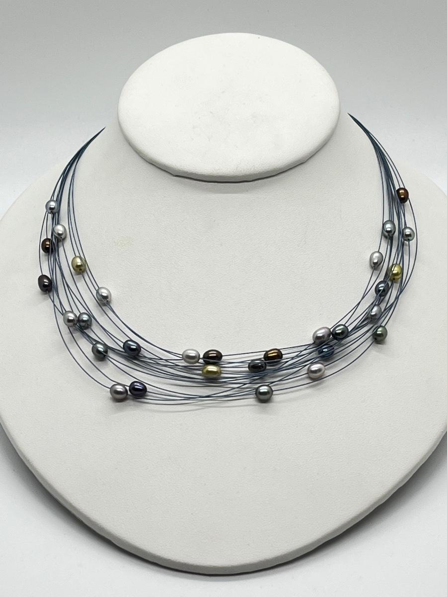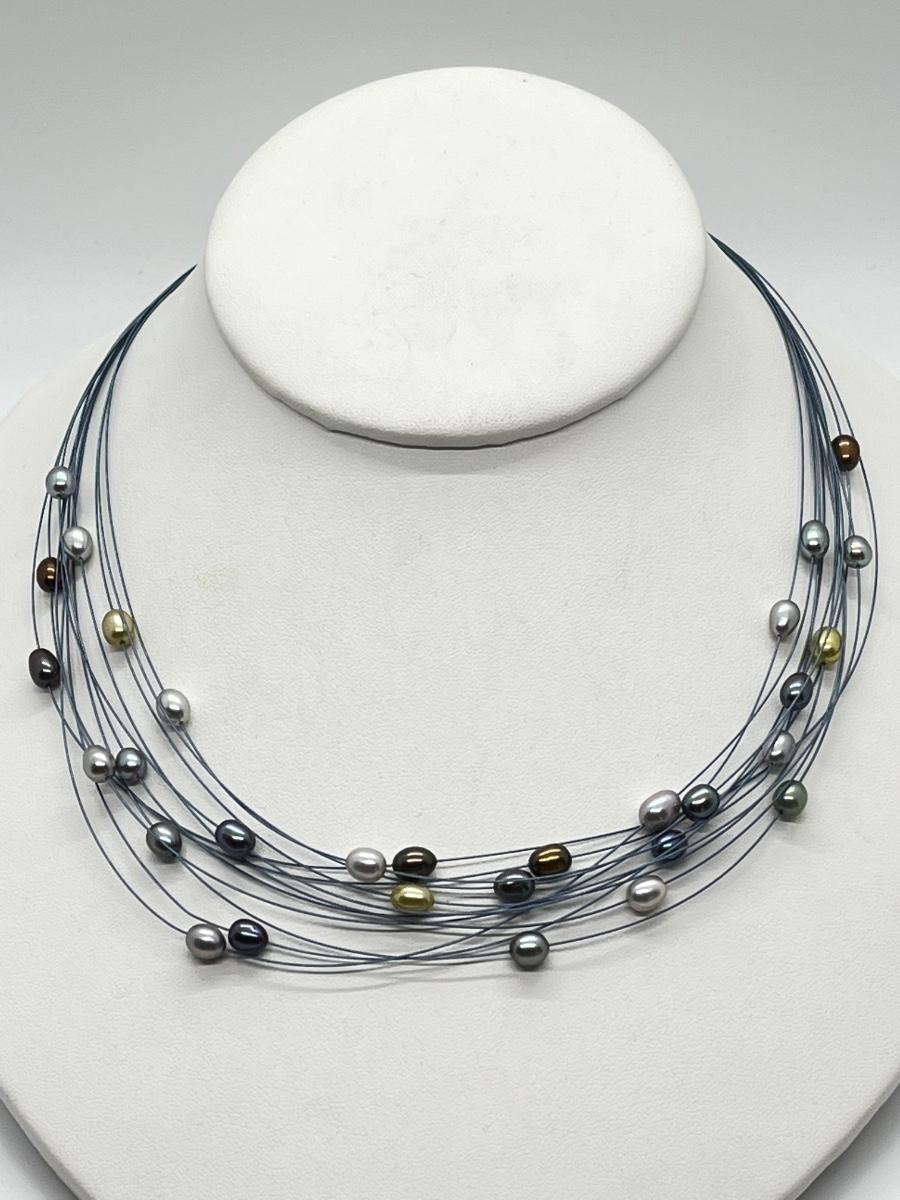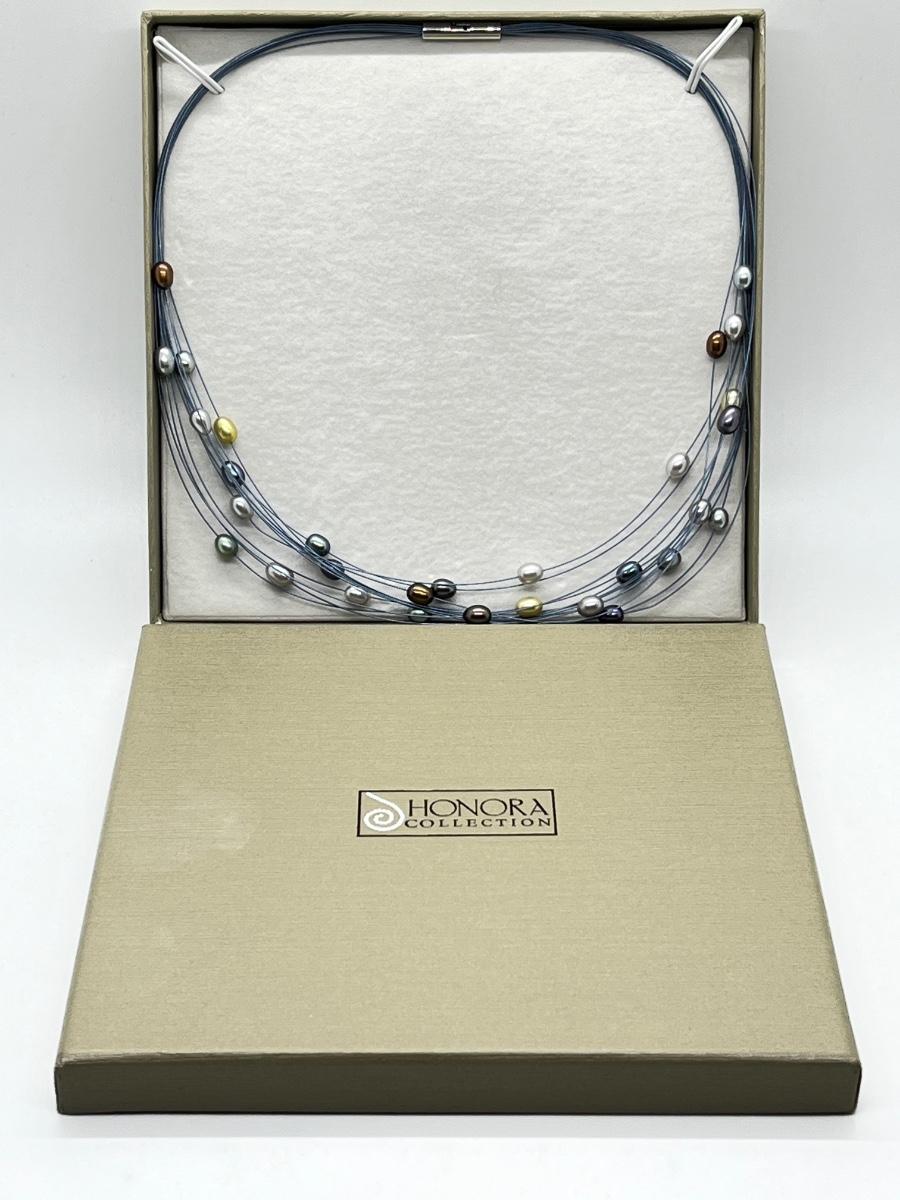 LOT99J: Honora Cultured Freshwater Pearl Multi Color Wire Necklace