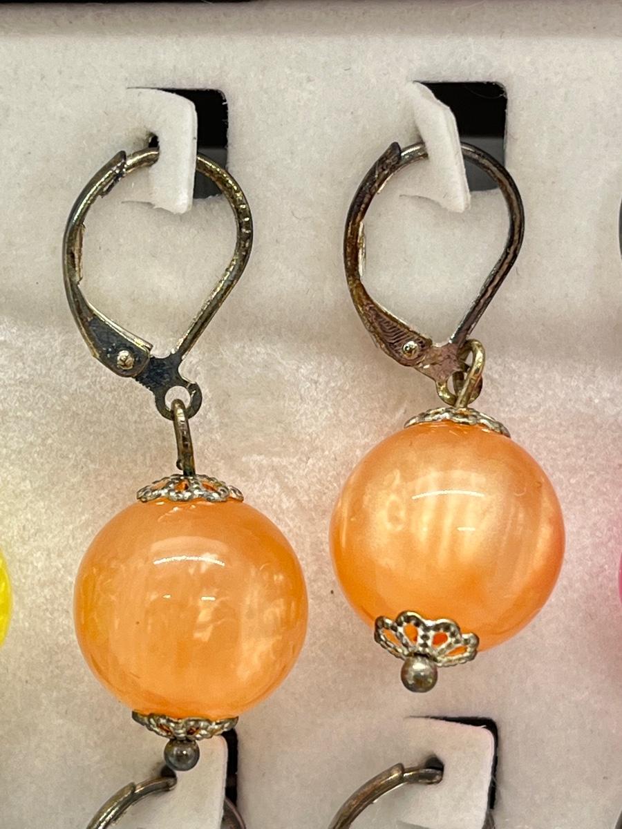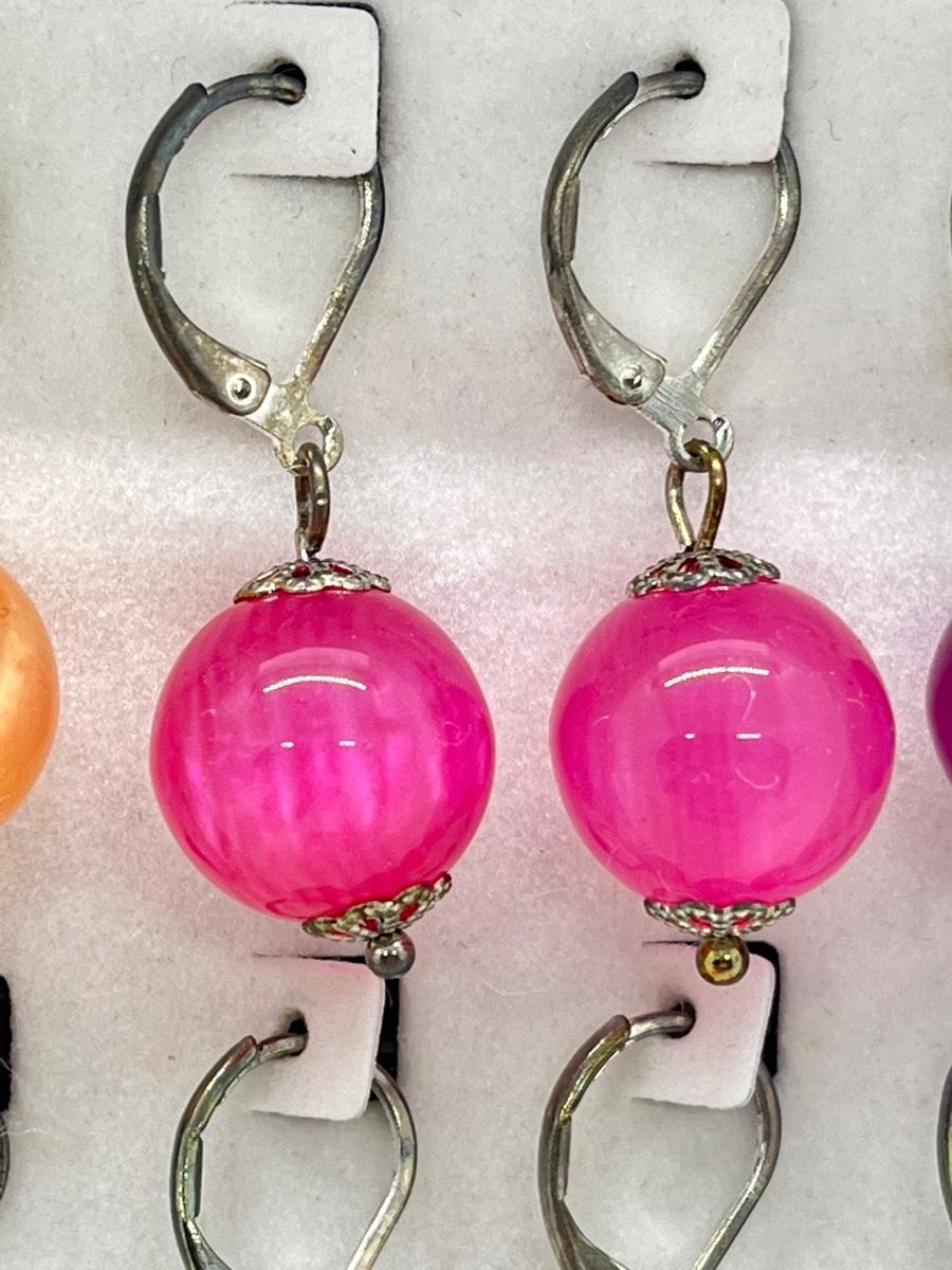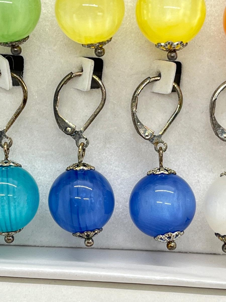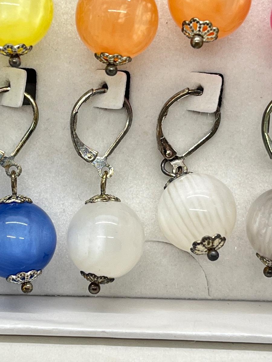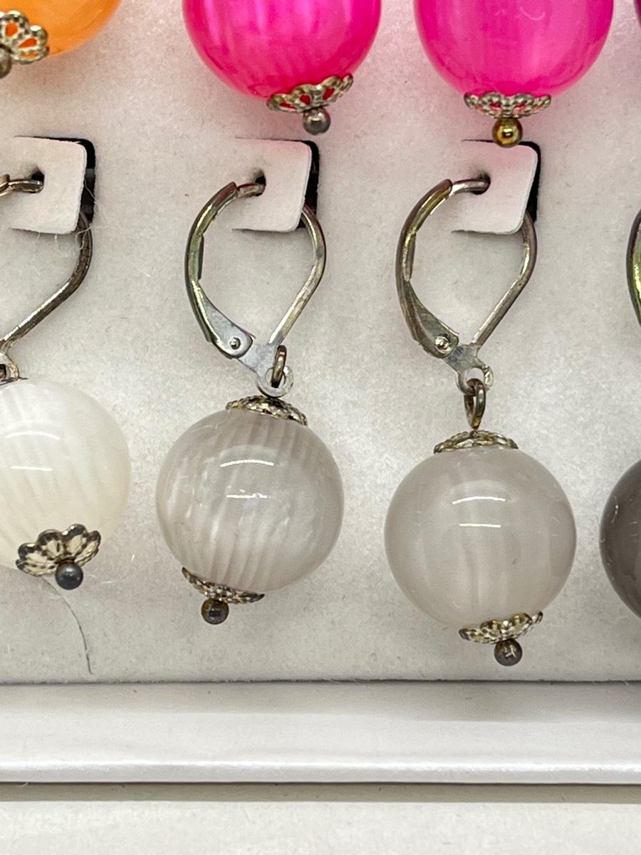 LOT 108J:  QVC Set of 10 Marbleized Bead Lever Back Dangle Earrings Silvertone