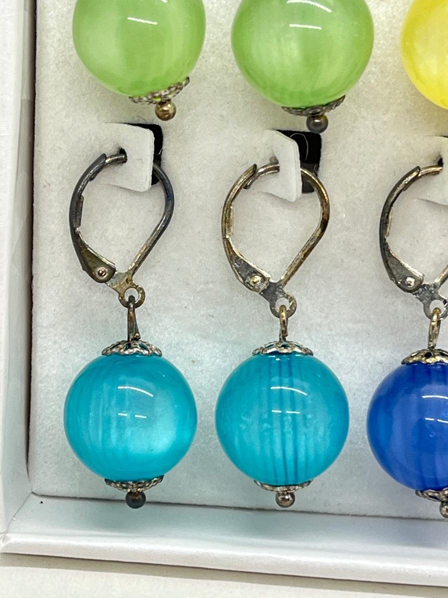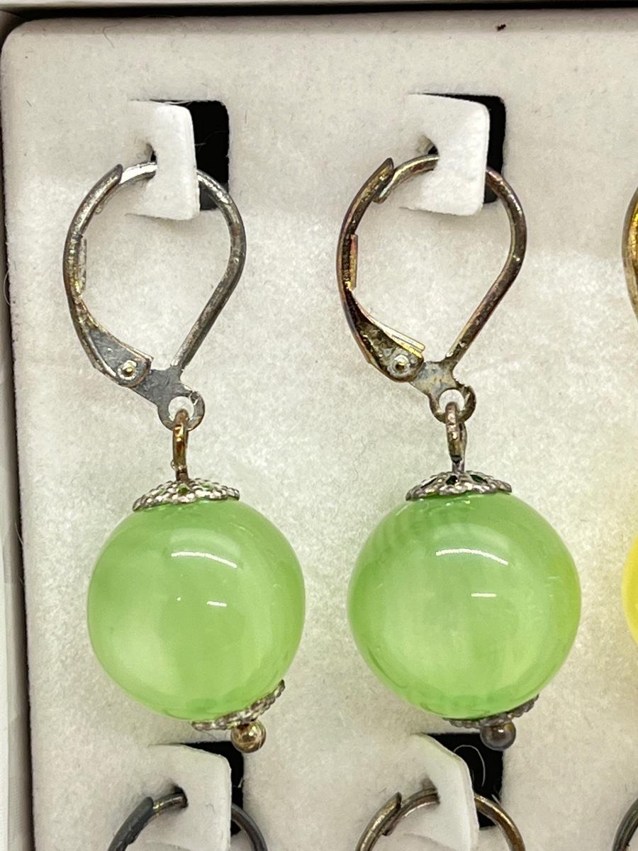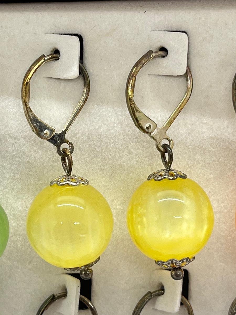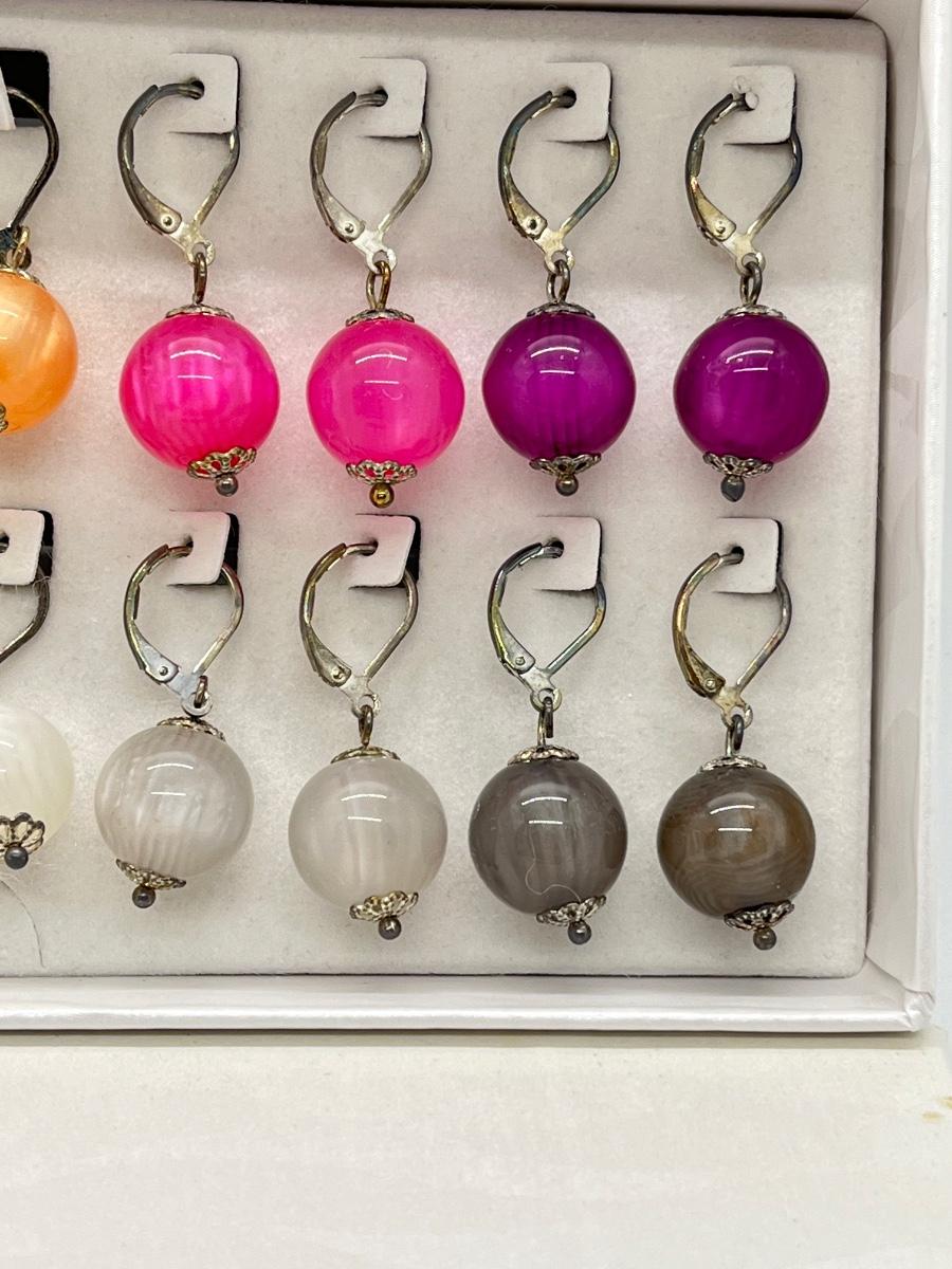 LOT 108J:  QVC Set of 10 Marbleized Bead Lever Back Dangle Earrings Silvertone