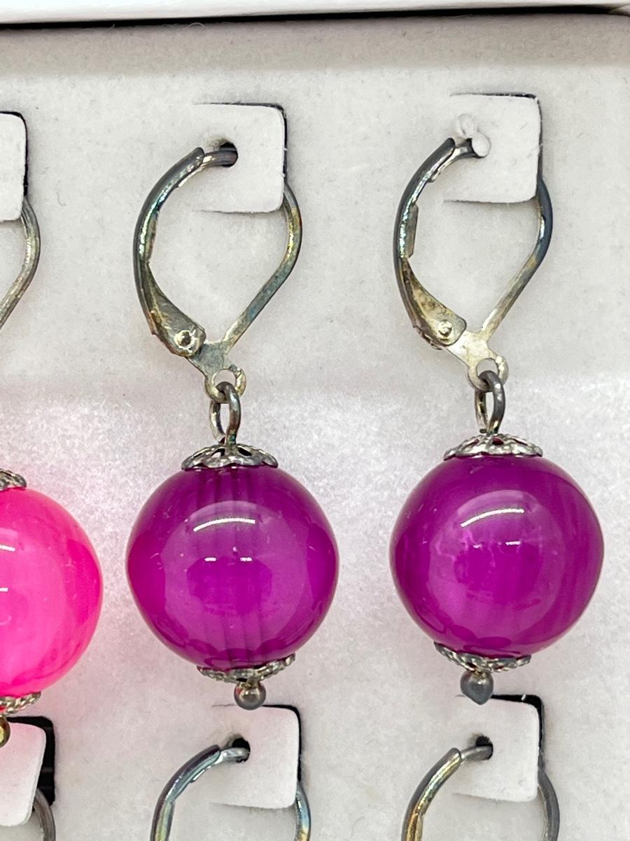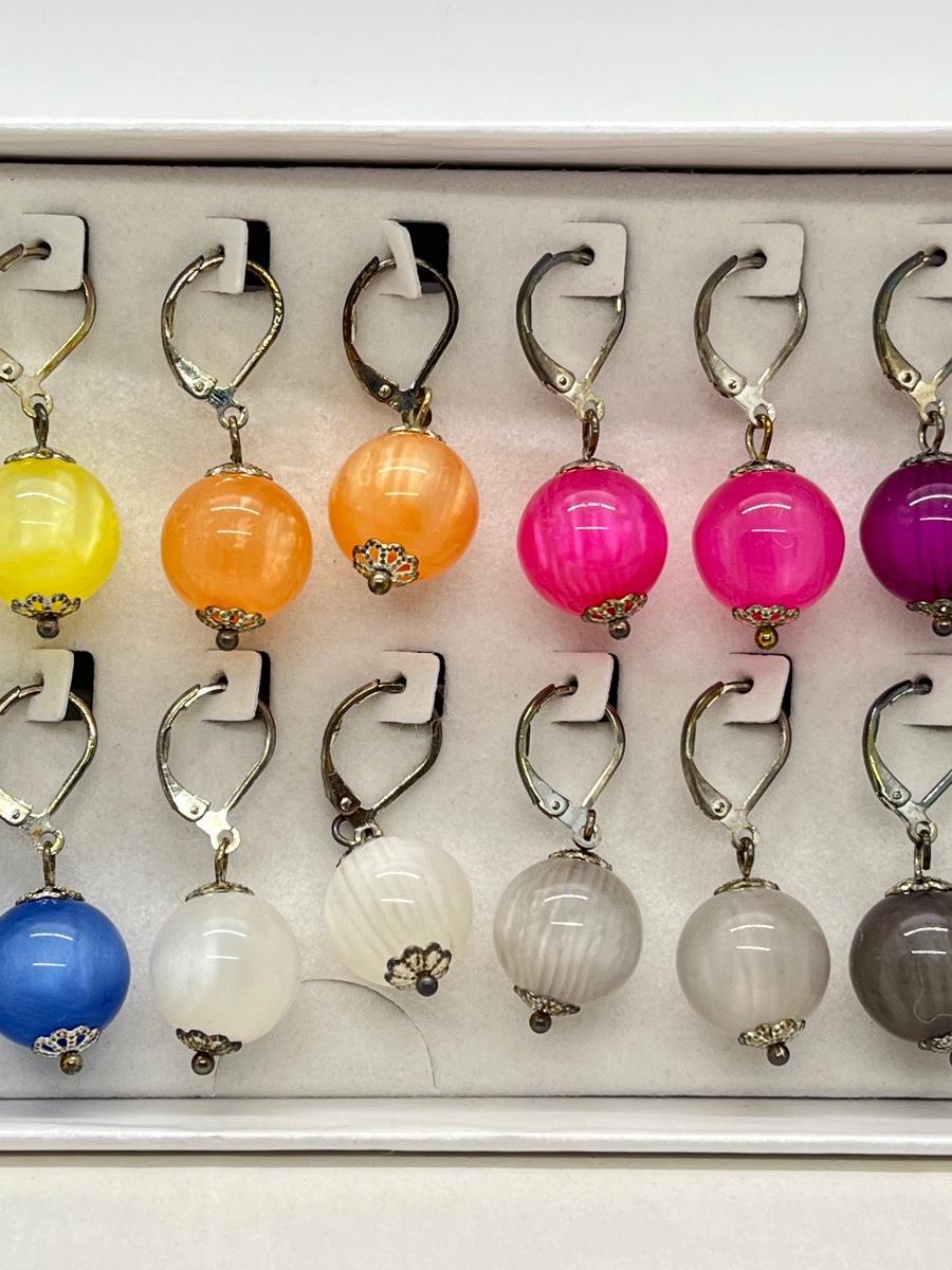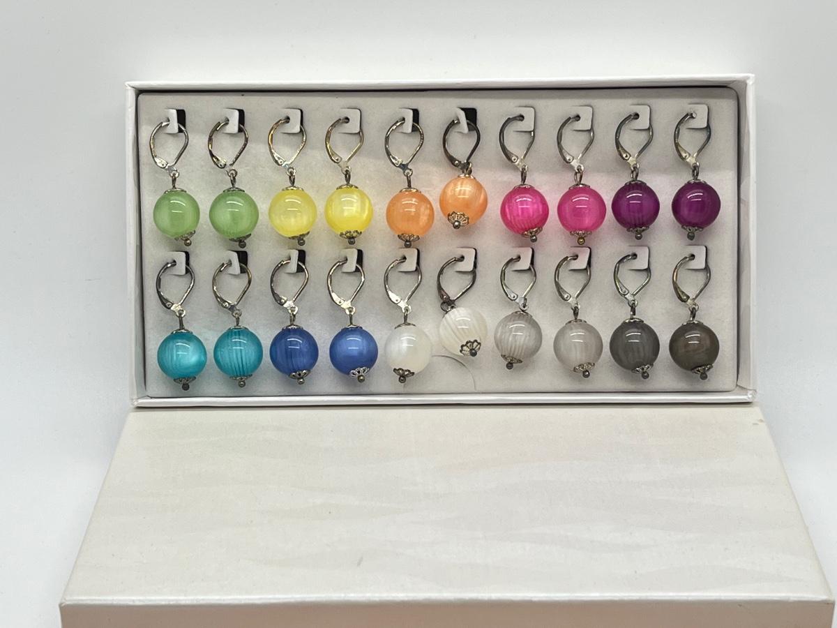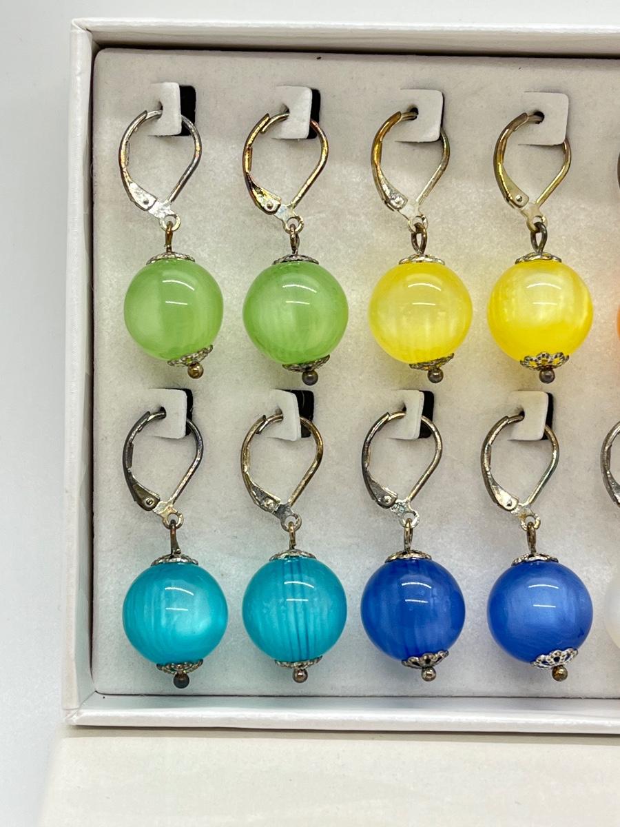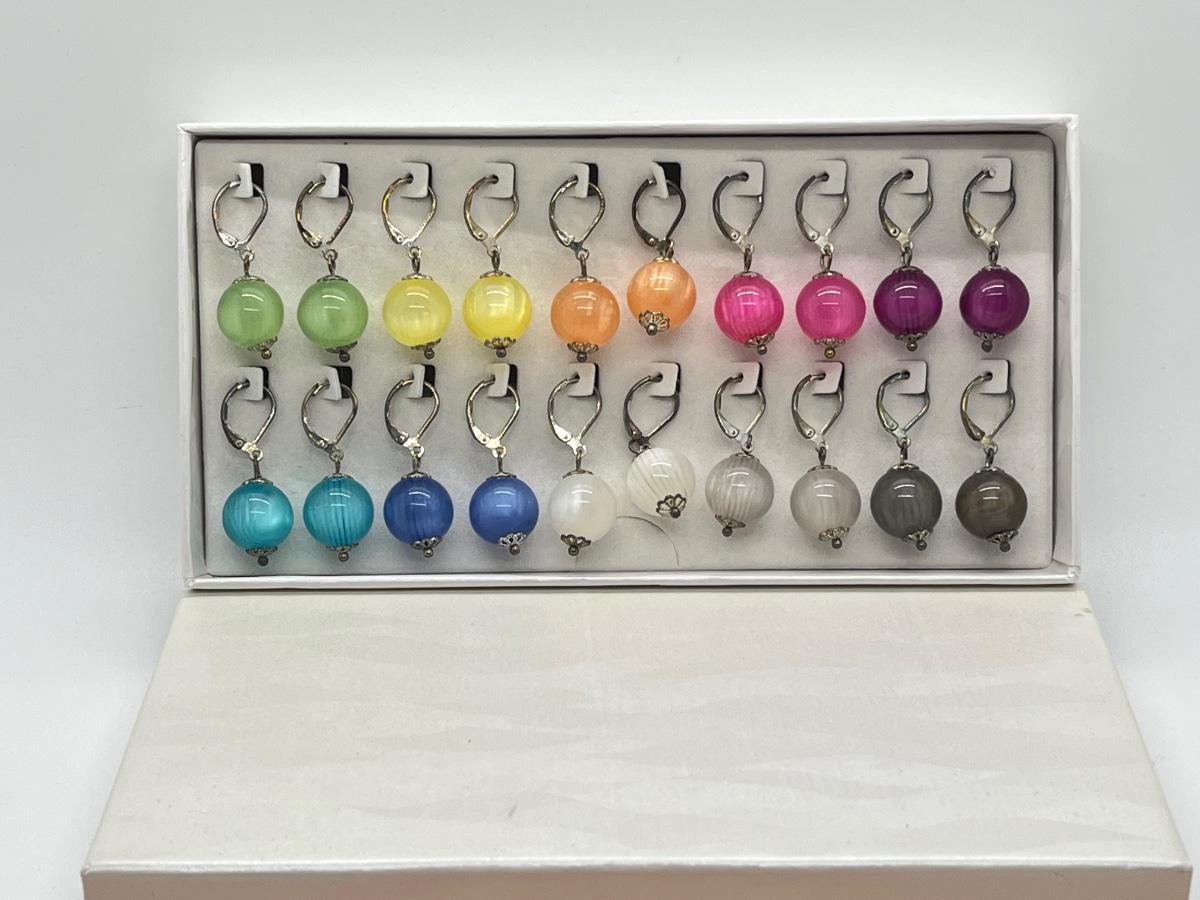 LOT 108J:  QVC Set of 10 Marbleized Bead Lever Back Dangle Earrings Silvertone