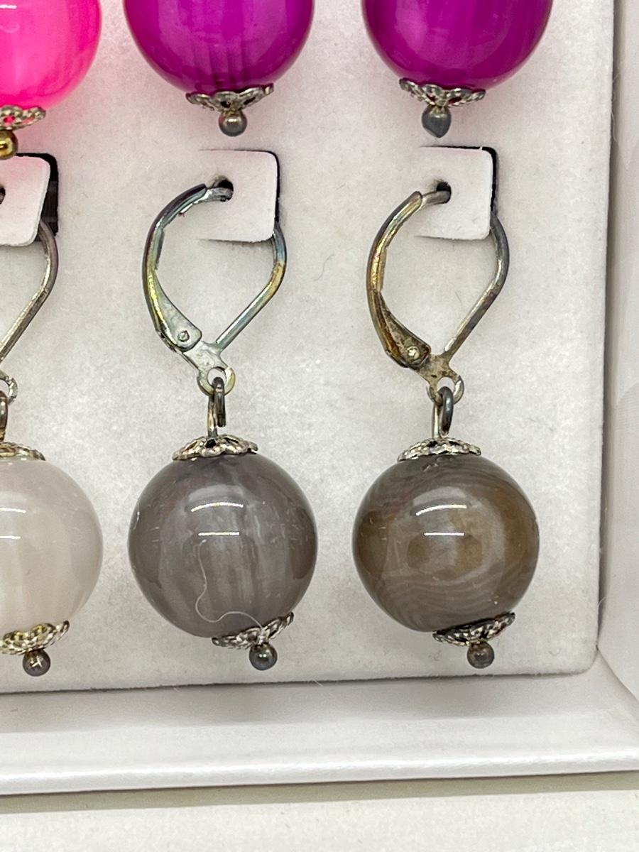 LOT 108J: QVC Set of 10 Marbleized Bead Lever Back Dangle Earrings Silvertone