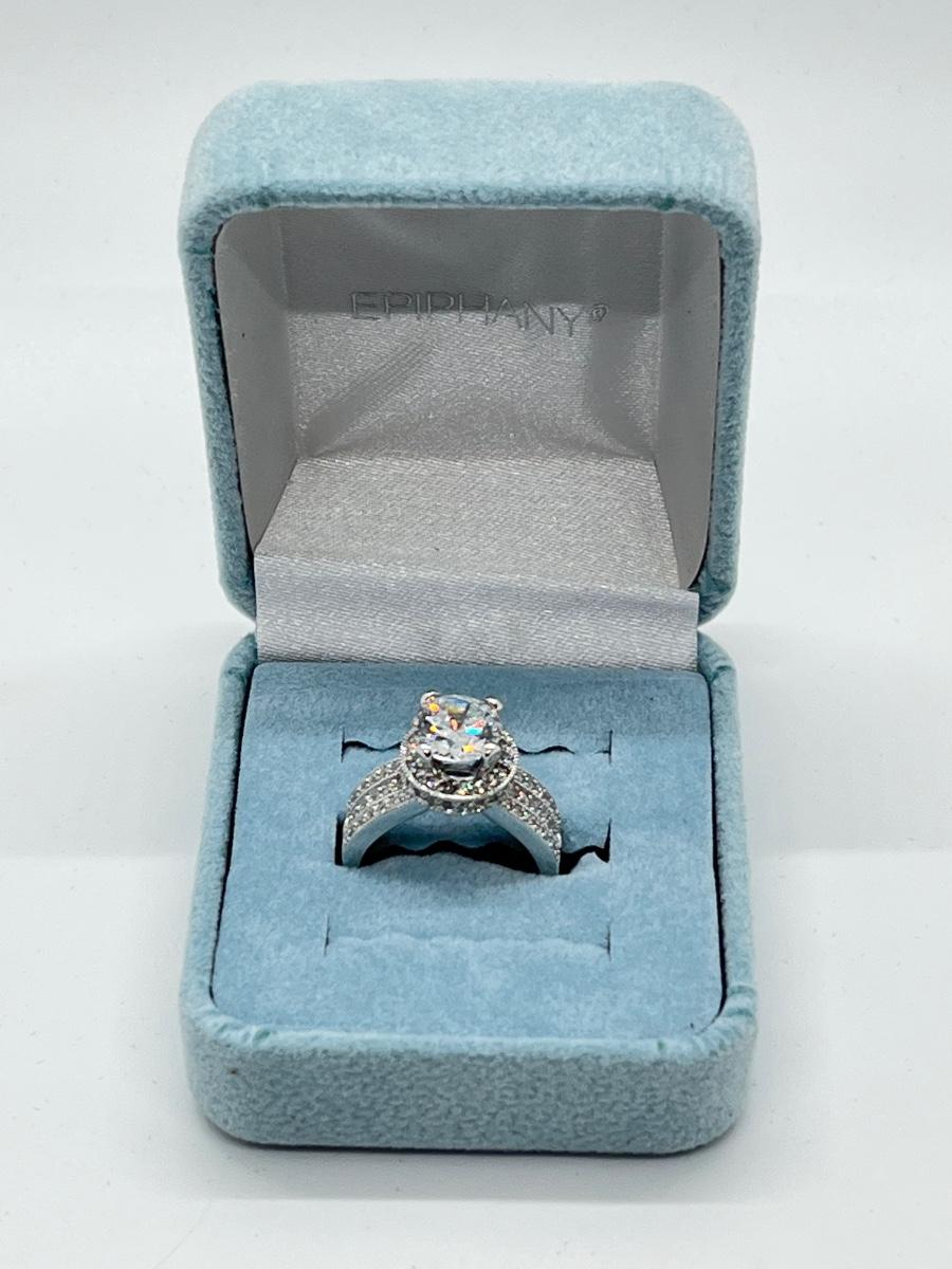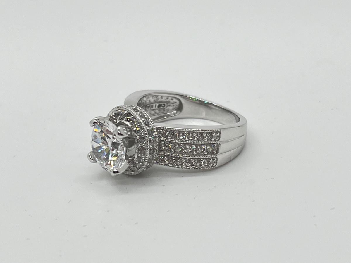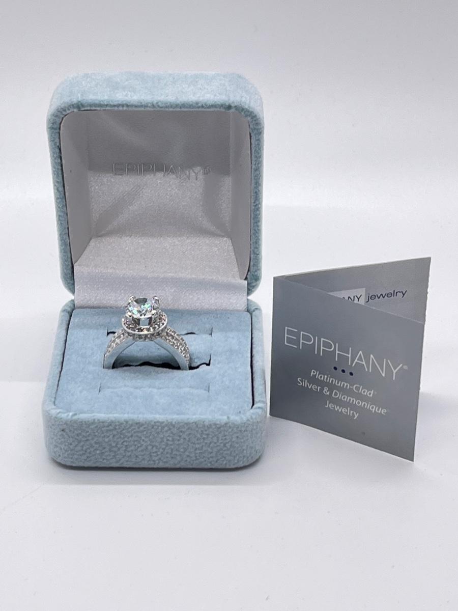 LOT 109J: Epiphany Platinum Clad Diamonique Round Stone Ring Sz6