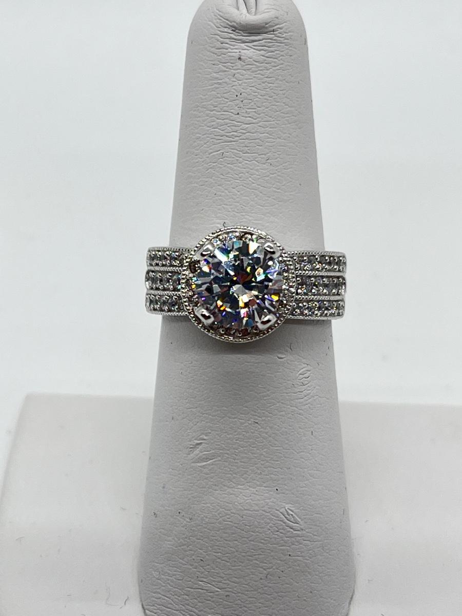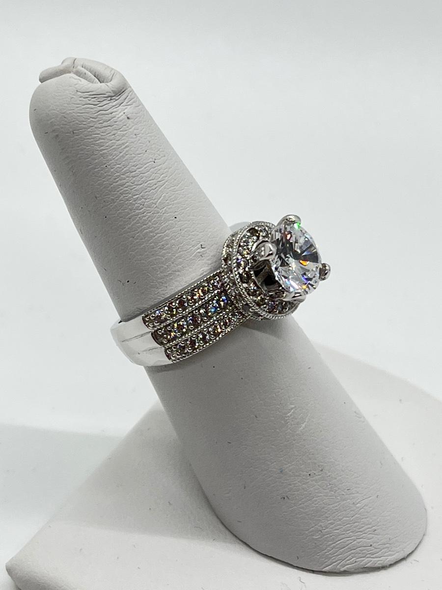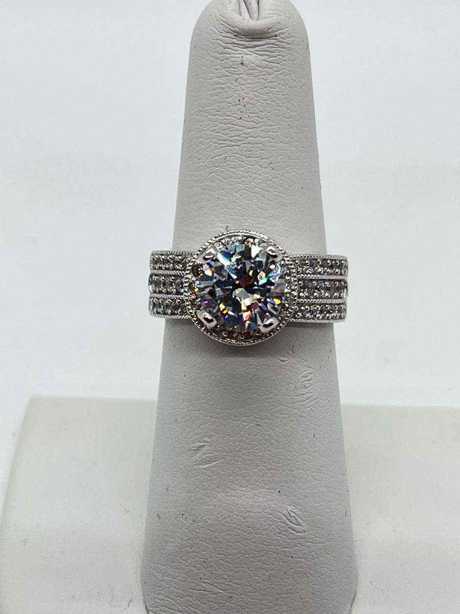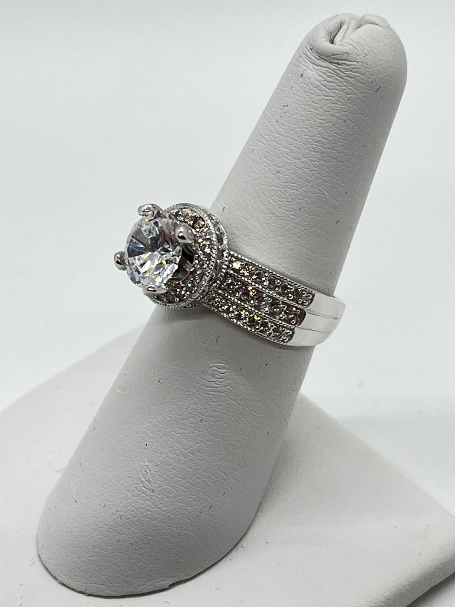 LOT 109J: Epiphany Platinum Clad Diamonique Round Stone Ring Sz6