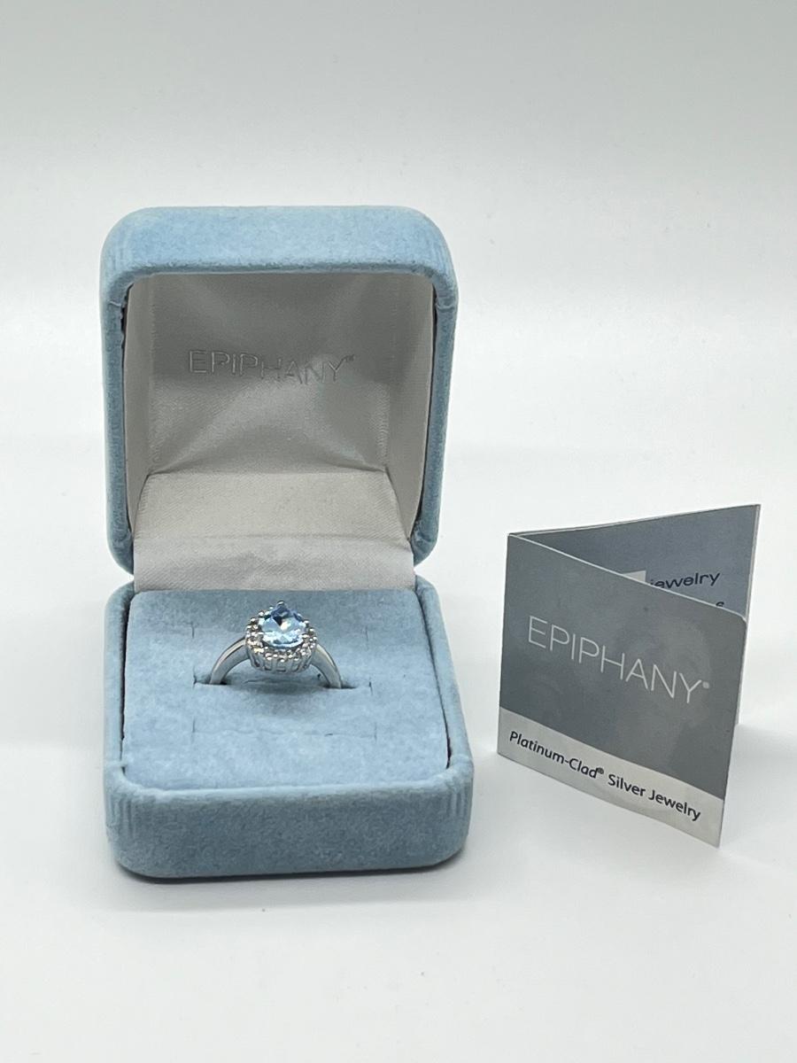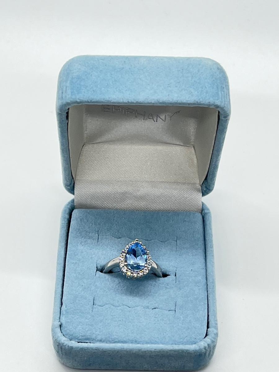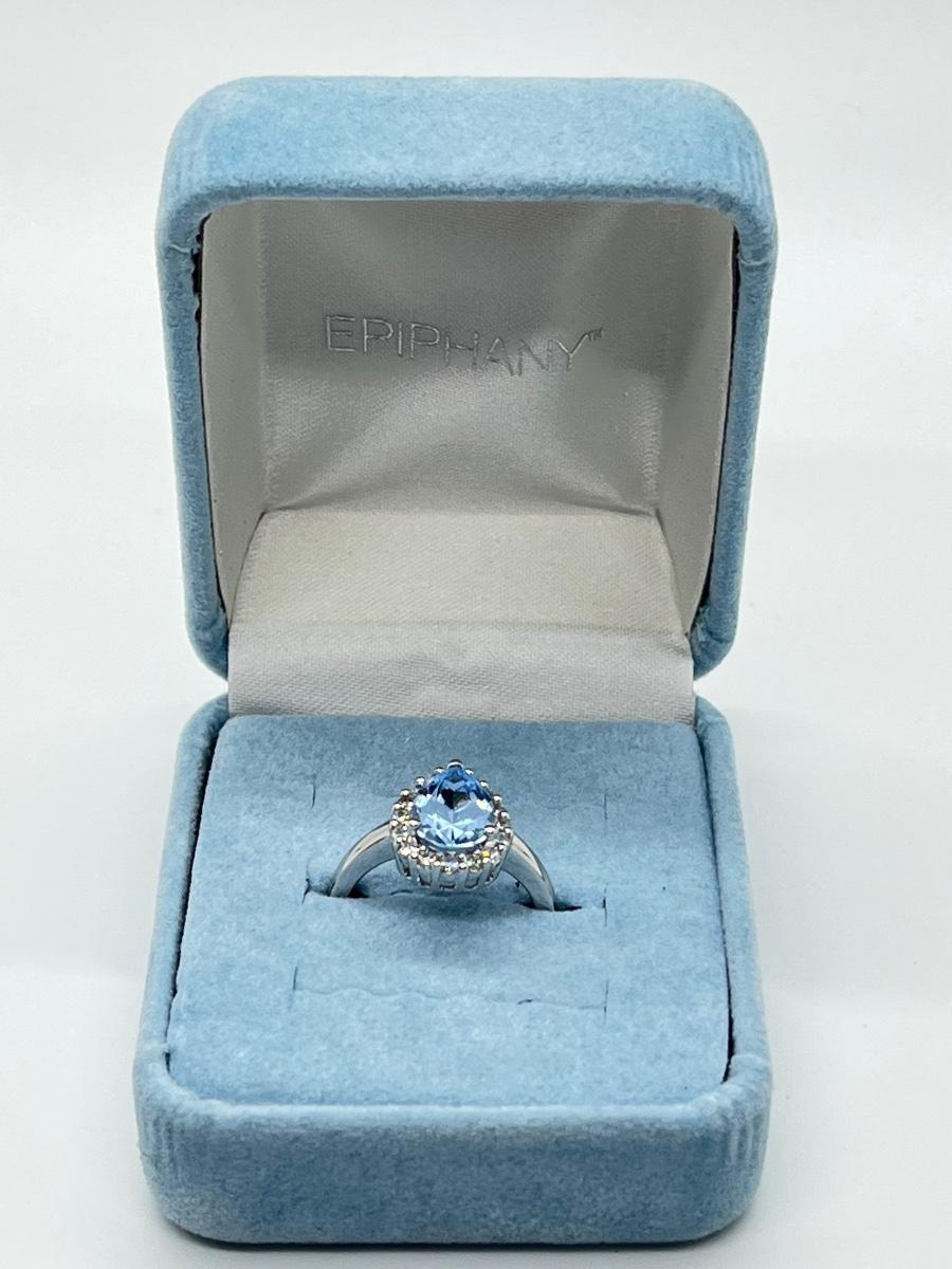LOT 111J:  Epiphany Platinum Clad Diamonique 2.30ct tw Blue Pear Ring Sz6