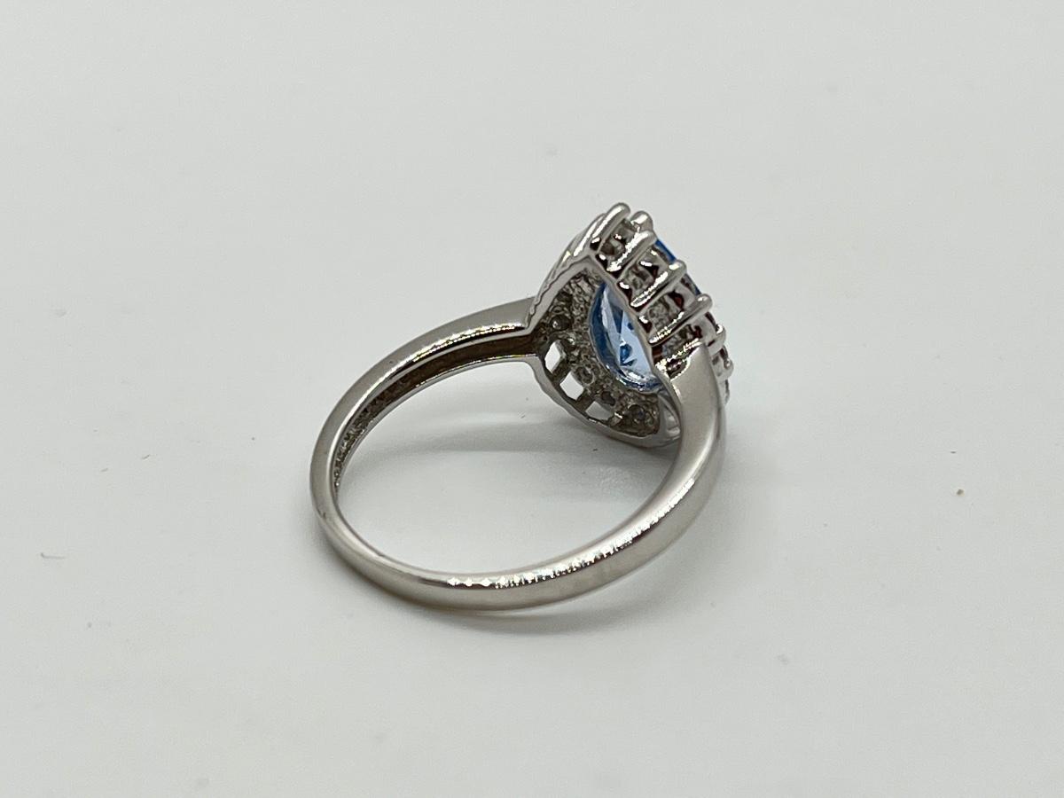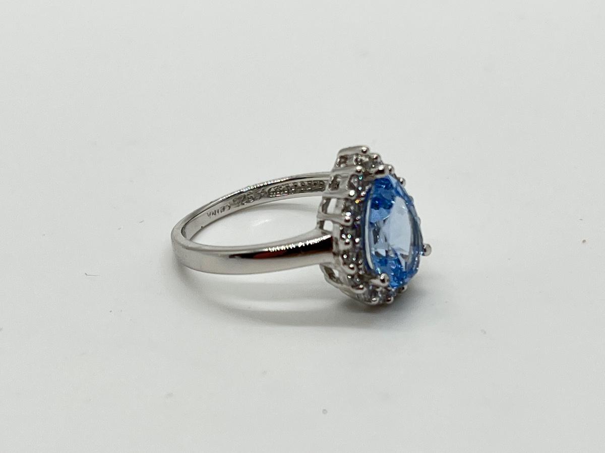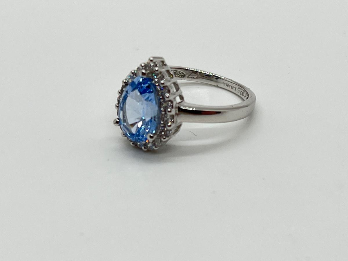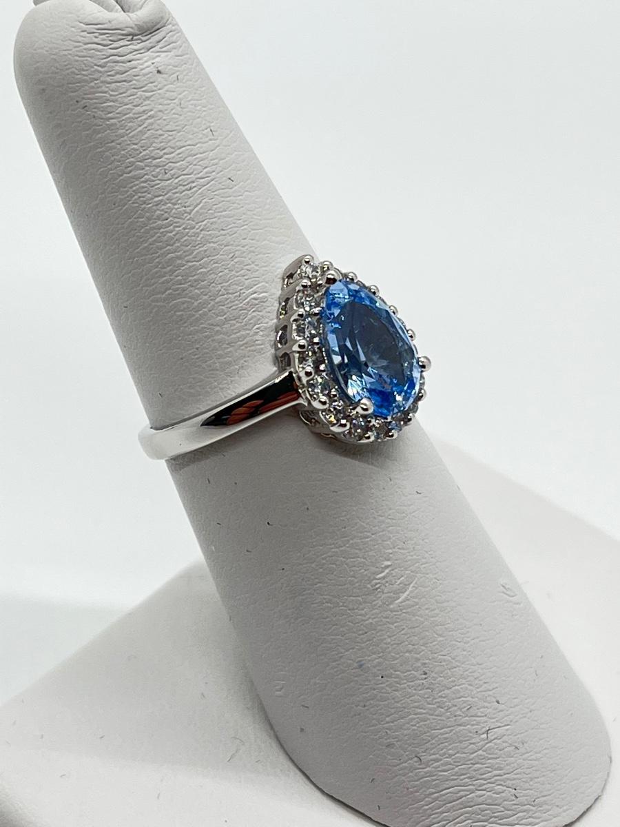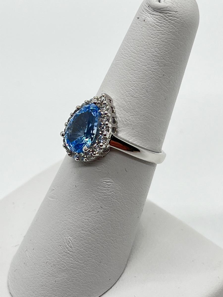 LOT 111J: Epiphany Platinum Clad Diamonique 2.30ct tw Blue Pear Ring Sz6