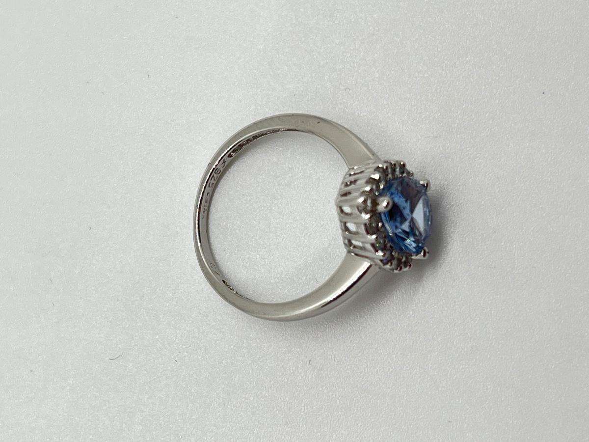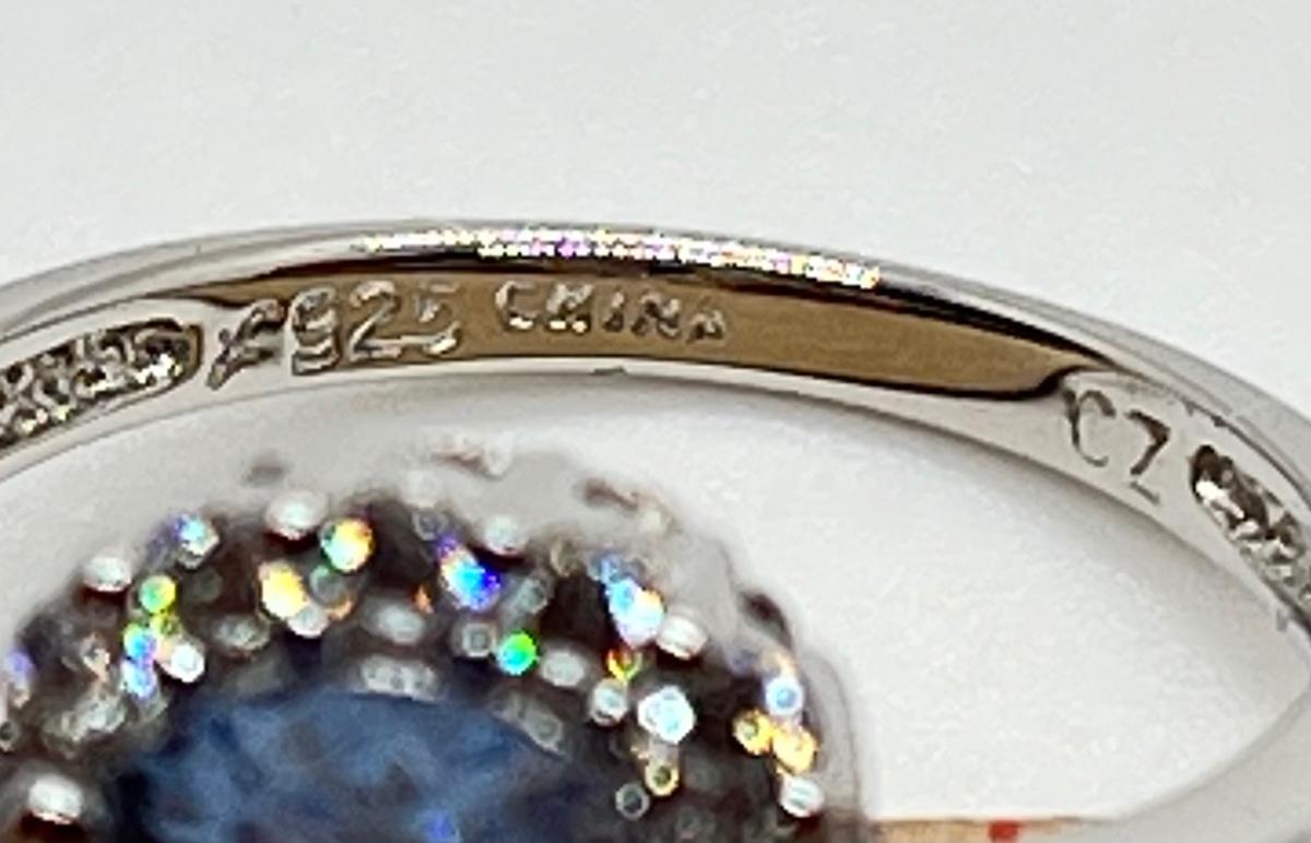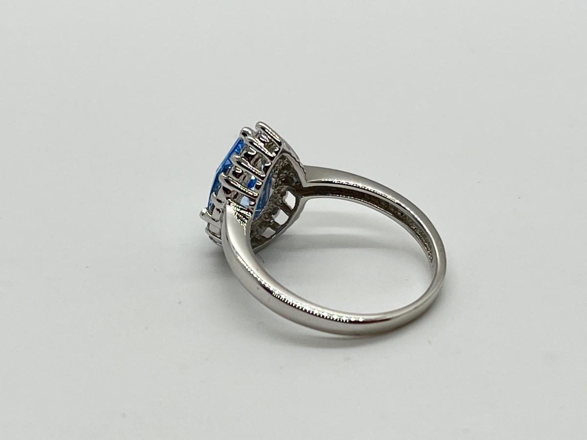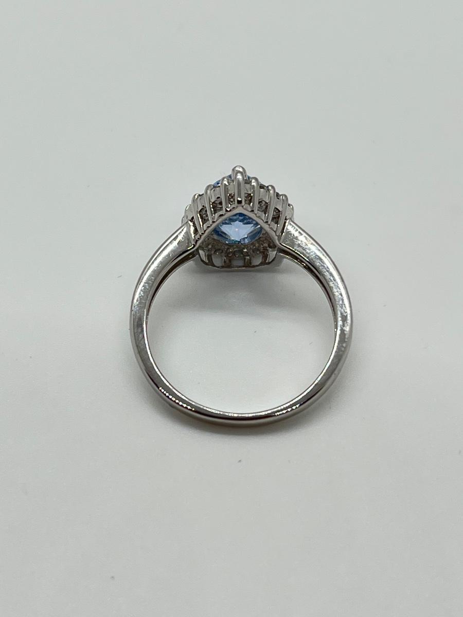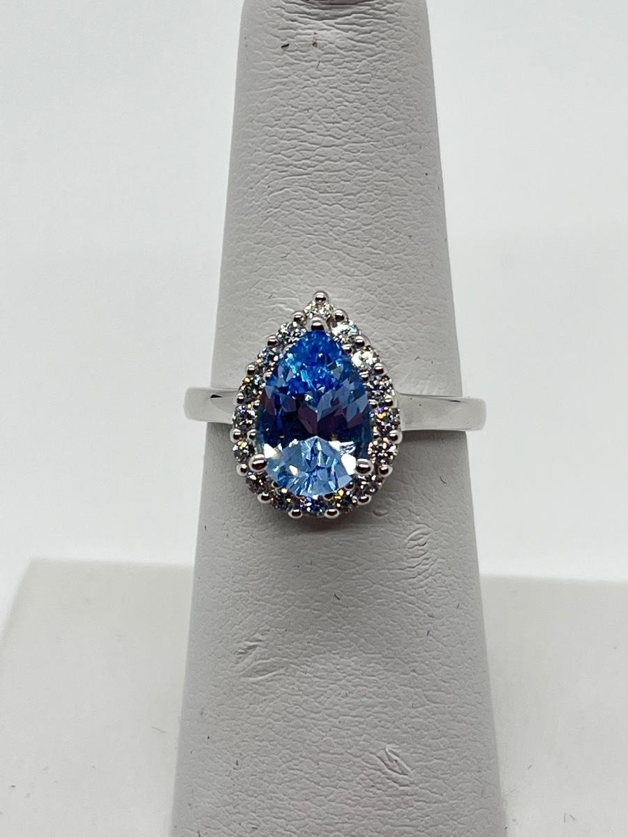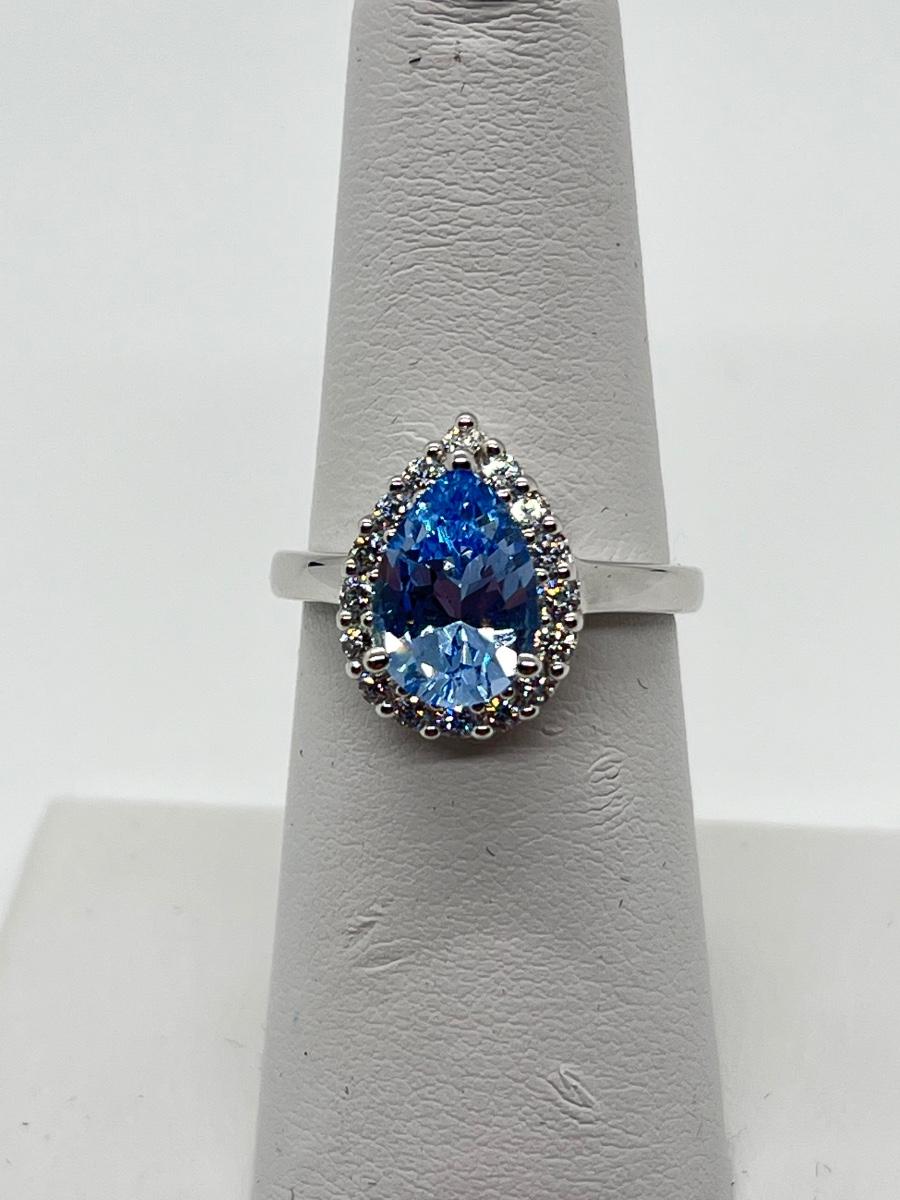 LOT 111J: Epiphany Platinum Clad Diamonique 2.30ct tw Blue Pear Ring Sz6