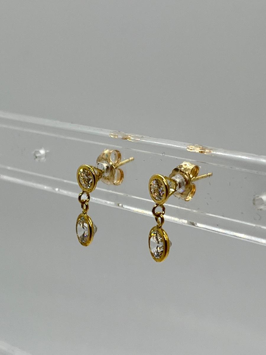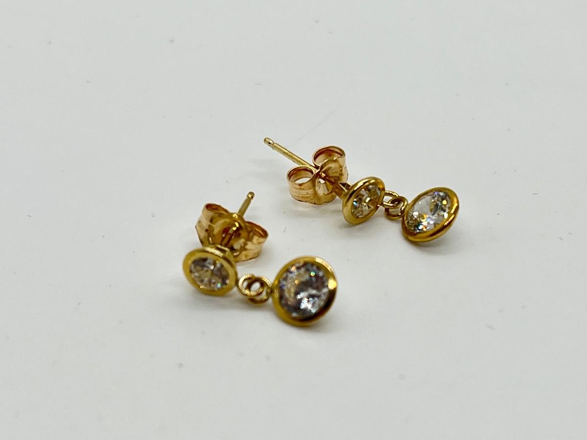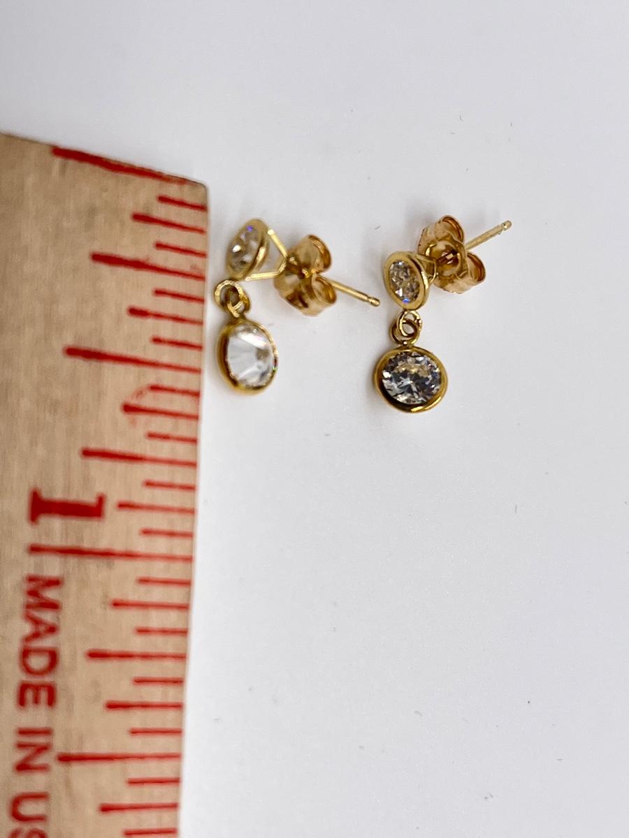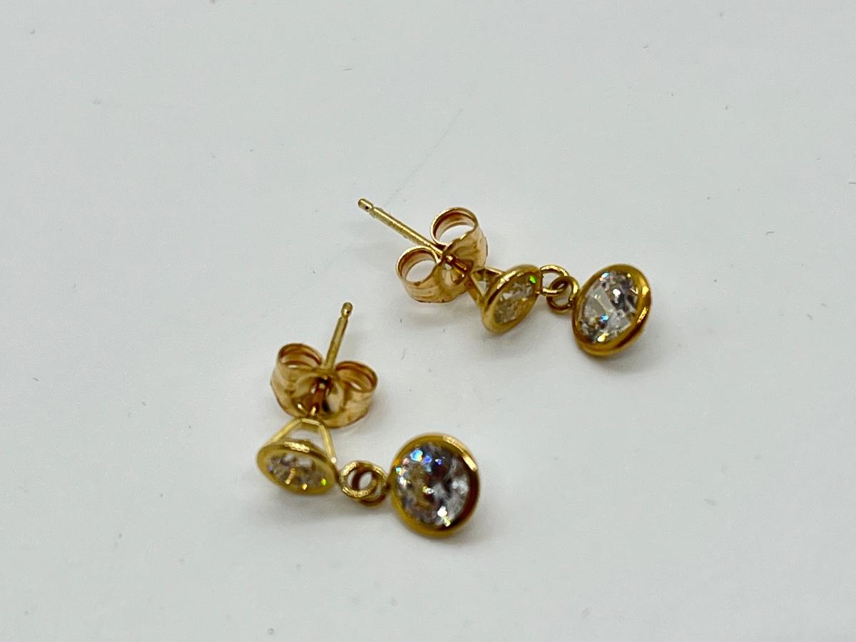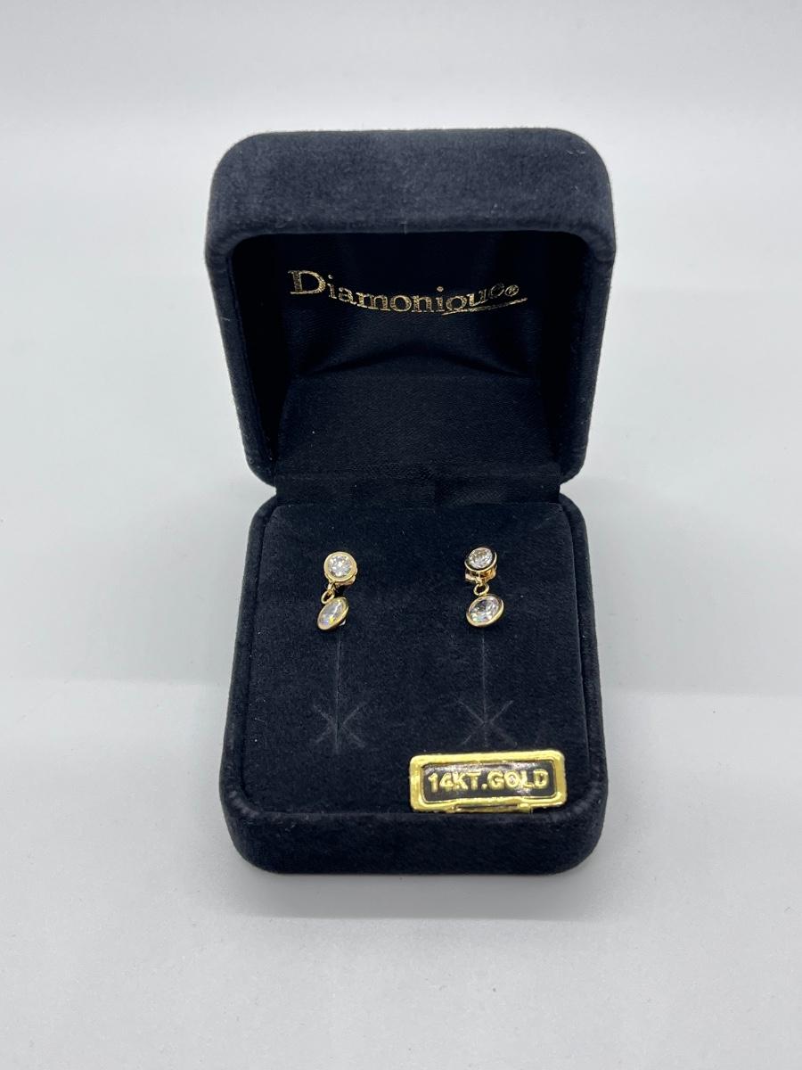 LOT 113J: QVC Diamonique 1.50 ct. tw. Round Bezel Dangle Pierced Earrings, 14K