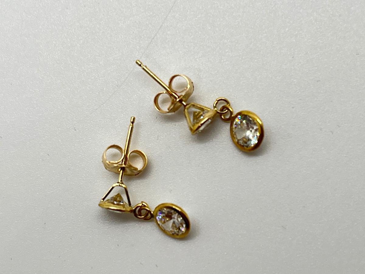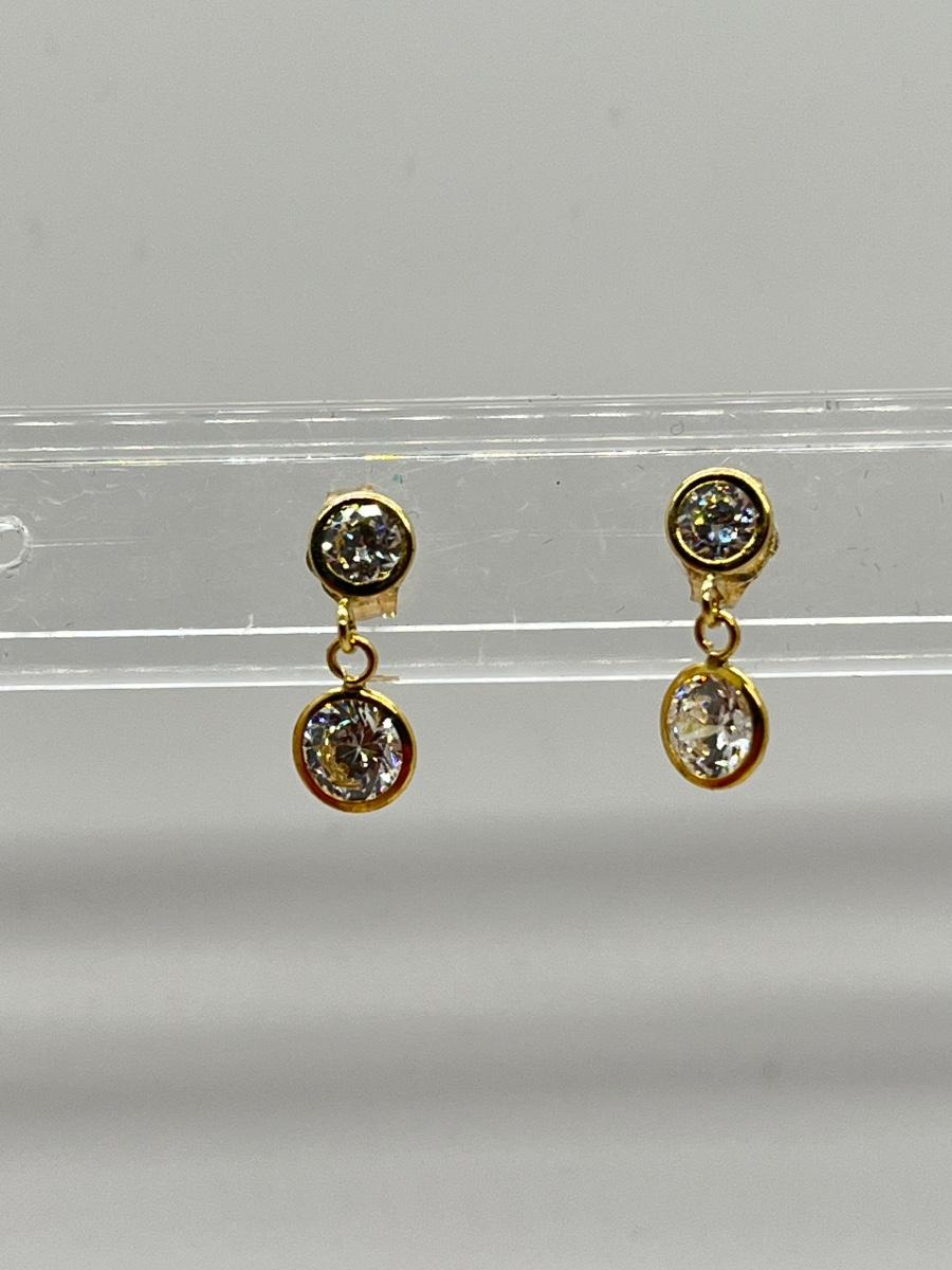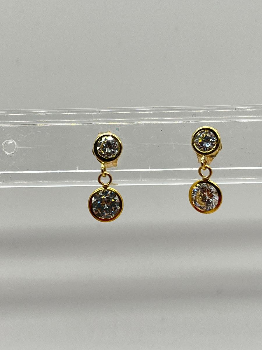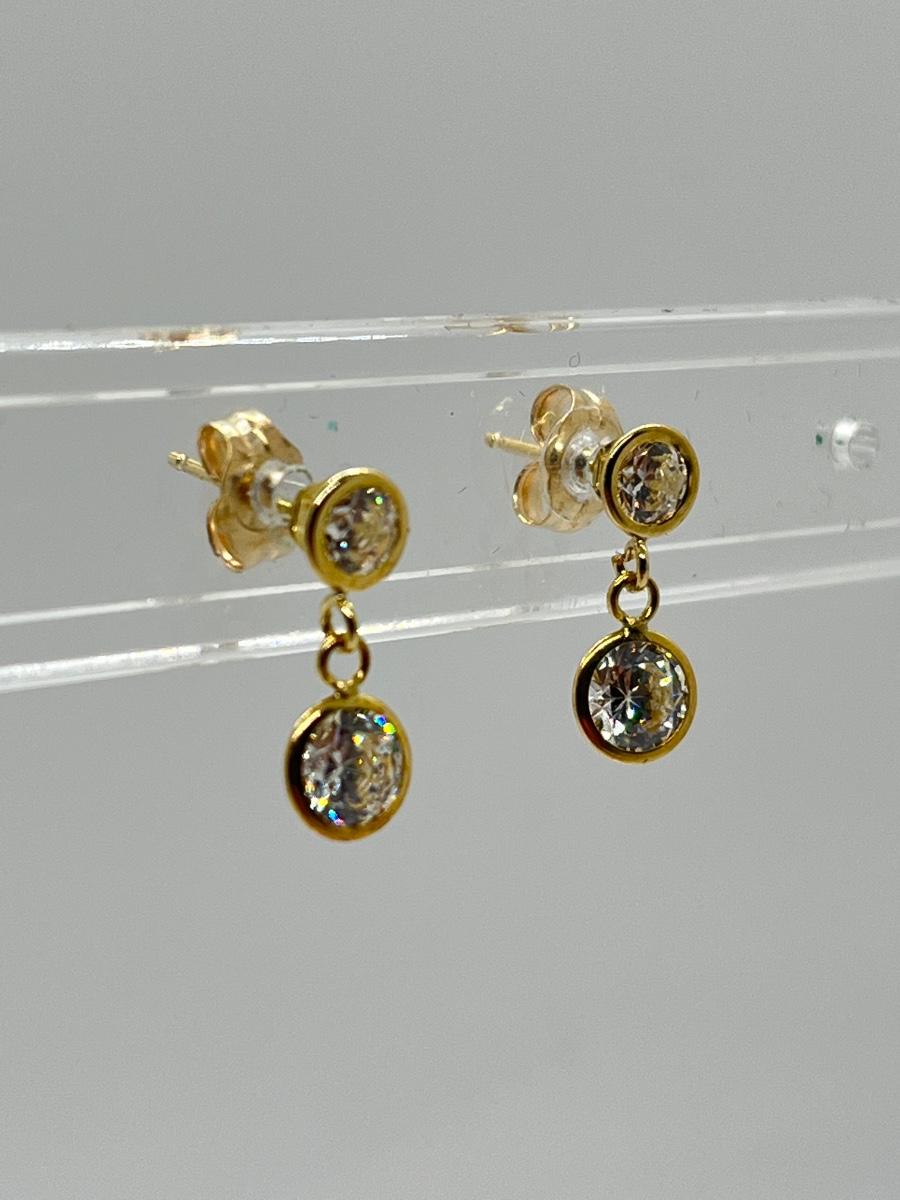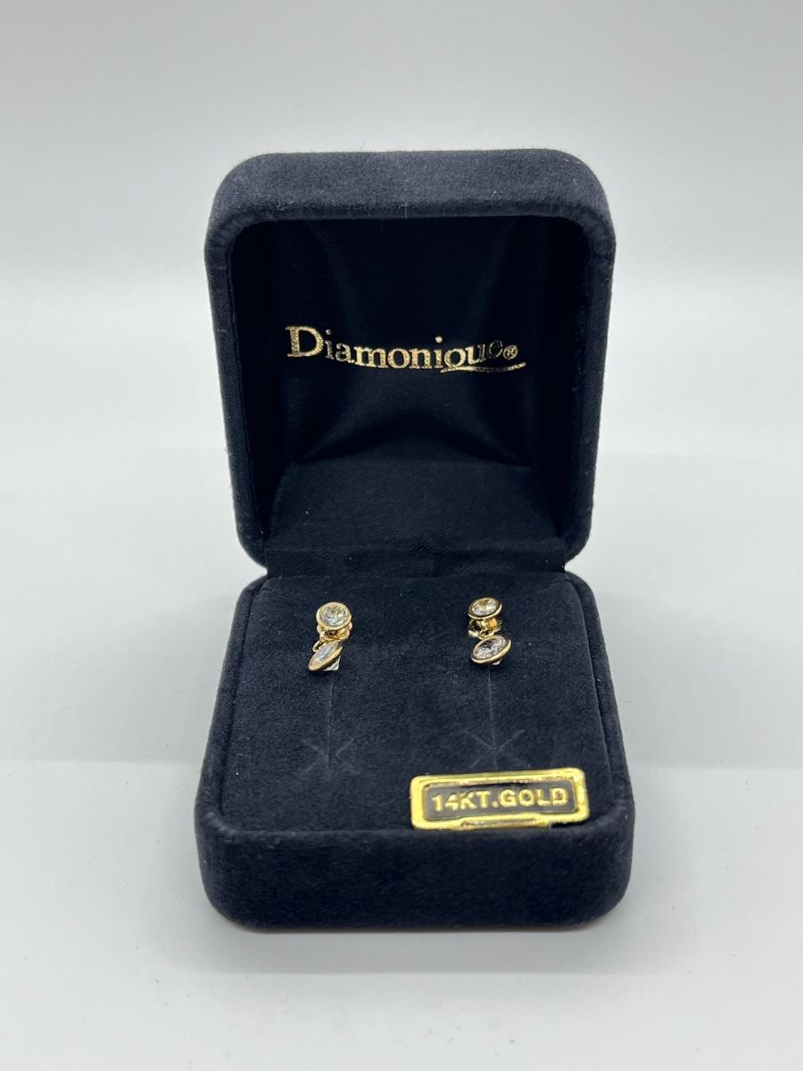 LOT 113J: QVC Diamonique 1.50 ct. tw. Round Bezel Dangle Pierced Earrings, 14K