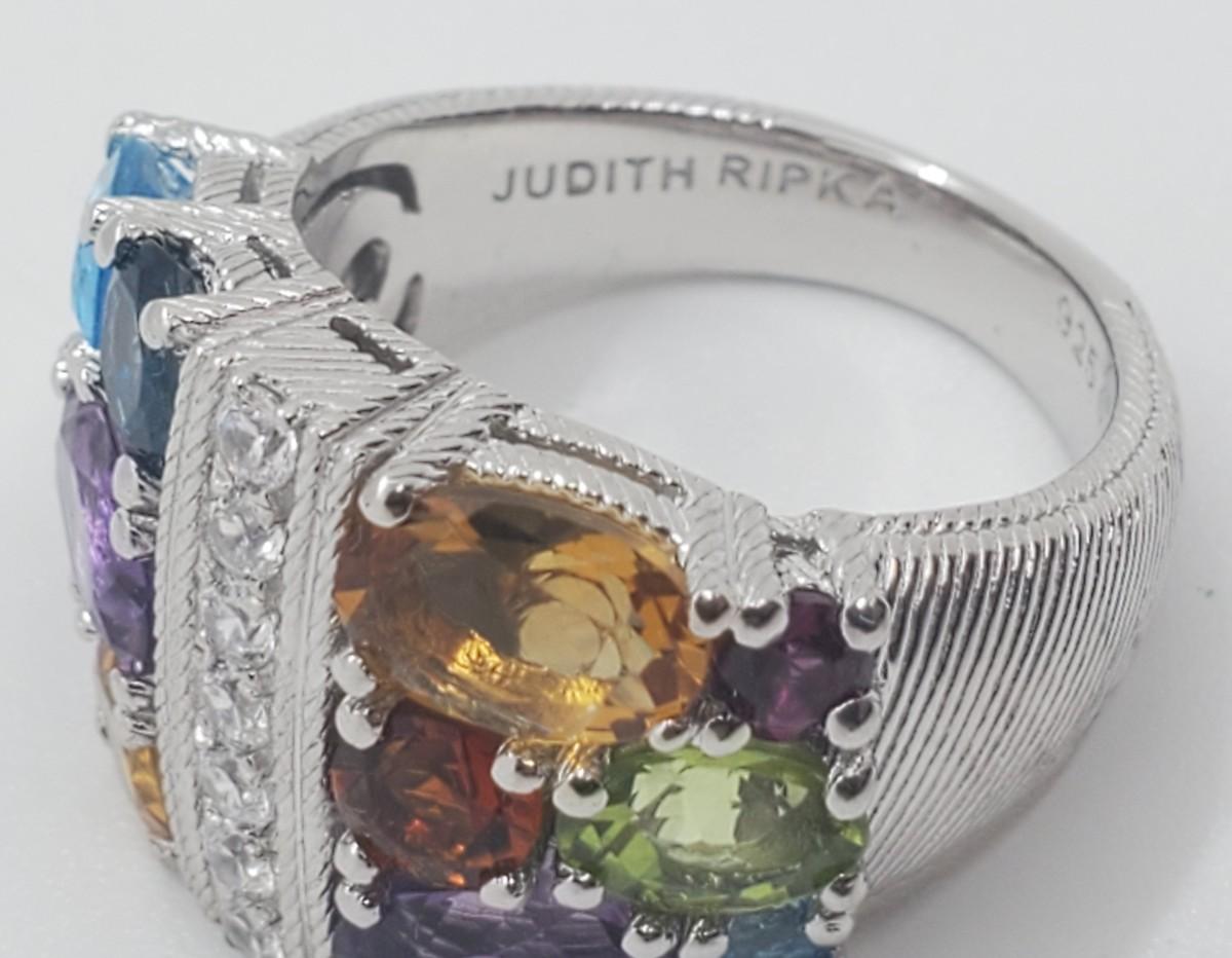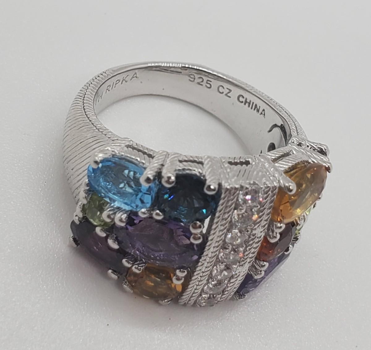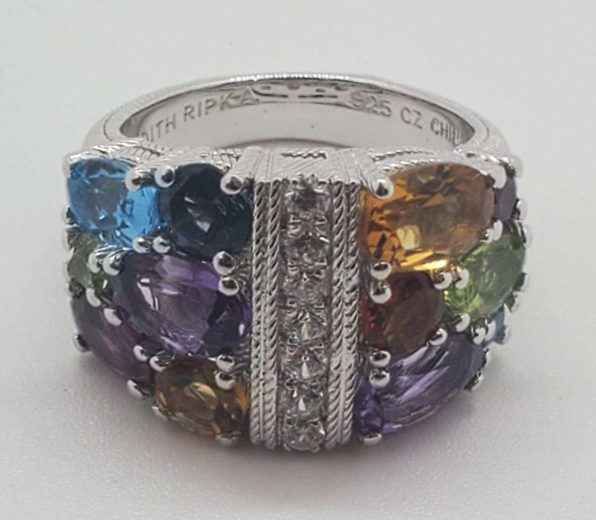 LOT 125G: QVC Judith Ripka Sterling Silver Multi-Gemstone Diamonique Ring, Sz6