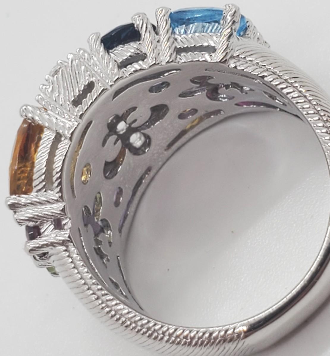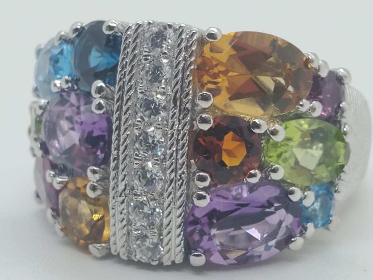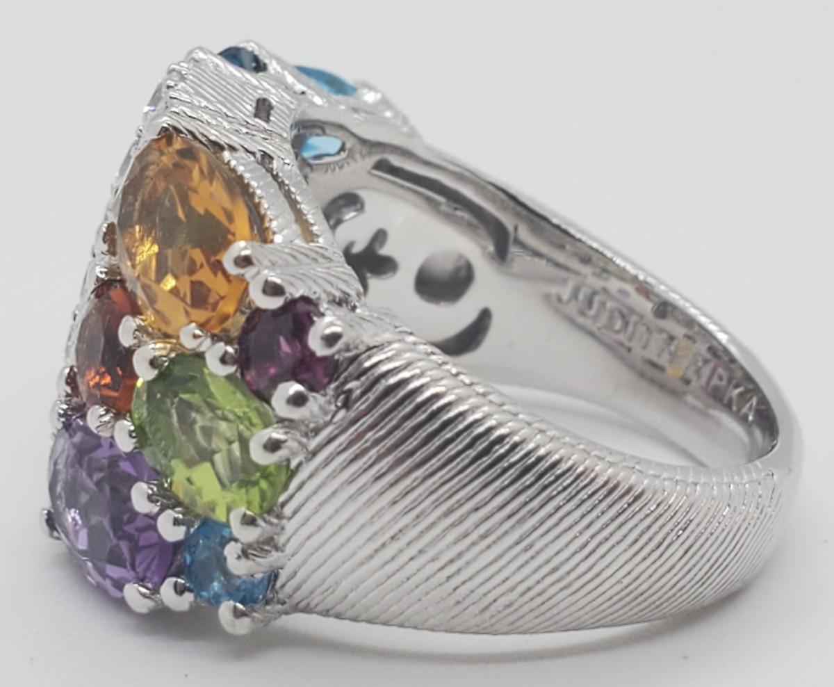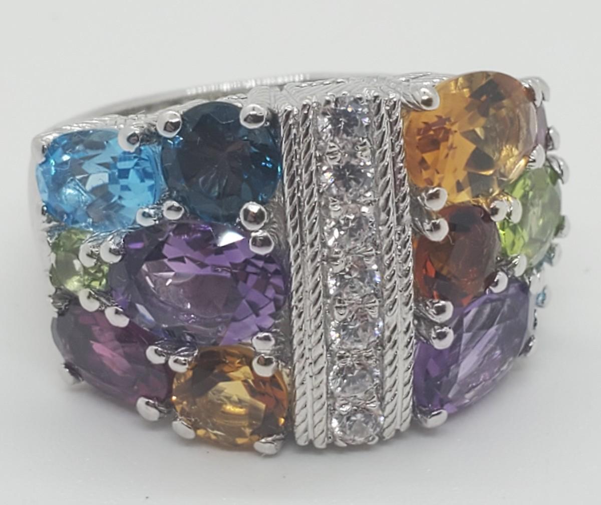 LOT 125G: QVC Judith Ripka Sterling Silver Multi-Gemstone Diamonique Ring, Sz6