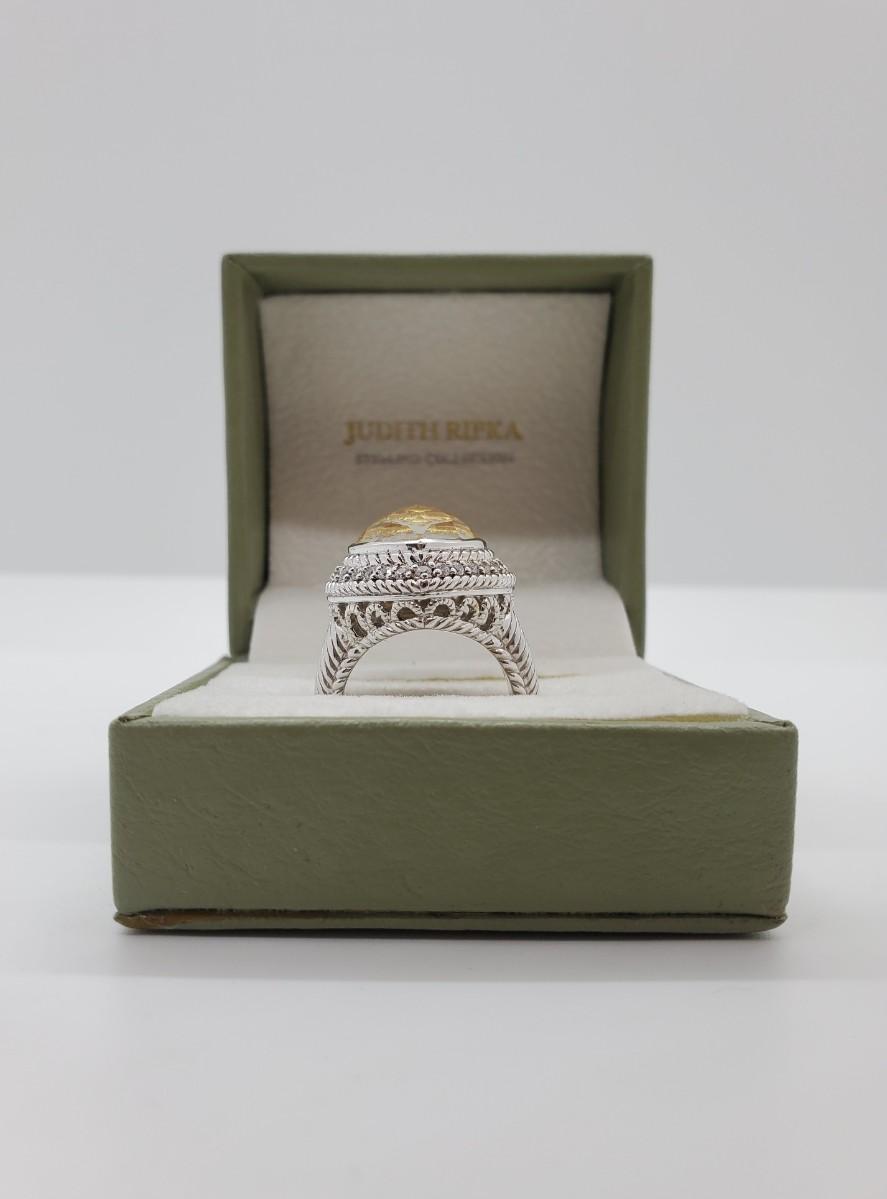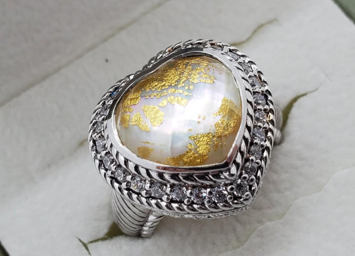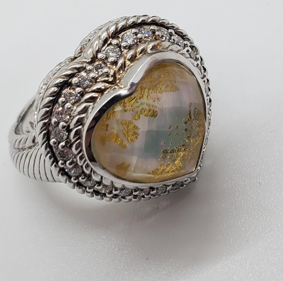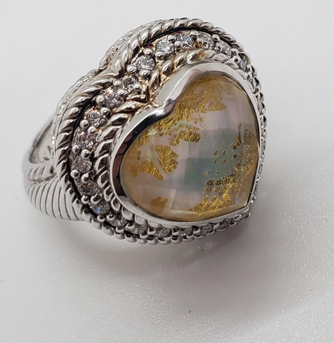 LOT 126G: QVC Judith Ripka Sterling Gemstone Heart Ring Mother-of-Pearl  Sz6