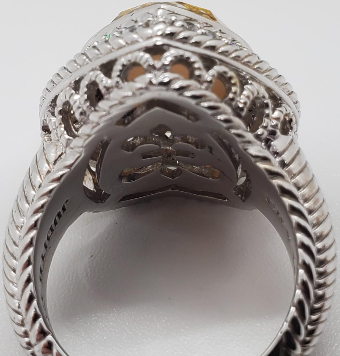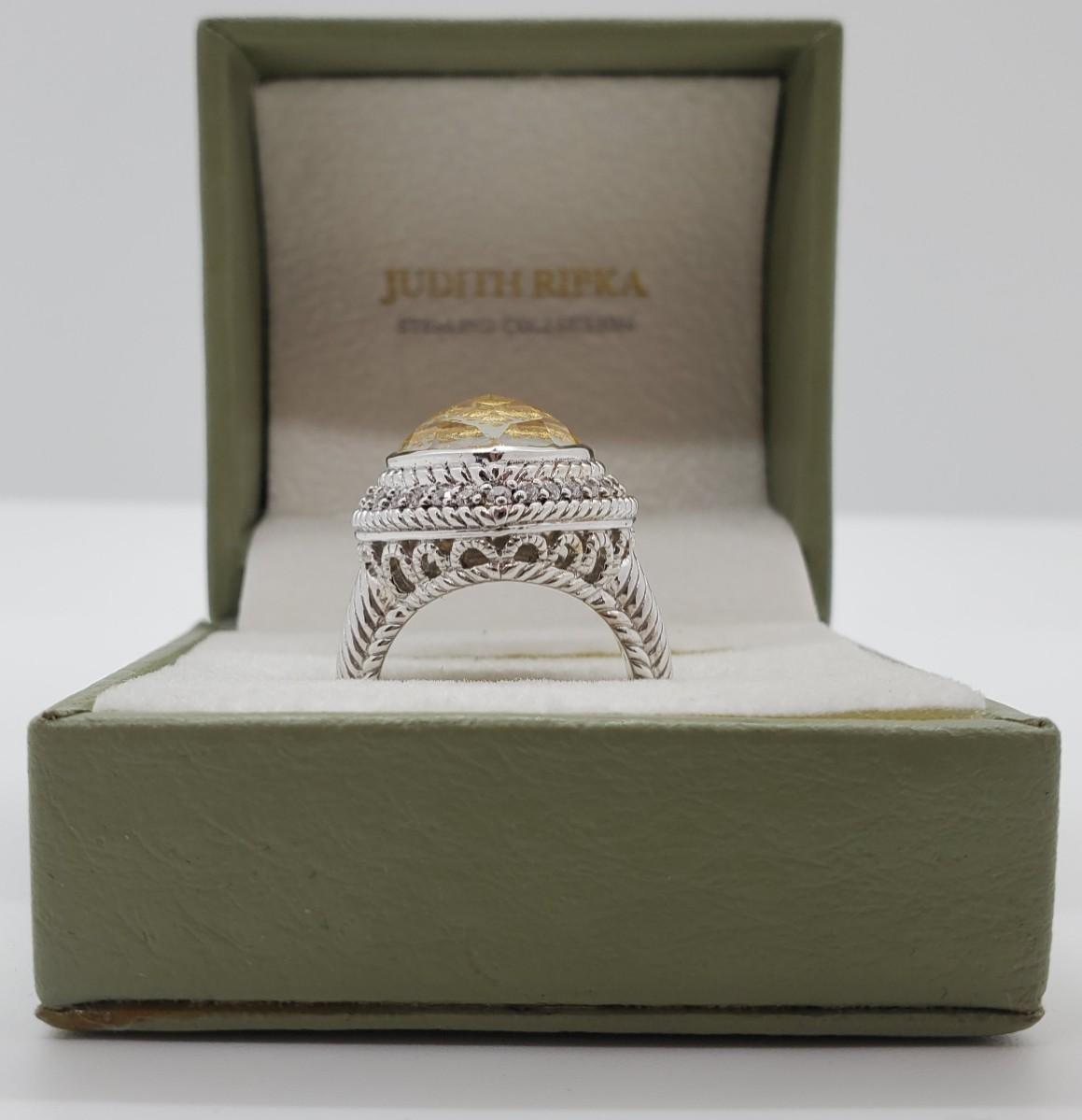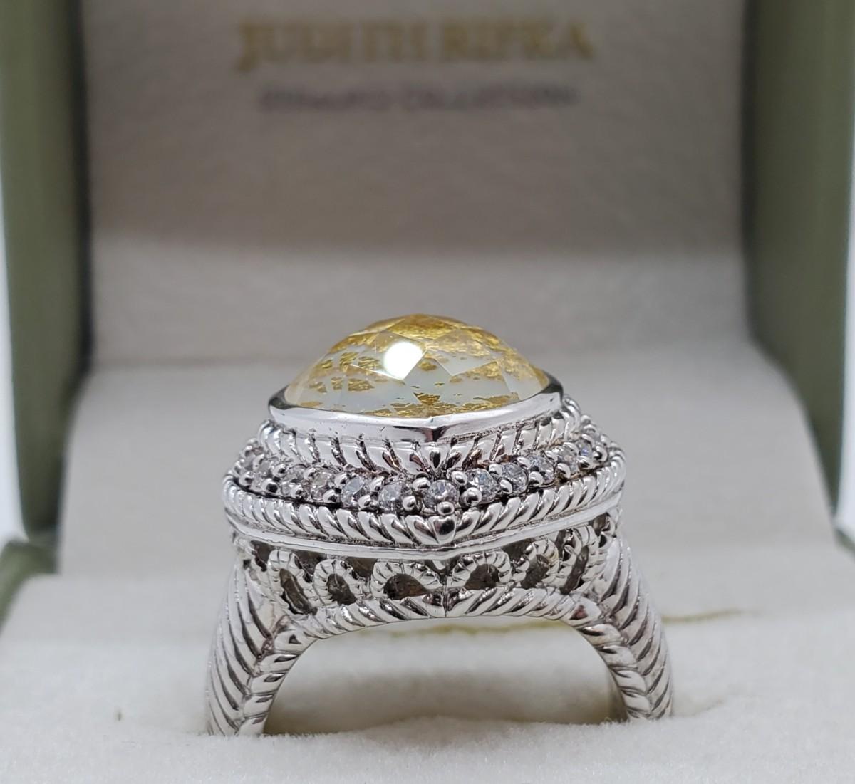 LOT 126G: QVC Judith Ripka Sterling Gemstone Heart Ring Mother-of-Pearl  Sz6