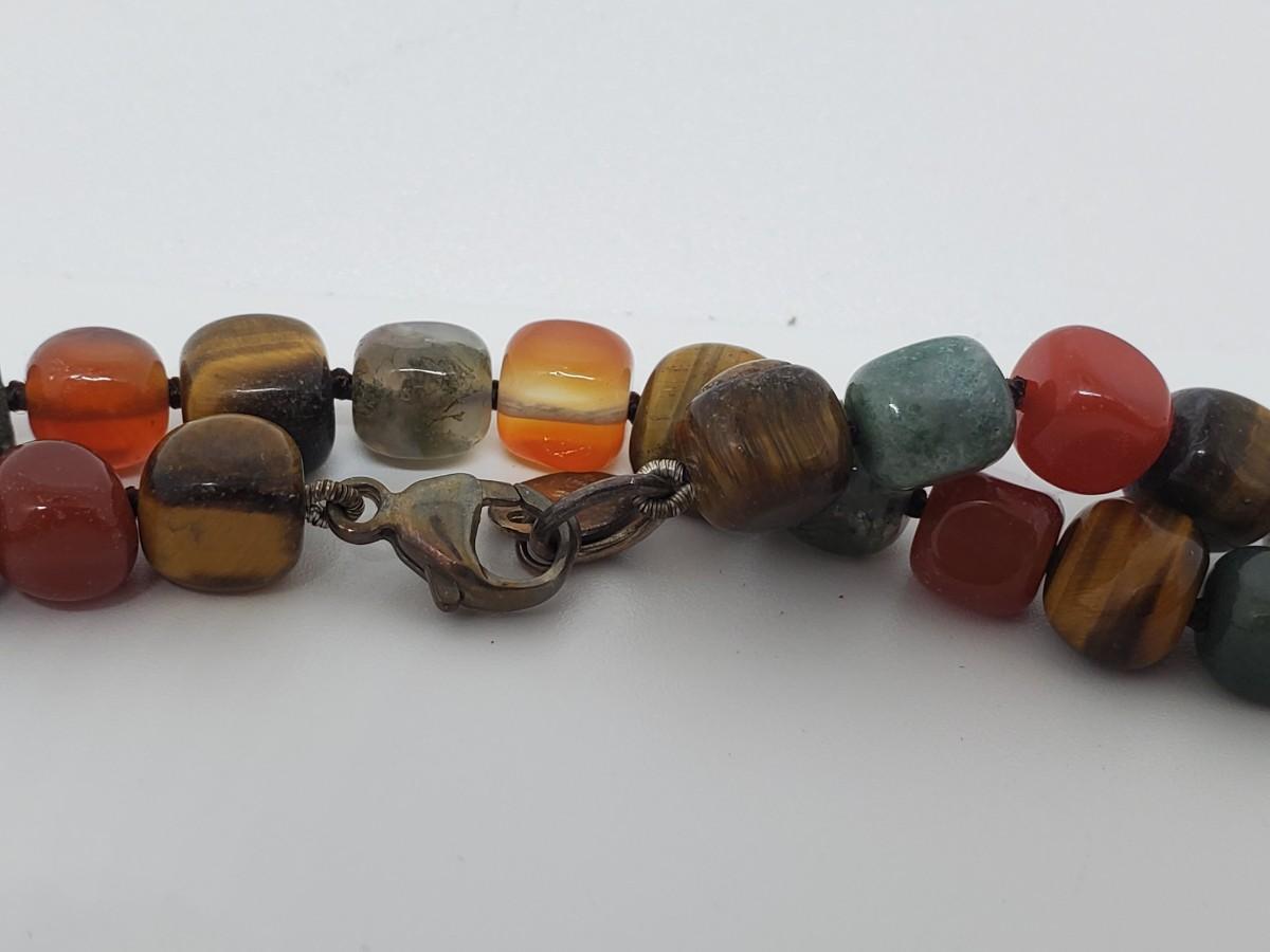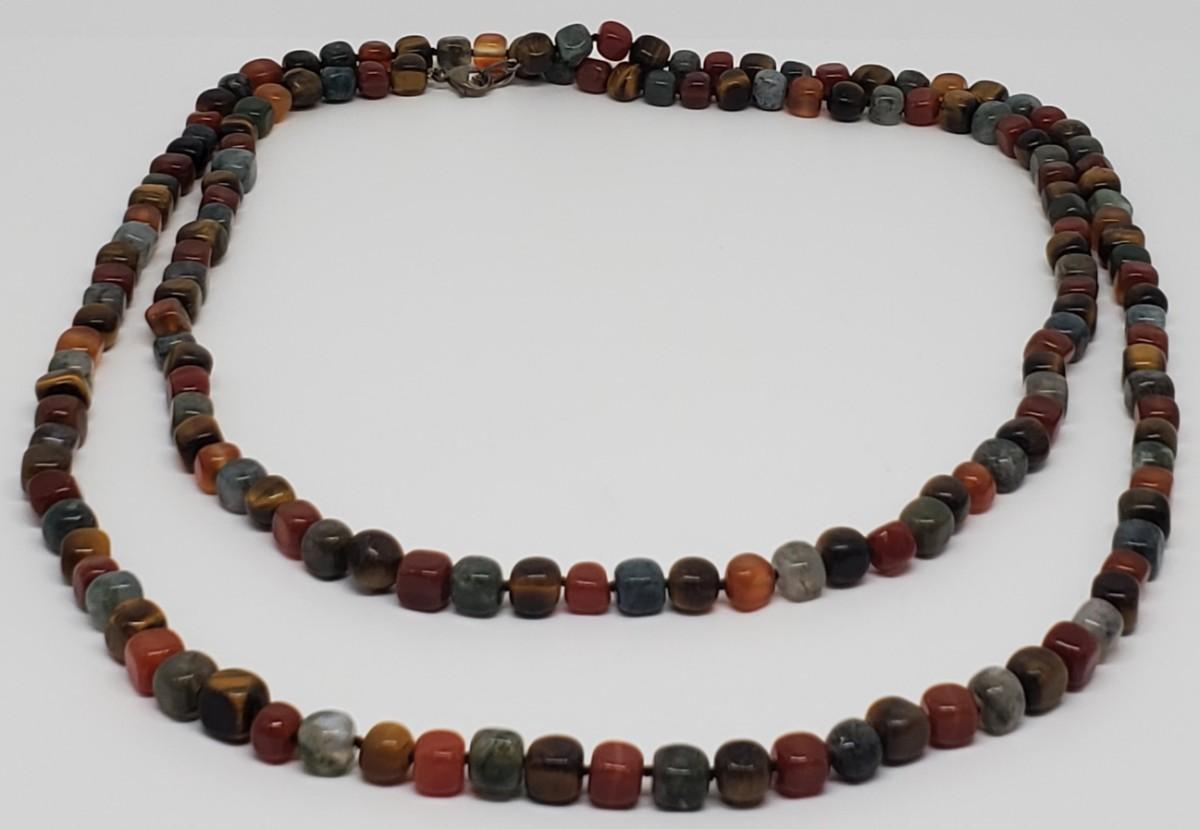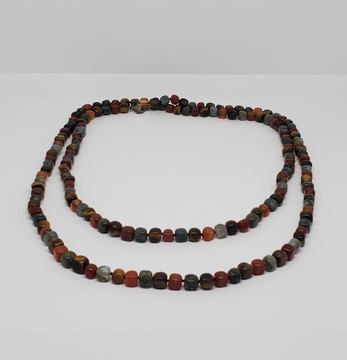 LOT 128G: QVC Sterling Earth Tones Multi-Gemstones 54" Freeform Bead Necklace