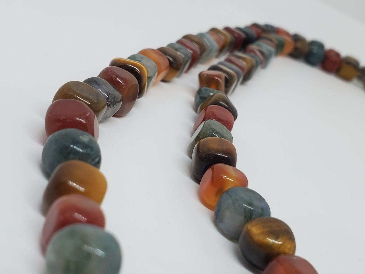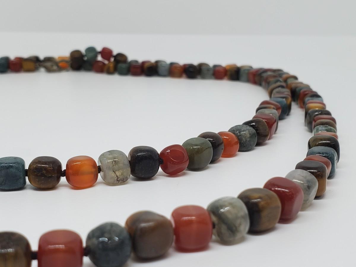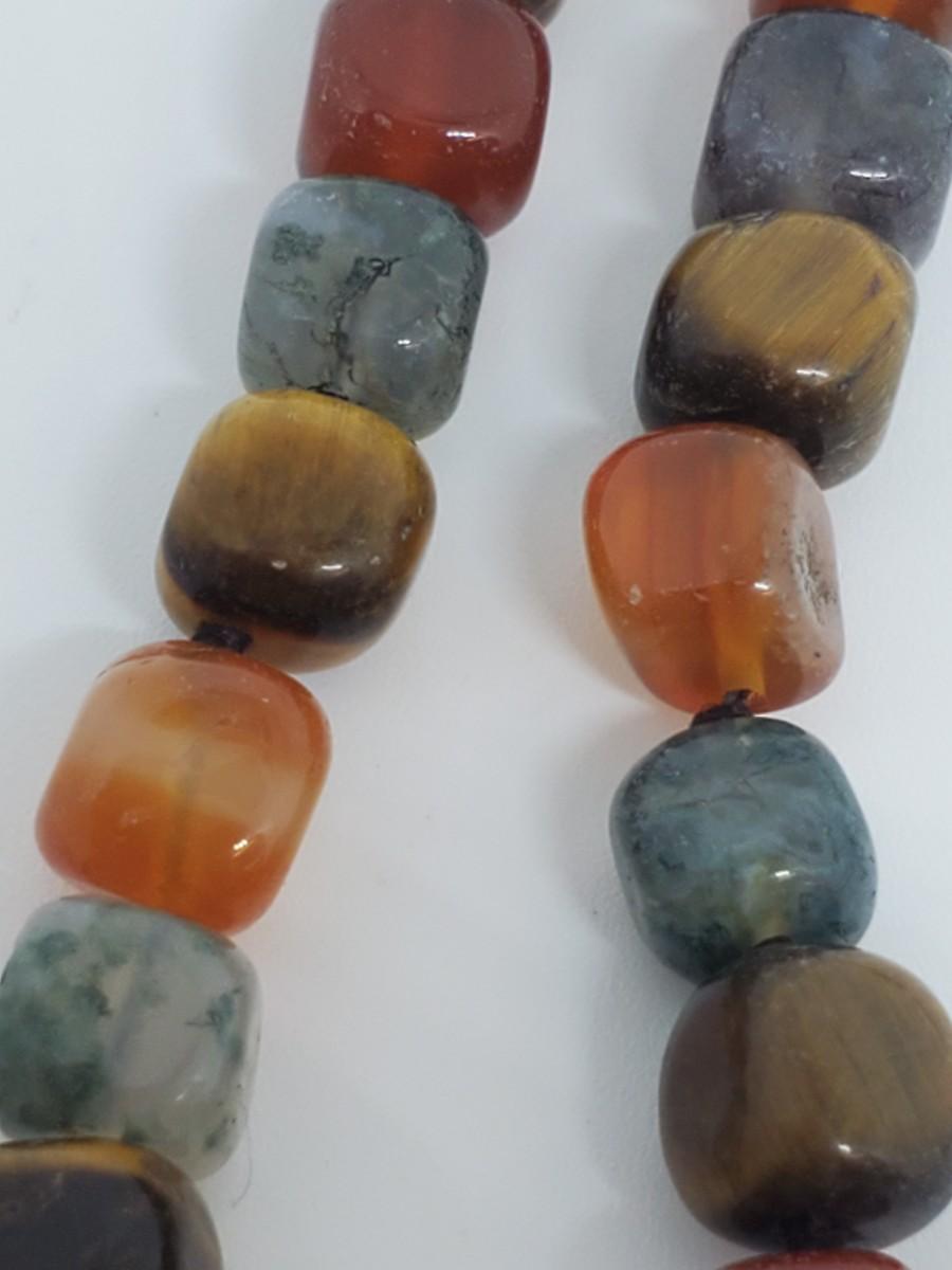 LOT 128G: QVC Sterling Earth Tones Multi-Gemstones 54" Freeform Bead Necklace